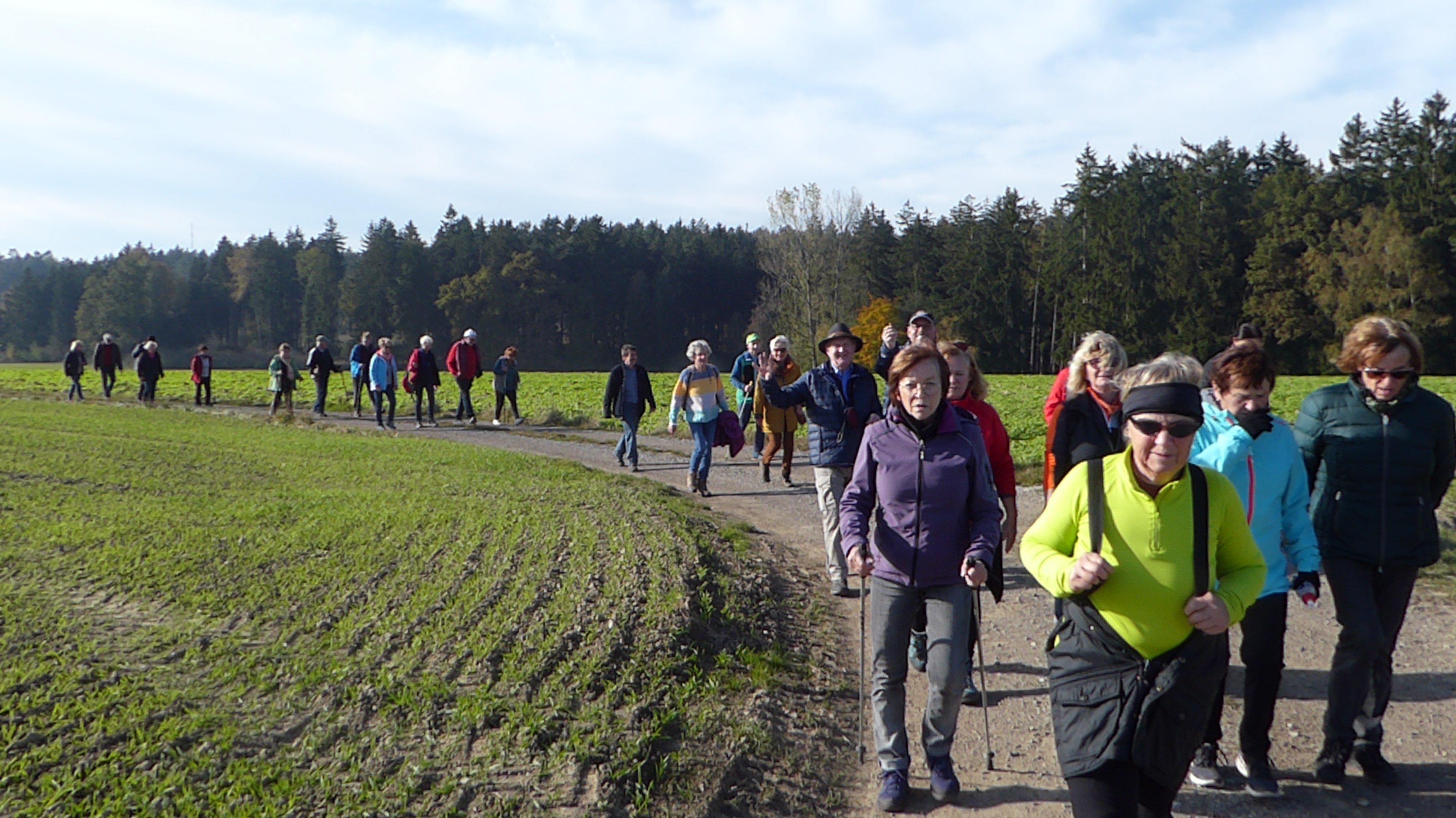 Zur traditionellen Herbstwanderung konnte Elfriede Niedermeier, bei sonnigem Wetter, 30 Teilnehmer begrüßen. Start der Wanderung war an der Rott und führte auf die Rottaler Höhen. An der Rott entlang führte die Strecke zur Böhmerwaldsiedlung und dem westlichen Gewerbegebiet. Ein steilerer Anstieg führte auf die Höhe und die Teilnehmer konnten die schöne Aussicht auf die Stadt genießen. Über Wald- und Feldwege erreichte man Wald (bei Postmünster) und Schnedenberg. Auf der Aufstiegsroute ging es über das Schwimmbad und Theatron zurück an die Rott und zum Ausgangspunkt. Eine gemütliche Einkehr im Cafe-Bistro Meri rundete den sonnigen Herbsttag ab.