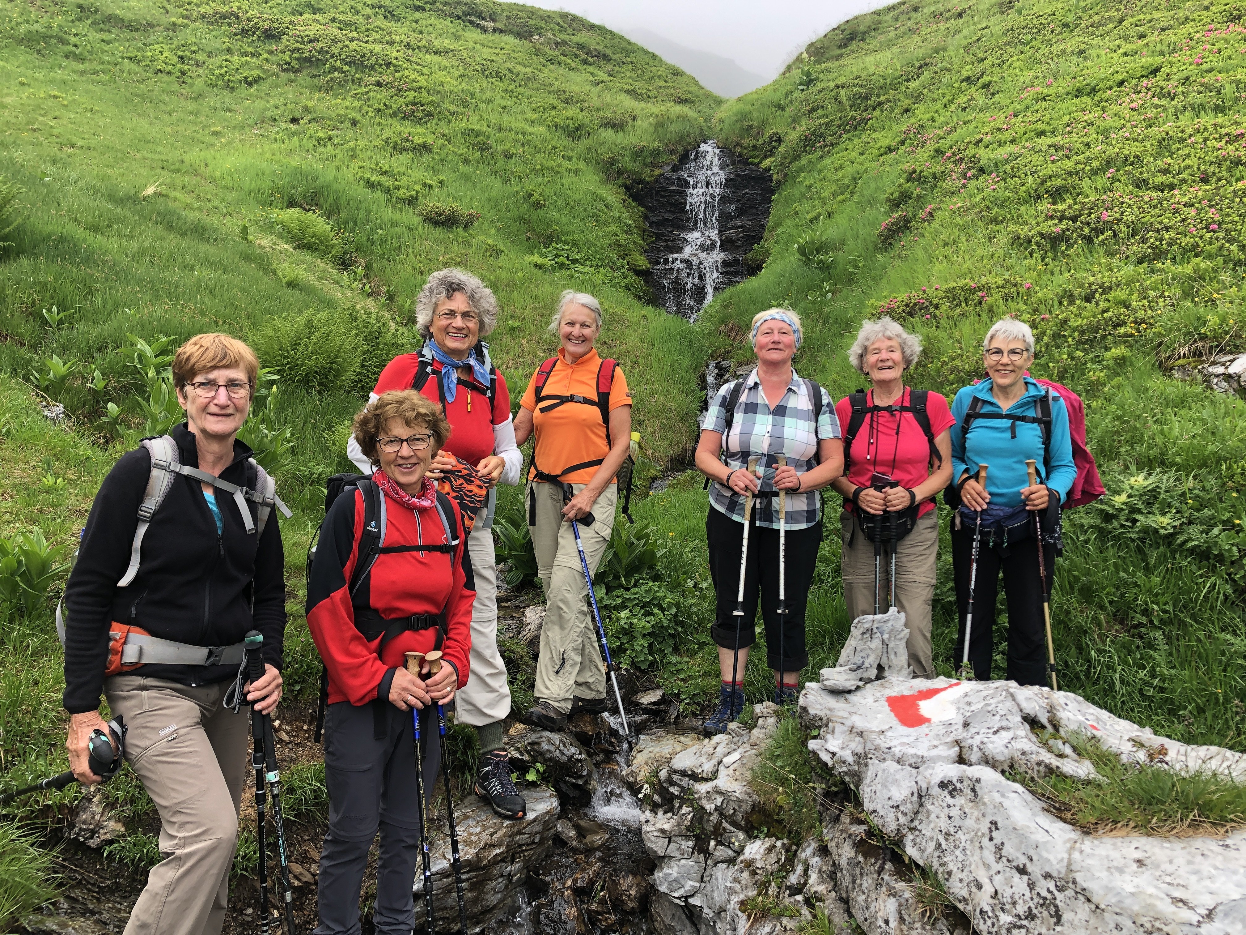 Der letzte Tag hätte laut Wetterprognosen sehr sonnig werden sollen, doch schon in der Nacht war ein heftiges Gewitter niedergegangen und den ganzen Vormittag zogen Regenschauer über die Berge. Also wieder Regenkleidung für den Weg über die Esserseen zur Jakoberalm. Wegen der Nässe musste man hier besonders sorgfältig seine Tritte setzen und so legte die Gruppe immer wieder kleine Pausen ein, um die Landschaft und die Blumen zu genießen. Zum Abschluss der Tour kehrte die Gruppe auf der idyllisch gelegenen Jakoberalm ein, bevor der Heimweg über die Tauernautobahn angetreten wurde.