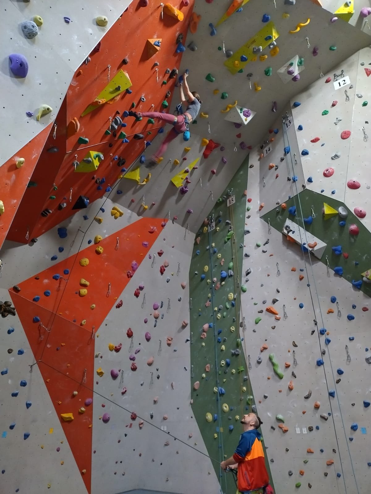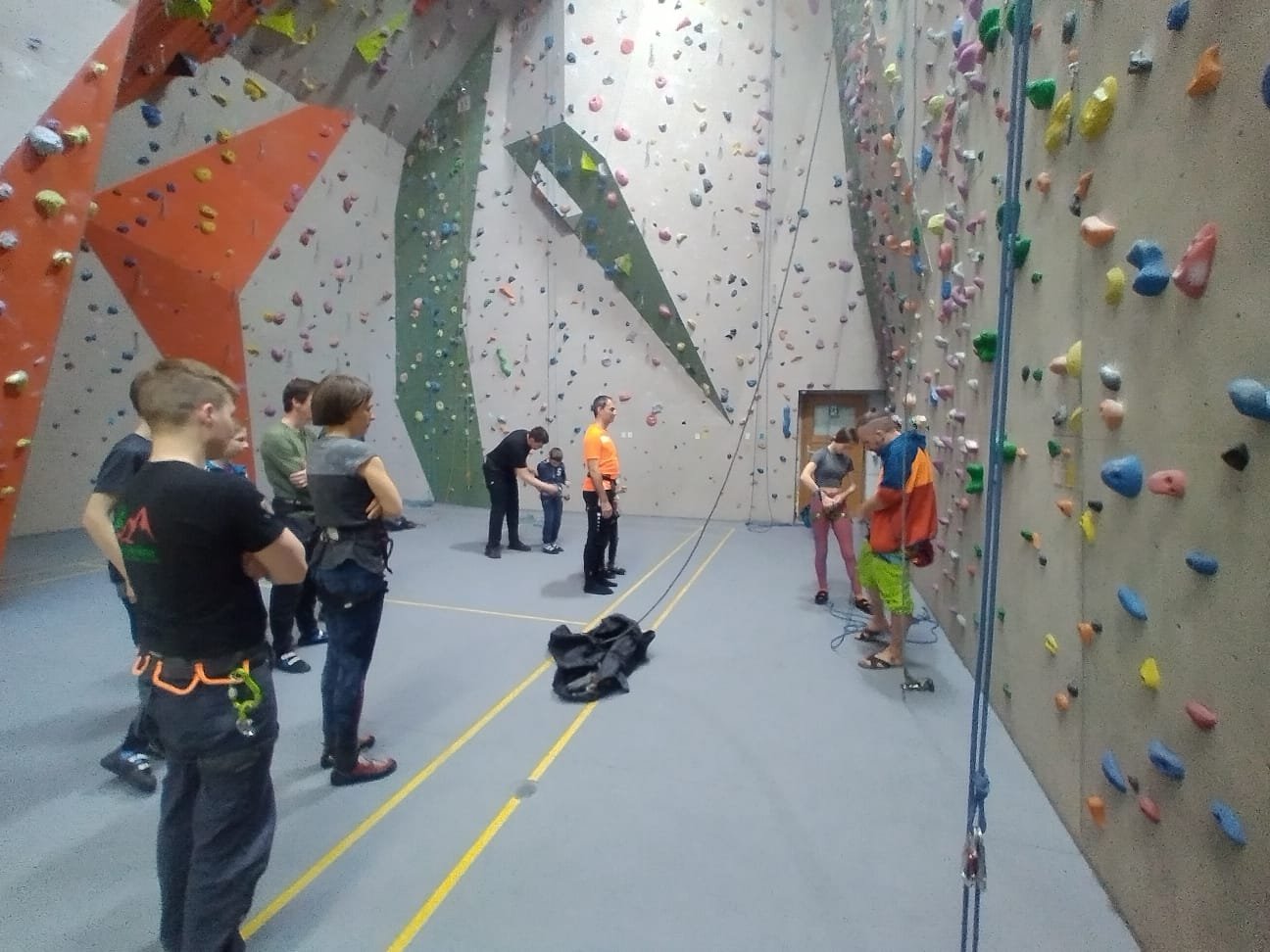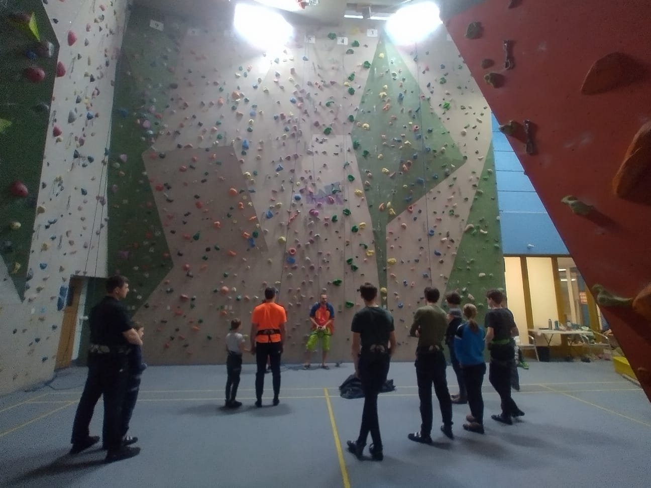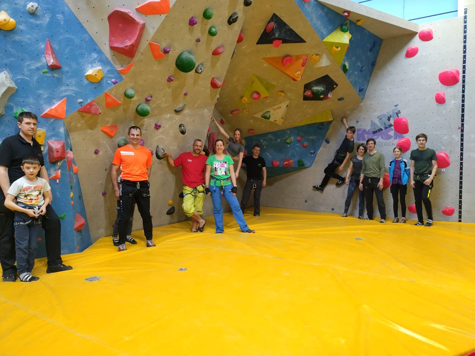 Neun Neugierige versuchten sich unter fachkundiger Leitung der Tourenleiter Marion und Marcus Urban, unterstützt durch die Sicherer Serafina und "Magge" (Markus) aus der Jugendgruppe des Vereins, bei ersten Kletterversuchen in der La-Vita-Kletterhalle.