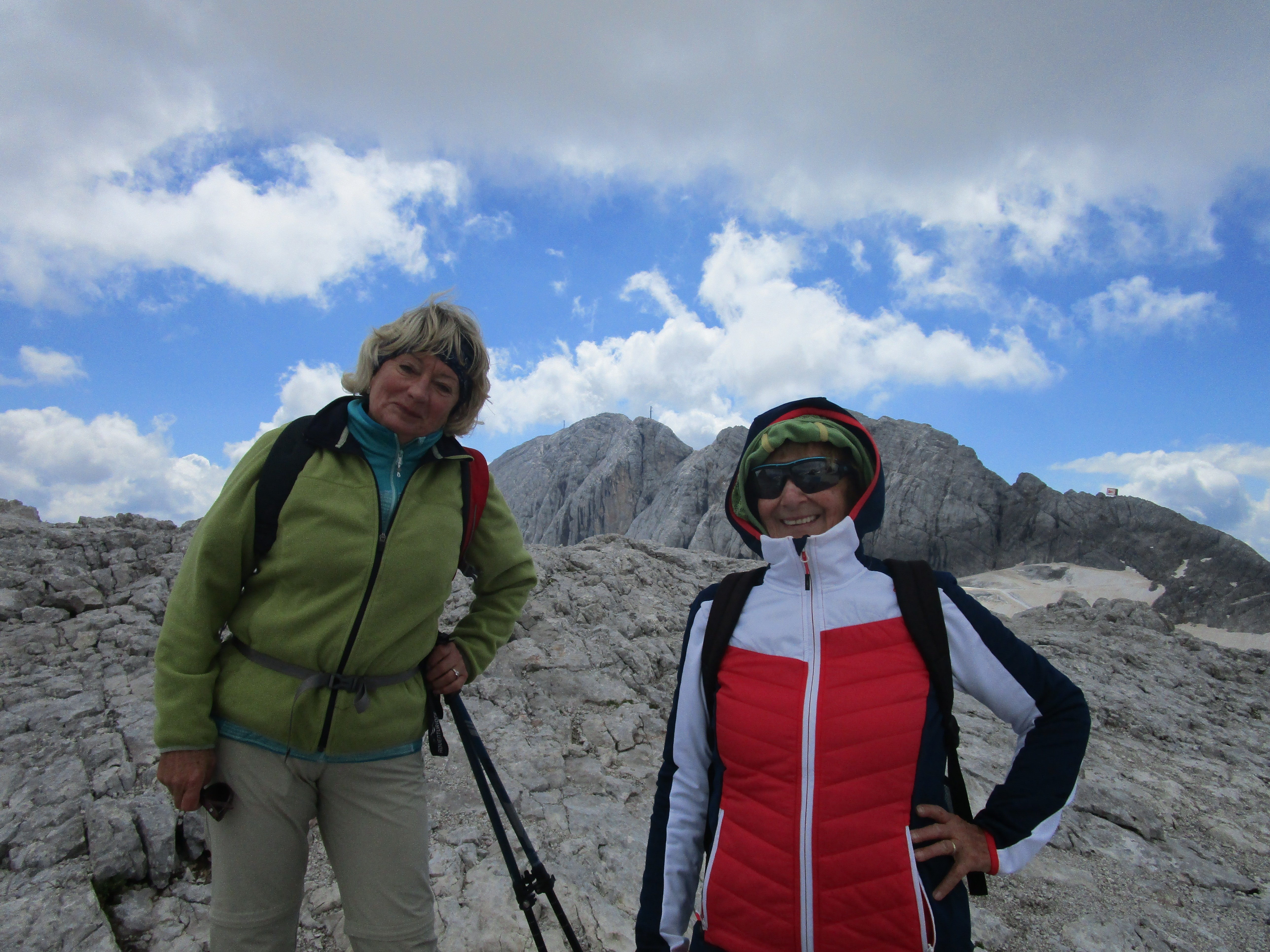 Nach Abfahrt mit der Dachsteinseilbahn fuhr die Hälfte der Teilnehmer mit dem Bus zurück zum Hotel, die andere Hälfte entschied wegen des freundlicher gewordenen Wetters zu Fuß über die Austria-Hütte (20 Min. - 1638 m) und den Roseggersteig nach Edelbrunn (1330 m) abzusteigen. Dabei wurde noch ein Abstecher auf den Brandriedelgipfel (1725 m) unternommen. Höhenunterschied: Aufwärts 125 Hm, abwärts insgesamt 525 Hm (Vom Sattel über Roseggersteig 55 Min.).