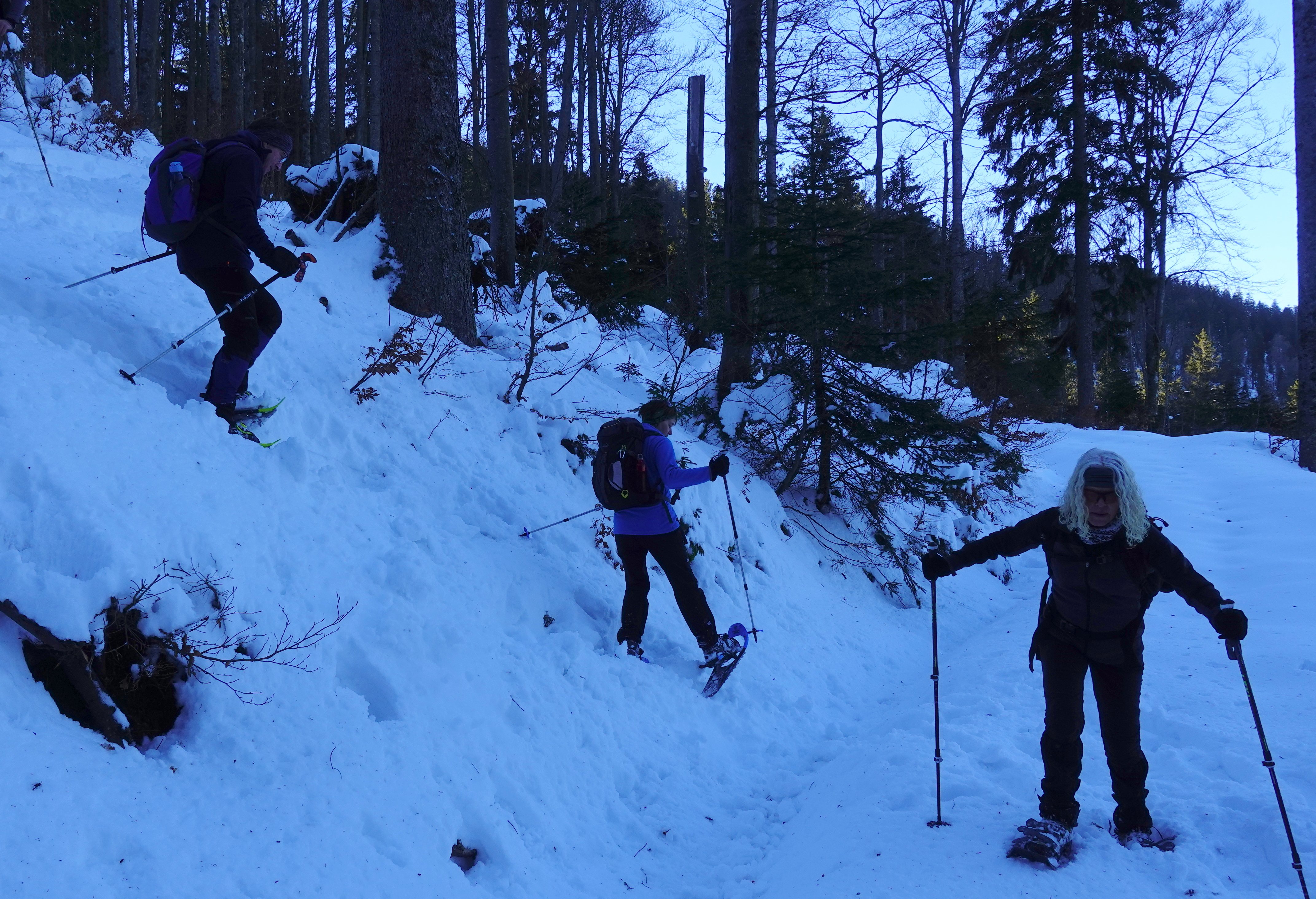 9 Schneeschuhwanderer des Pfarrkirchner Allpenvereins stiegen unter der Leitung von Karl-Heinz Hager auf den Großen Arber (1456m). Vom Parkplatz Arbersee stieg die Gruppe zunächst am Sommerweg entlang, dann in westlicher Richtung vorbei am Stallriegel weiter Hinauf zur Zwieseler Hütte. Hier wurde bei sonnigem Wetter die grandiose Aussicht bis zu den Alpen genossen, bevor die Gruppe weiter hinauf zum Gipfel stieg. Nach einem Gipfelrundgang stiegen die Schneeschuhwanderer auf gespurten Weg hinunter zum Mittagsplatzl (1340m). Hier genossen die Schneeschuhwanderer die Brotzeit bei Sonne und Aussicht auf die Berge, die durch die tieferliegende Nebelschicht ragten. Nach einer ausgiebigen Pause stieg die Gruppe vorbei am Auerhahnschutzgebiet hinunter zum Ausgangspunkt dieser Tour. Nach knapp 12 km Streckenlänge, 650 Höhenmeter Auf- und Abstieg und einer Gehzeit von 3 3/4 Std. wurde der Parkplatz Arbersee wieder erreicht.