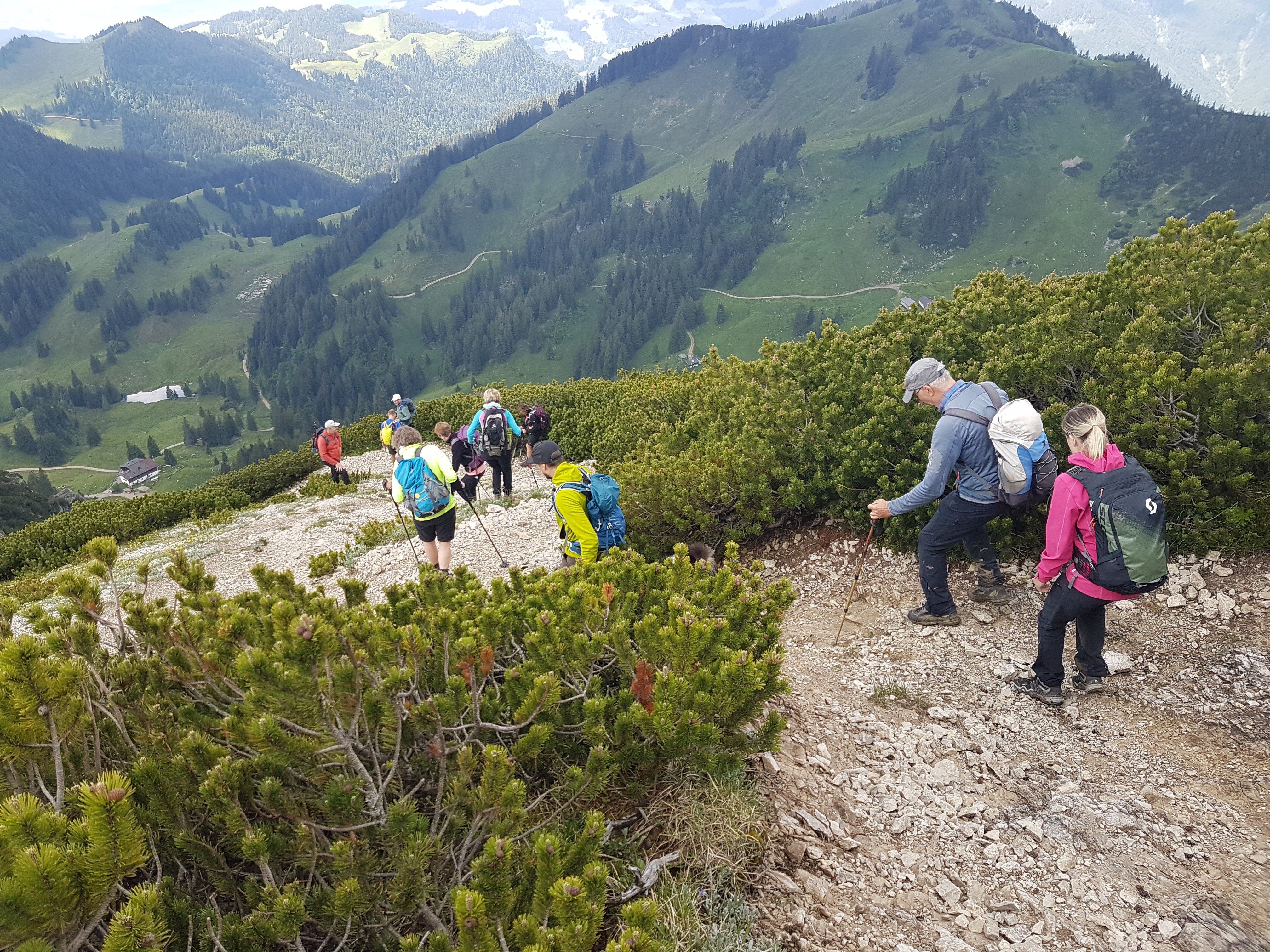 10 Mitglieder der DAV Sektion Pfarrkirchen haben unter Leitung von Jenny und Martin Huber die Überschreitung des Geigelsteinmassives unternommen. Vom Parkplatz Grattenbach stieg die Gruppe am Tauron vorbei zum Geigelstein (1808 m) auf. Am Gipfel bot sich den Teilnehmern ein herrliches Panorama. Nach einer längeren Gipfelrast bei angenehmen Temperaturen, folgte die Überschreitung zum südlich gelegenen Breitenstein (1661 m) und weiter bis zum Karkopf (1510 m). Danach ging es im Abstieg zur Priener Hütte. Hier kehrte die Gruppe ein und hatte einen wunderbaren Blick auf den Wilden Kaiser. Über die Schreckalm, mit einem kleinen Gipfelabstecher zum Schachenberg (1076 m) ging es dann zurück zum Parkplatz Grattenbach. Insgesamt legte die Gruppe 1.650 Höhemeter und 21 Kilometer zurück. Eine echte Leistung!