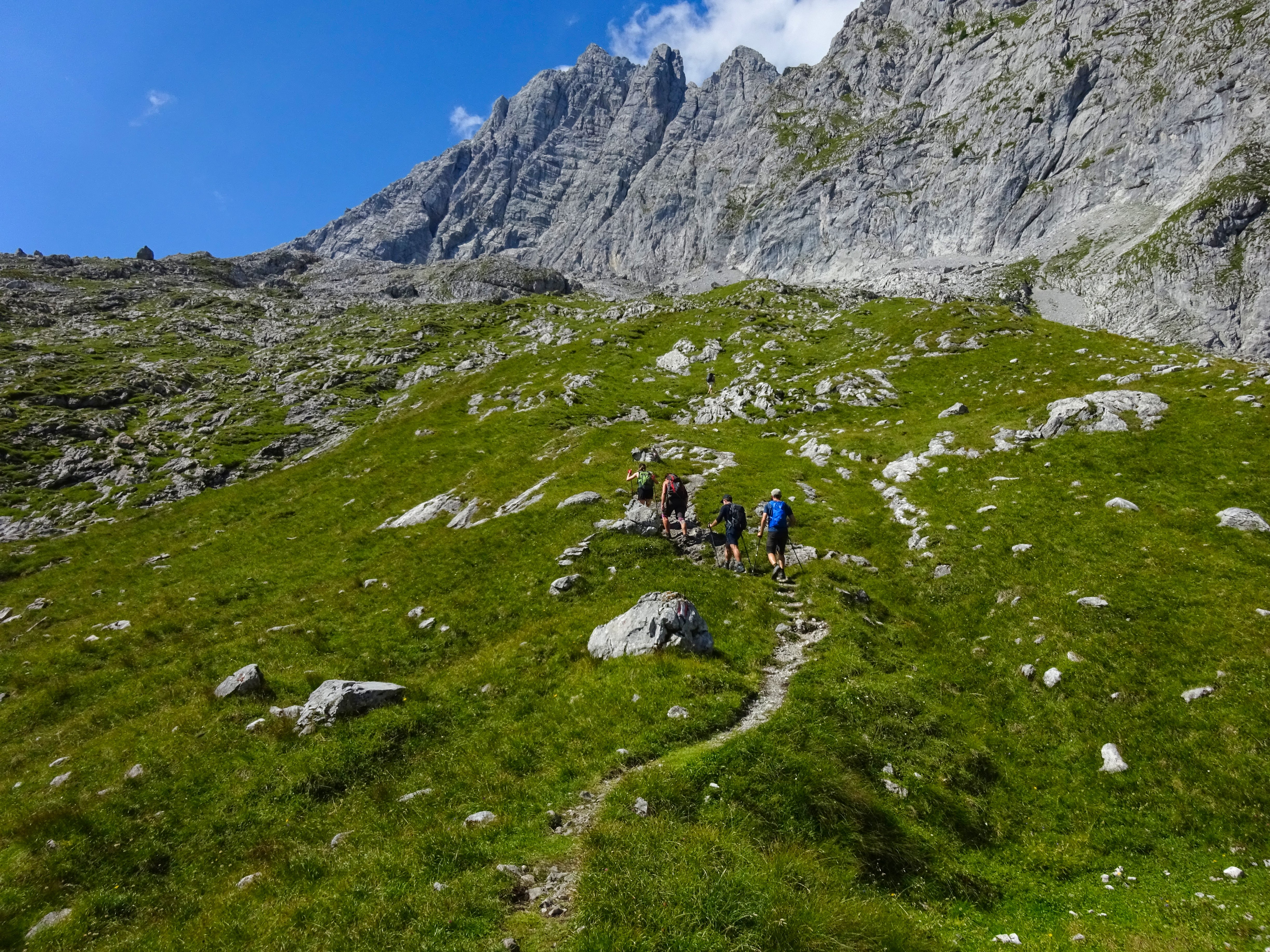 Am Samstag machte sich die Jungmannschaft des DAV Pfarrkirchen auf den Weg auf die Schärtenspitze. Die sechsköpfige Gruppe startete am Hintersee und erreichte zunächst die Hochalm, wo man gleich eine kleine Pause einlegte. Weiter ging es anschließend über teils seilversicherte Passagen zur Eisbodenscharte, bevor man den Gipfel der Schärtenspitze erreichte und das schöne Wetter und die gute Aussicht genoss. Beim Abstieg entschied man sich, noch einen kurzen Abstecher auf den Steinberg einzulegen und so ging es noch einmal über einen kurzen, sehr schönen Steig hinauf. Beim Abstieg belohnte man sich noch mit einer kleinen Einkehr in der Blaueishütte, um daraufhin gesättigt zum Parkplatz abzusteigen. Von dort aus ging es nach einem kurzen Bad im Hintersee zurück nach Pfarrkirchen.