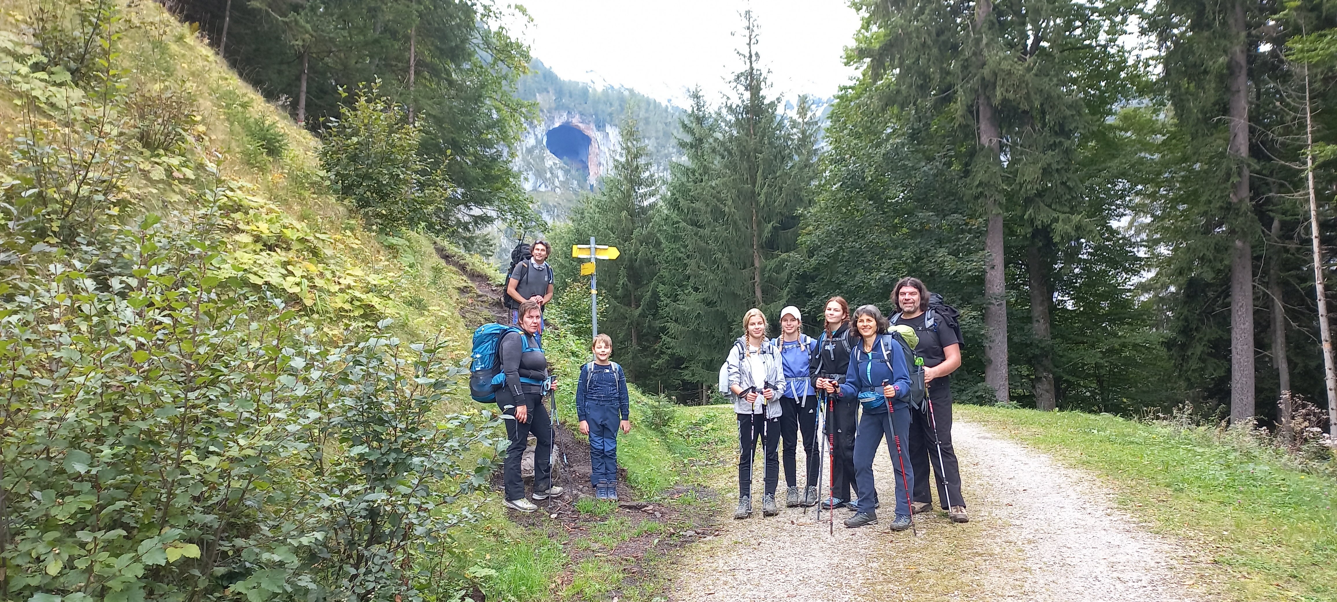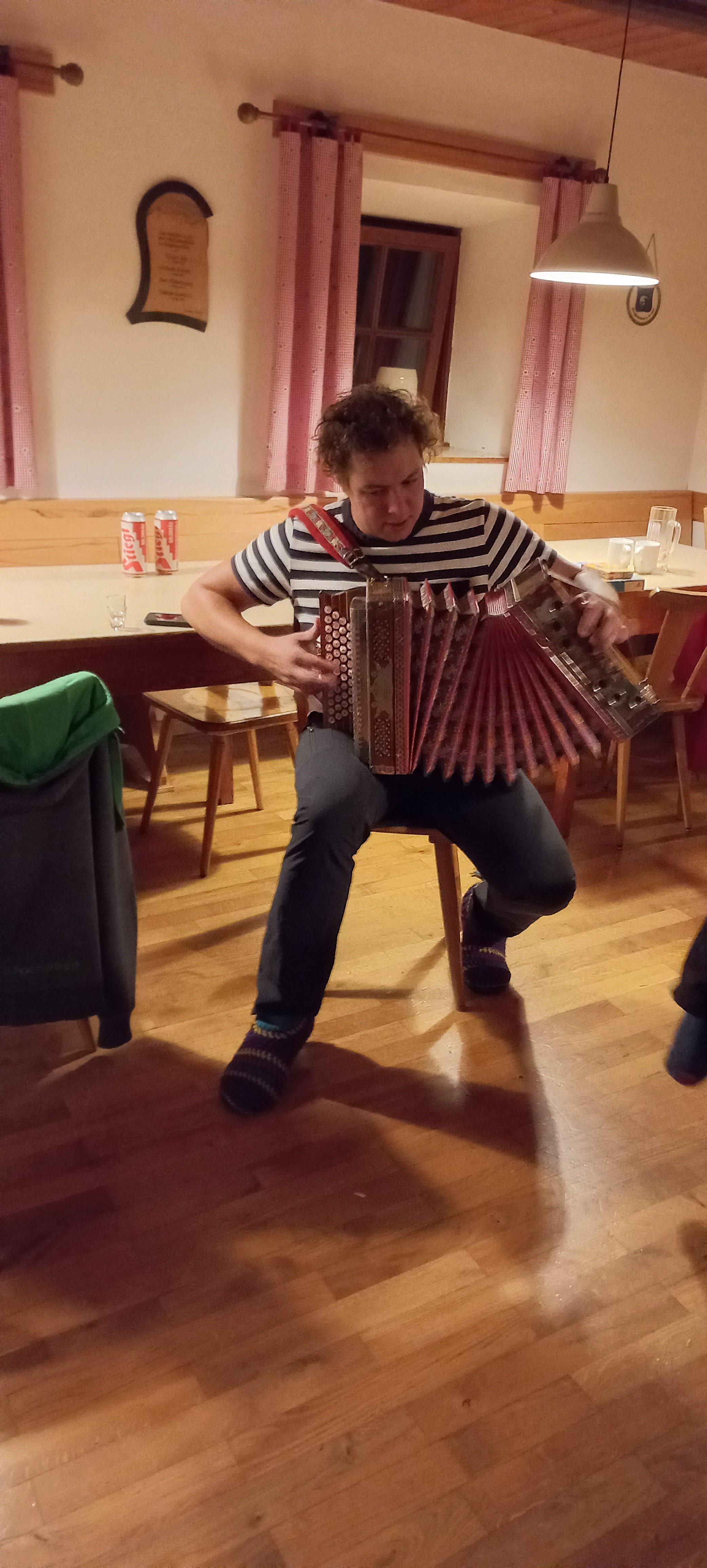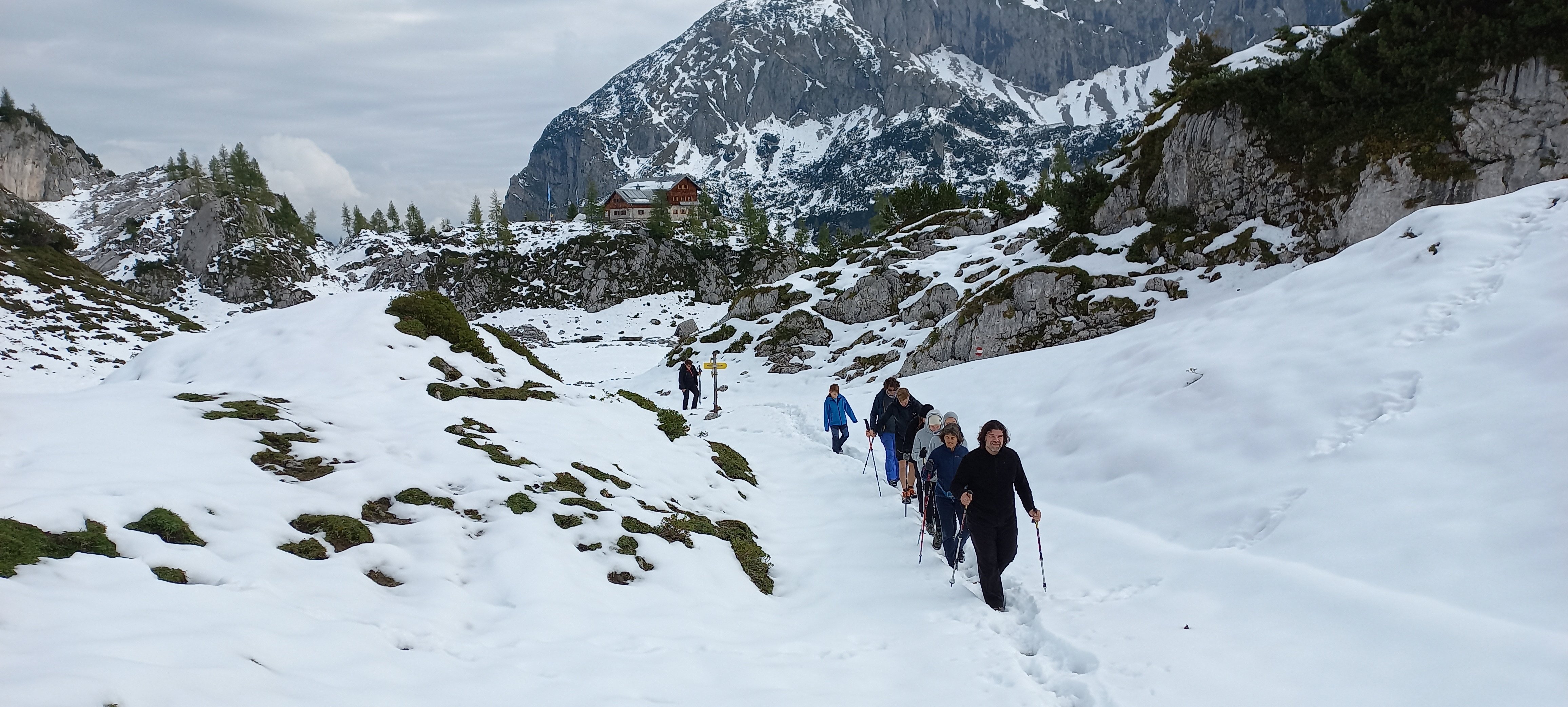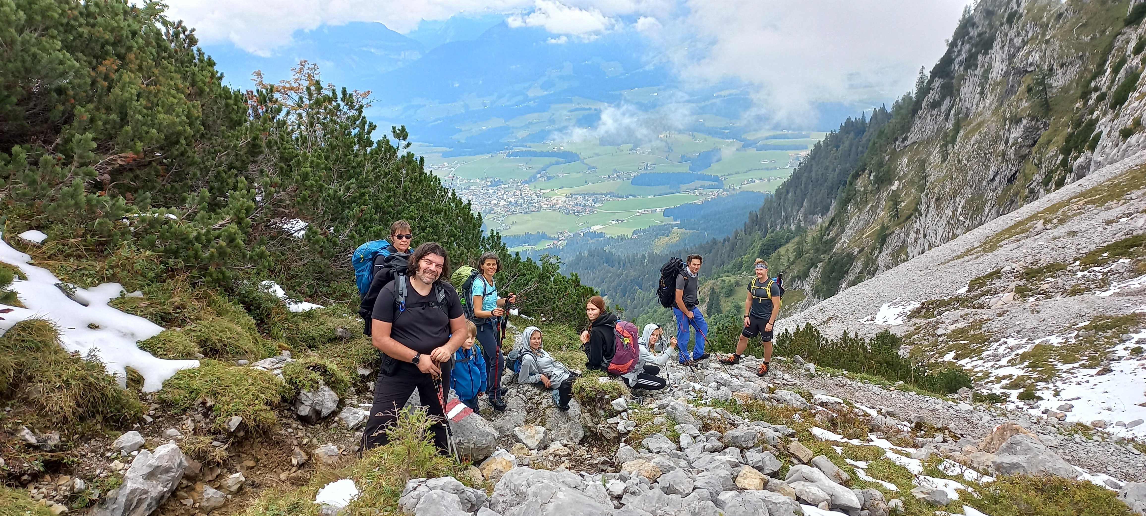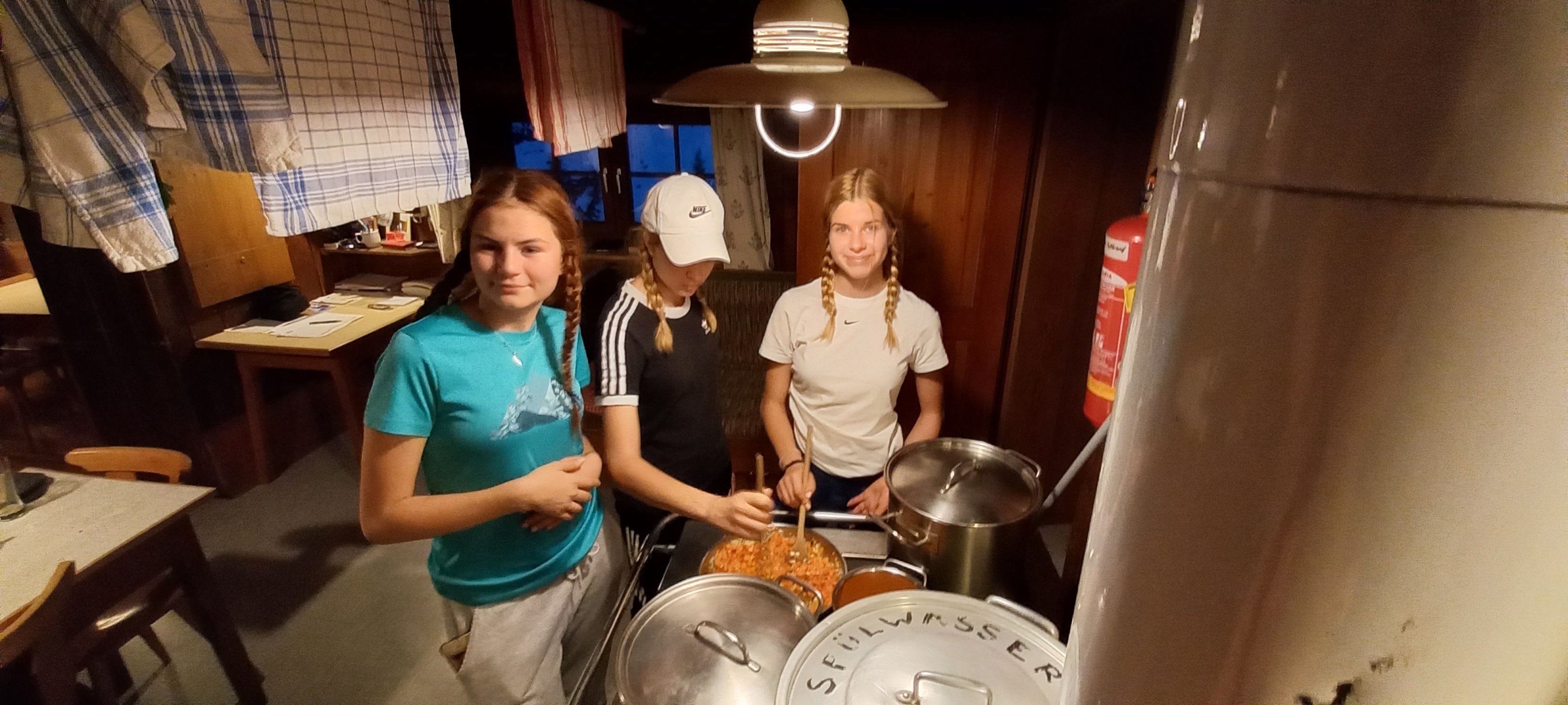 Fast hätte diese Tour wegen starkem Schneefall in der vorausgegangenen Woche abgesagt werden müssen, doch dank Tauwetter waren die Wege dann doch begehbar. Und so wanderten insgesamt 10 Teilnehmer der Familiengruppe unter Leitung von Karin und Axel Neuß von Abtenau aus am 24.09. zunächst noch durch den Herbstwald bergauf. Am Holzlager mitten im Wald wurde Brotzeit gemacht und der frei gewordene Platz in den Rucksäcken durch Holzscheite wieder aufgefüllt, die zum Heizen zur Laufener Hütte mitgenommen wurden. Auf 2/3 des Weges begannen dann die ersten Schneefelder, was die Kids natürlich gleich für die ersten Schneebälle der Saison nutzten. An der Hütte angekommen blieb noch Zeit zum Faulenzen und für gemeinsame Spiele, bevor dann abends Spaghetti und die gefundenen Pilze zu einem leckeren Abendessen zubereitet wurden. Nach dem Essen wurde wieder gespielt und der Hüttenwirt spielte auf der Quetsche. Es war ein sehr gemütlicher und lustiger Abend und es wurde viel gelacht.