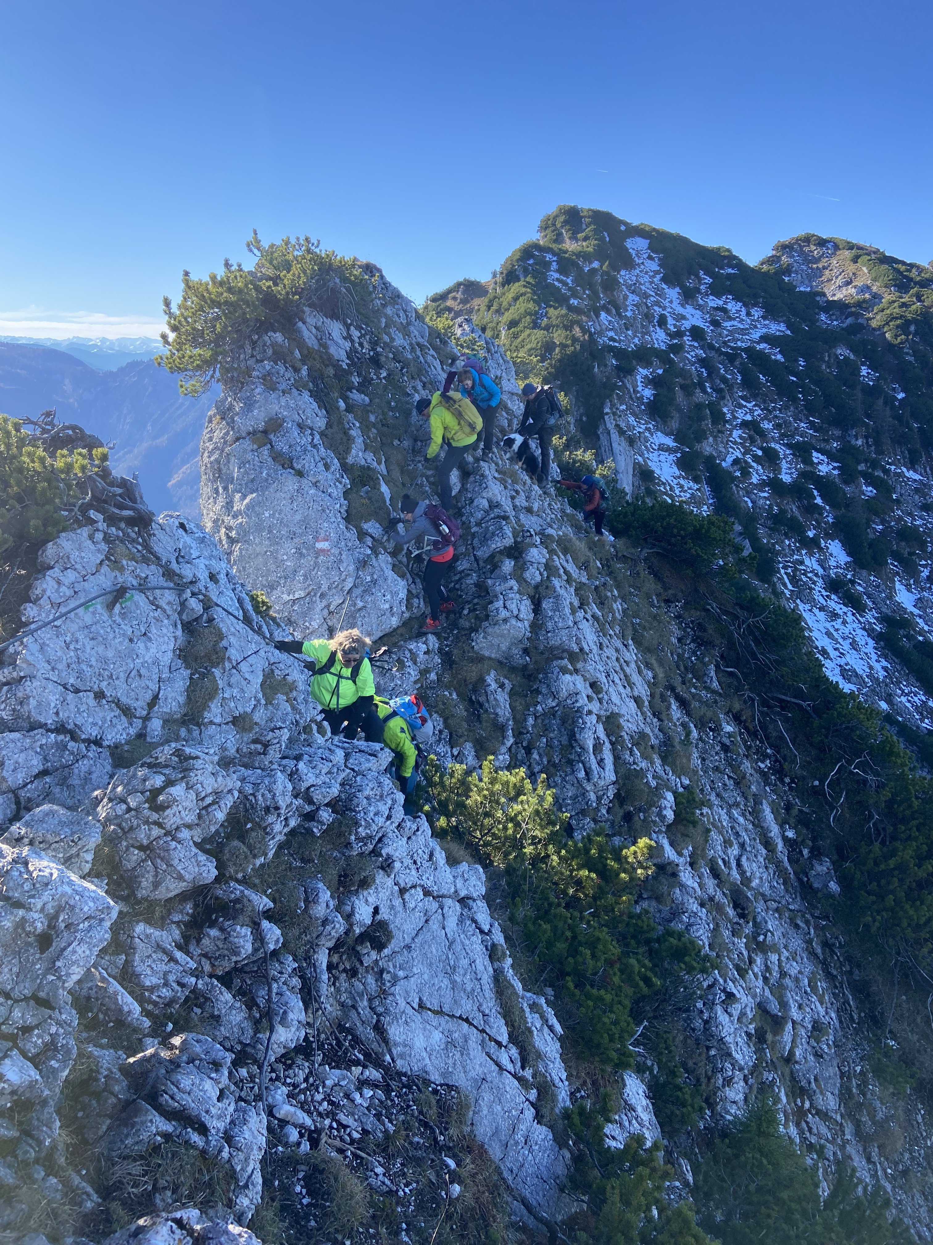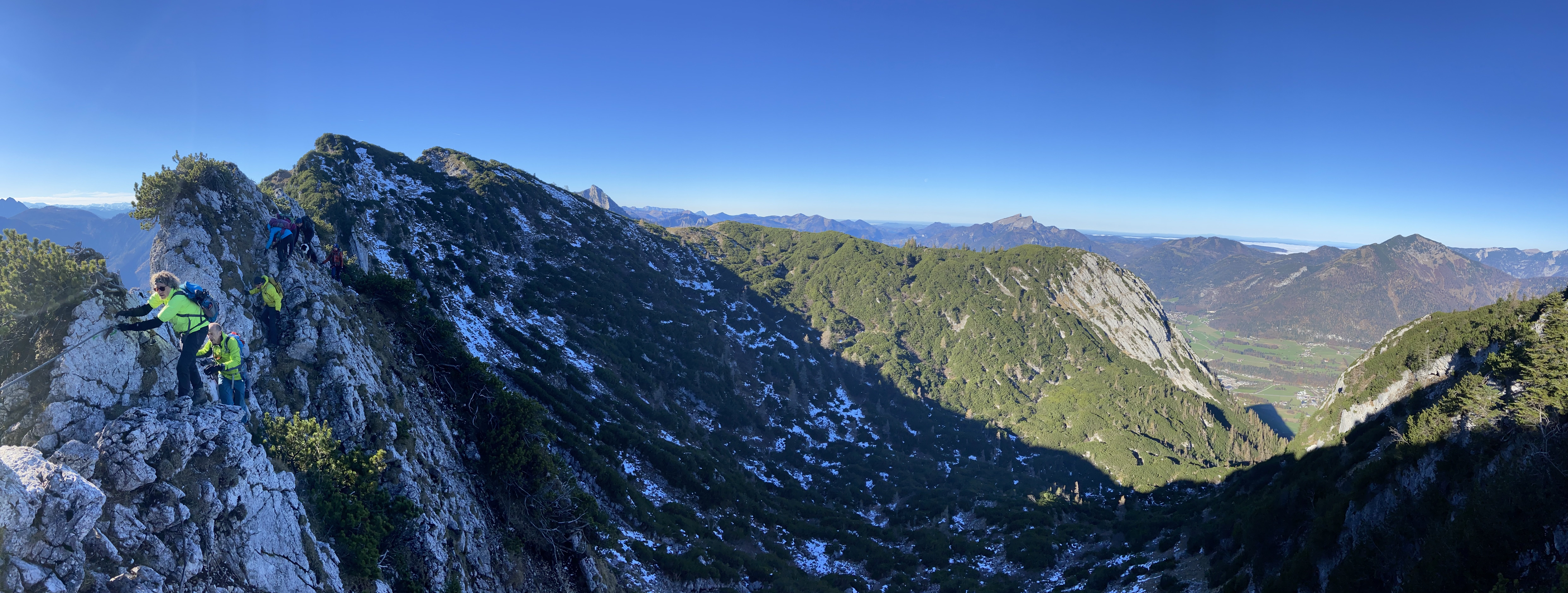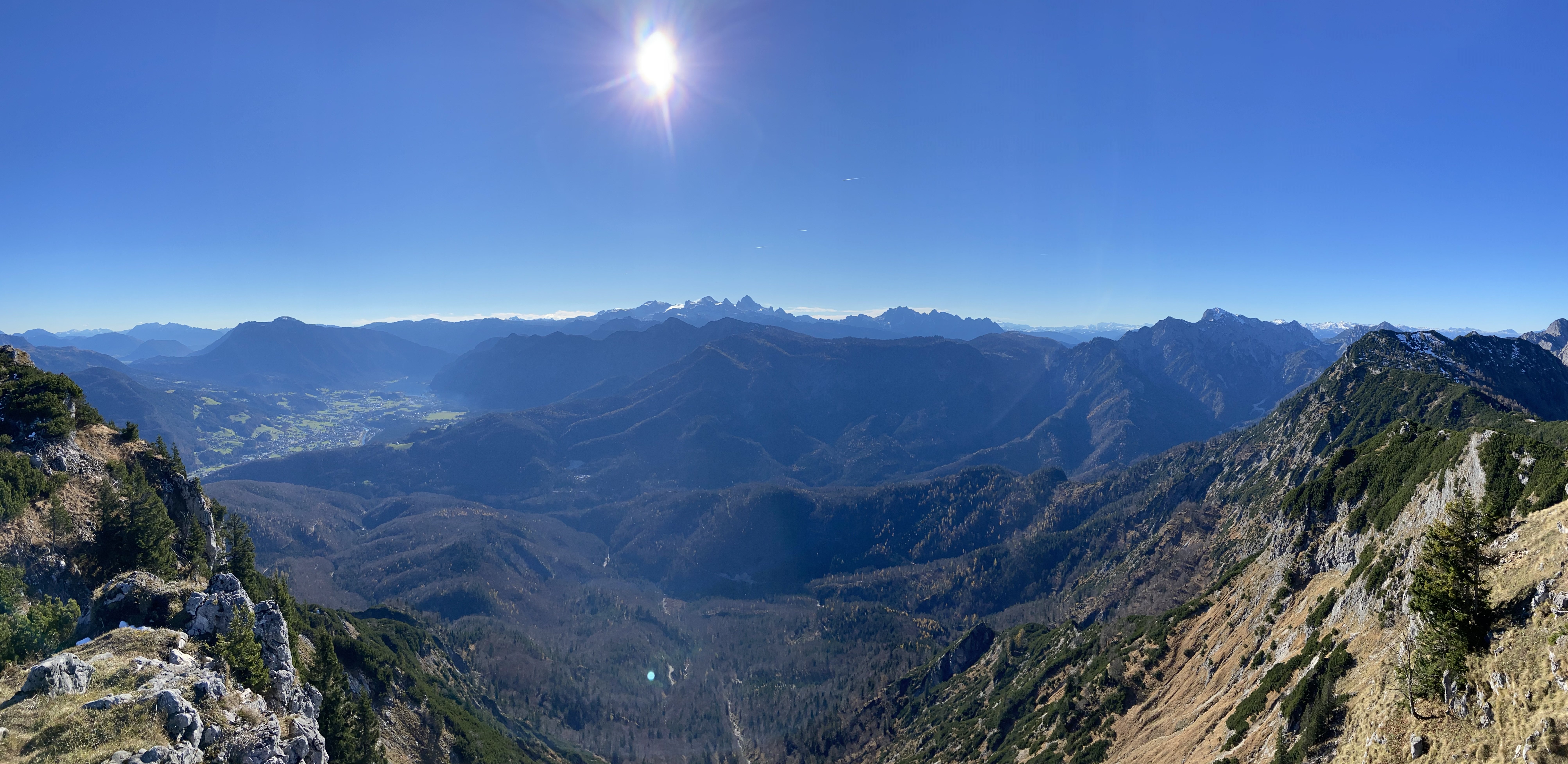 Im Salzkammergut, zwischen Strobl und Bad Ischl, stiegen wir vom Parkplatz am Nussensee aus hinauf auf den Rosskopf. Von dort aus dem Grat entlang zum Hainzen und Elferkogel und Katrin-Gipfel mit wunderbaren Ausblicken zum Dachstein-Massiv und gegen Ende runter auf Bad Ischl.