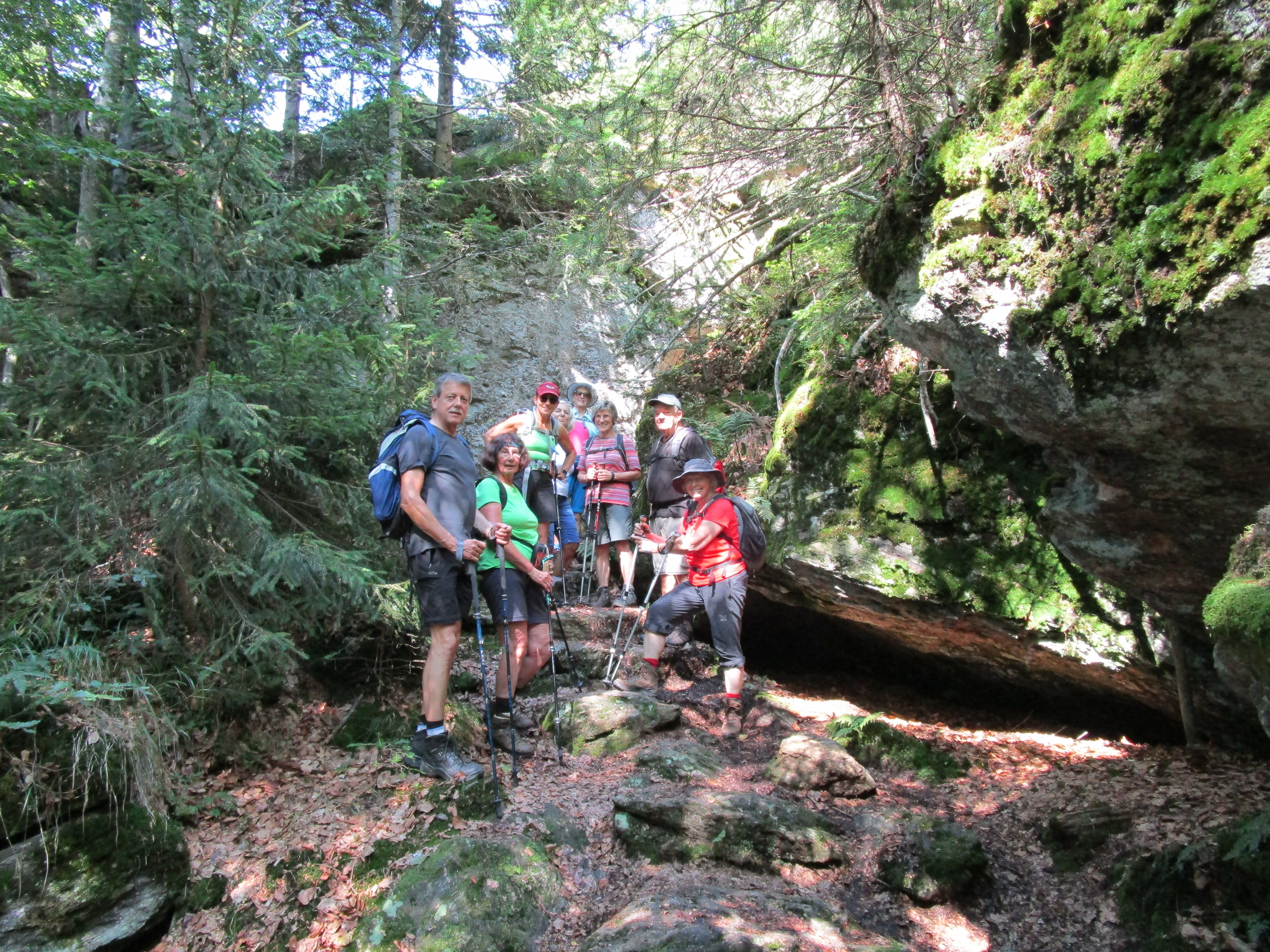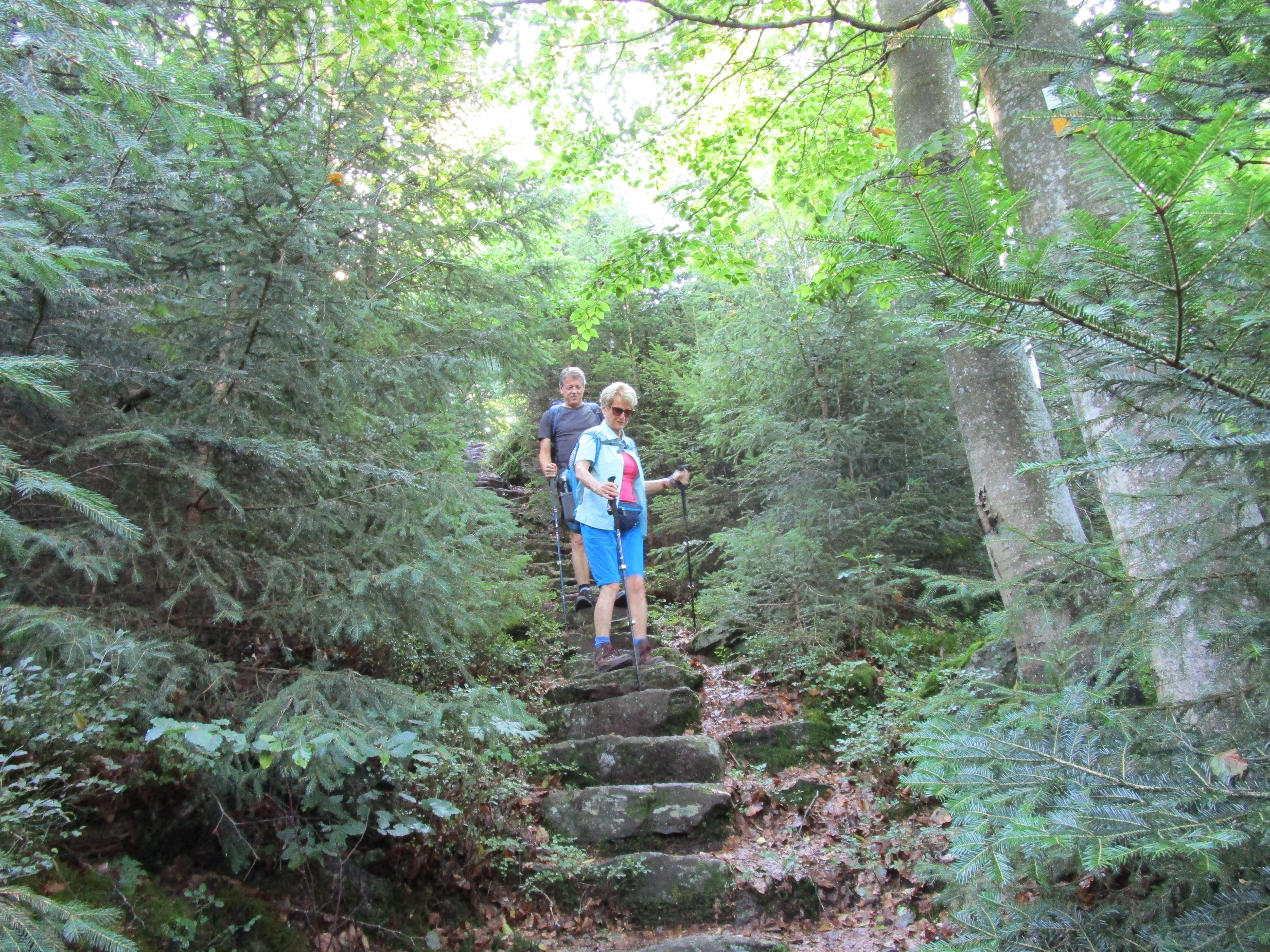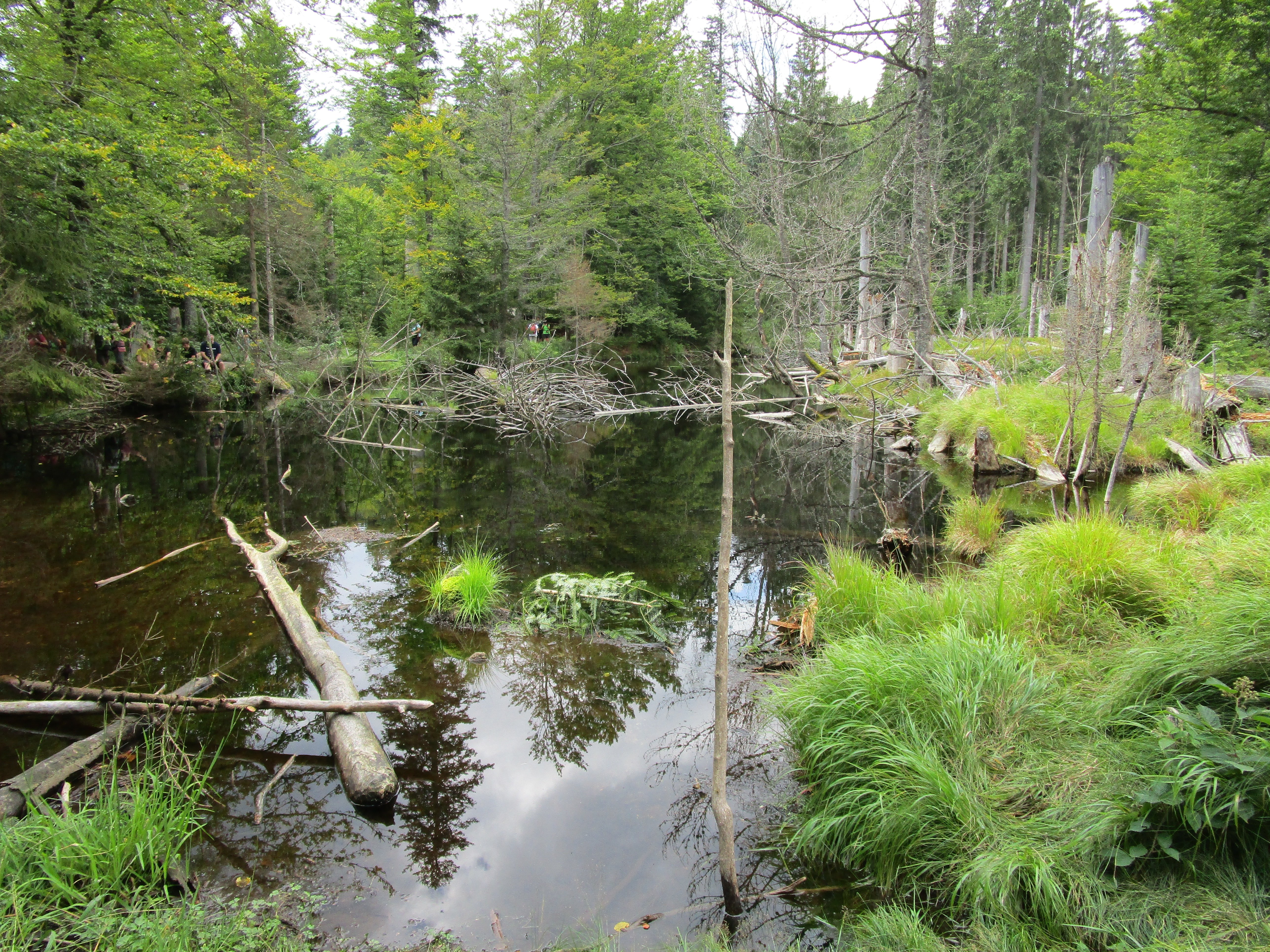 Start am Parkplatz Jägerstraßl in Mauth (799 m) um 9:00 Uhr bei schönem Wetter. Auf dem Rundweg „Eisvogel“ zunächst bergauf zum Leckerriegel (908 m). Dann bergab auf der „Steinernen Stiege“ zur Abzweigung am Spatberg (871 m). Weiter auf schönen Waldwegen zum Fuß der Gr. Kanzel (1001m). Über Steinstufen hinauf zum Gipfel, der aus mehreren großen Felsbrocken besteht und ein schönes, großes Gipfelkreuz hat. Schöne Sicht nach Süden und zum Lusen nach Nordwesten. Weiter auf dem Weg „Haselhuhn“ durch das Felswandergebiet mit seinen turmhohen Felsenformationen. Danach führte ein Weg durch lichten Mischwald hinab zum Hirschberg (864 m) und weiter zum Unterstand Ochsenriegel (834 m). Nach einer ausgiebigen Mittagspause ging es auf dem Flusskrebs-Rundweg weiter Richtung Norden bis zum Weg „Tanne“, der von der Sagwassersäge hinaufführt. Auf diesem dann zum Seefilz (933 m), einem renaturierten Hochmoorgebiet. Nach einiger Zeit kam der Eisvogelweg von der Gr. Kanzel her von rechts auf ihm wanderten wir weiter zur Steibachklause (846 m). Dort hielt uns eine Rangerin des Nationalparks einen interessanten Kurzvortrag über Vegetation und Tierbestand des Nationalparks. Die Biber haben dort einen künstlichen Stausee geschaffen. Am Ufer des Steinbaches leicht abwärts und über Bohlensteige in nachwachsendem Jungwald ging es dann zurück zum Parkplatz. Insgesamte Gehzeit mit Pausen: 5 Std. 45 Min. inclusive Schwammerl suchen. Höhenunterschied ca. 380 HM. Einkehr in Freyung im Gasthaus Veicht.