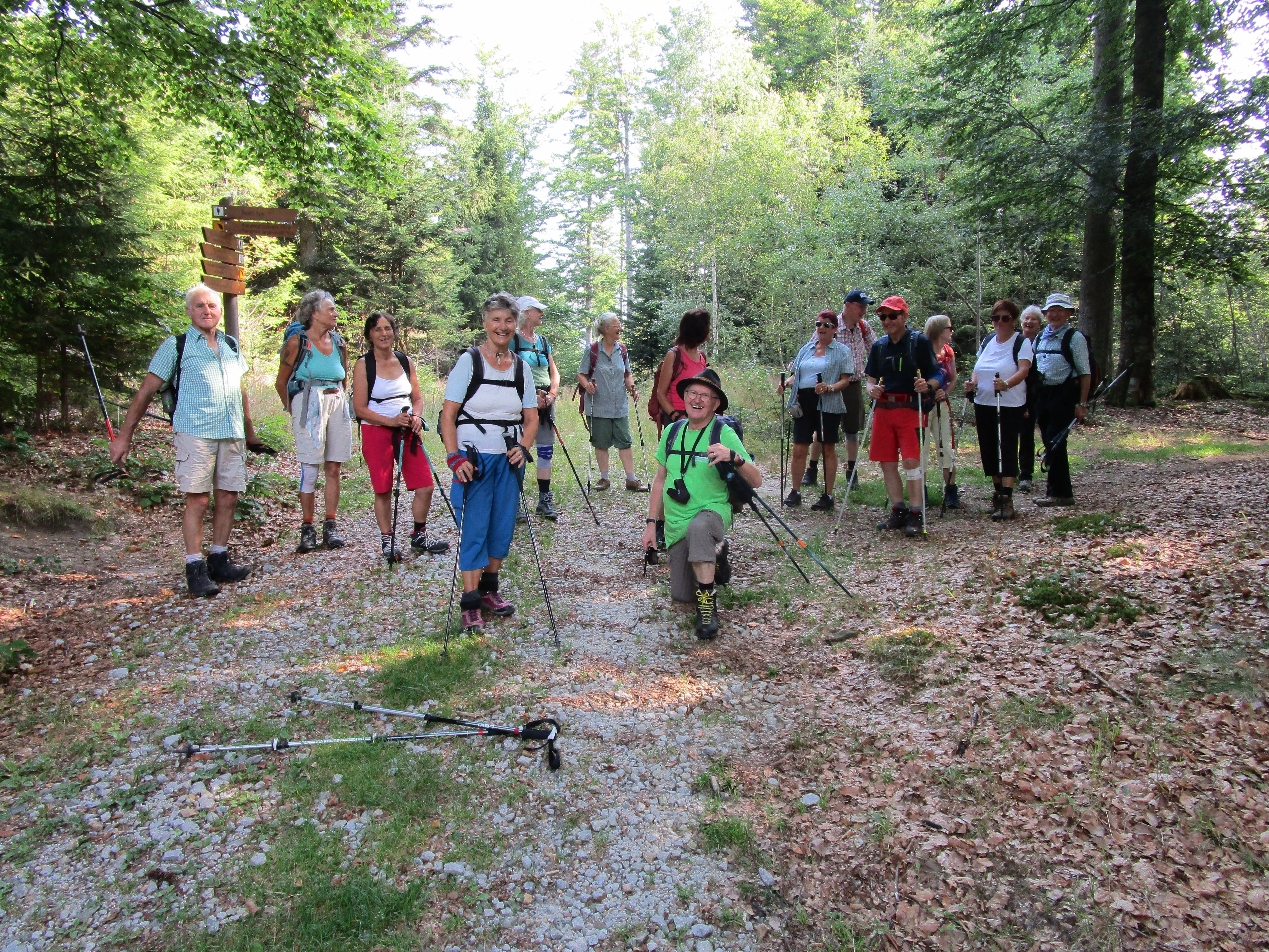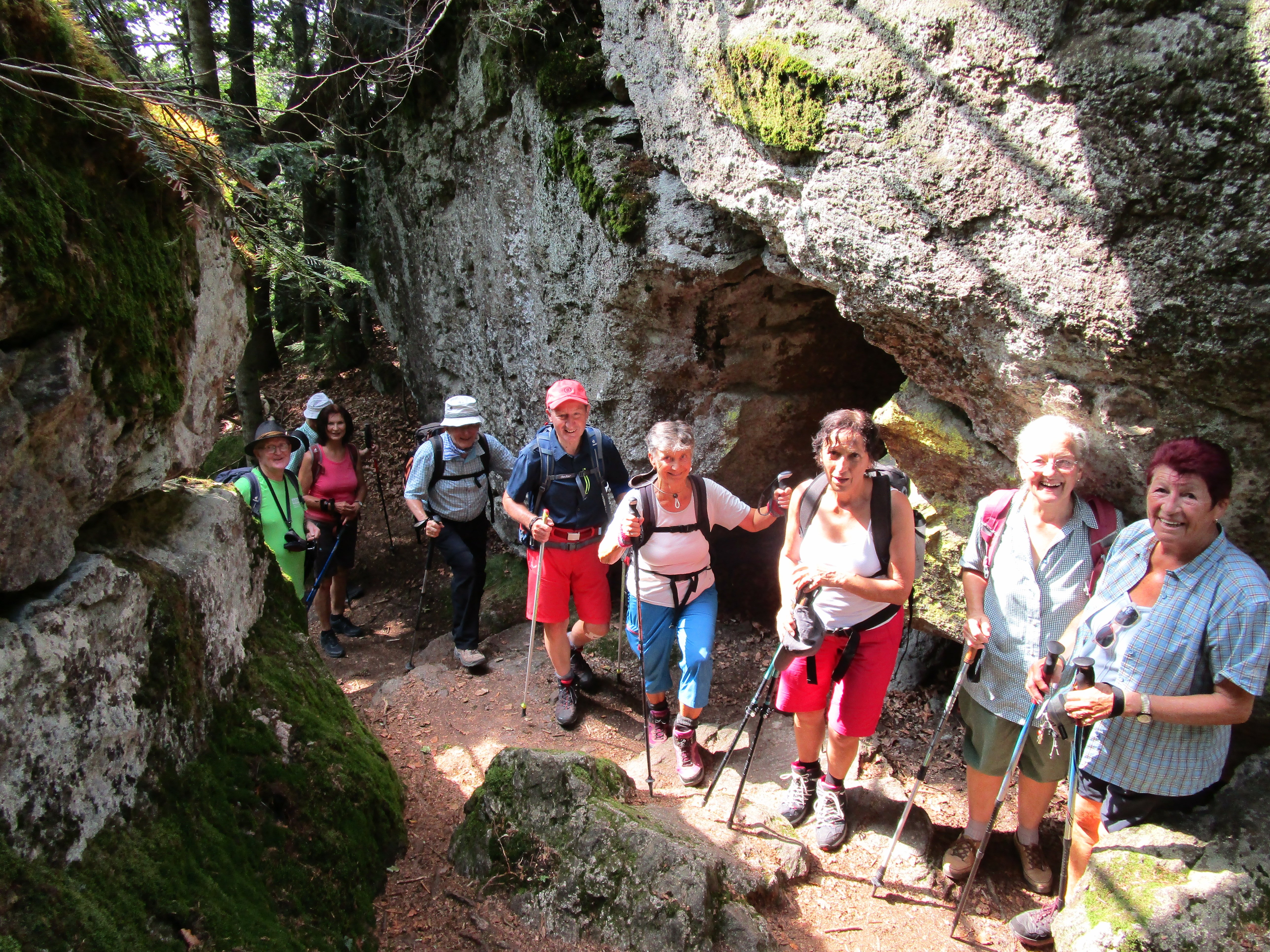 Der mit dem Zertifikat „Traumtour“ ausgestatte Rundweg „Eisvogel“ von Mauth zur Großen Kanzel fand bei den Alpenvereinssenioren so großen Anklang, dass Tourenleiter Rainer Blank die Wanderung ein zweites Mal durchführte. Bei schönstem Sommerwetter startete die Tour am Parkplatz Jägerstraßl in Mauth in die Region des Nationalparks. Erst stetig bergauf, dann über die Steinerne Stiege wieder abwärts und weiter in etwa gleicher Höhe stets im schattigen Wald führte die Wanderung bis vor die Große Kanzel (1001 m). Der klettertechnisch fordernde Felsengipfel wurde von allen Teilnehmern erklommen und bot eine herrliche Sicht nach Süden. Auch der Gipfel des Lusen im Nordwesten war zu erkennen. Ein hohes Gipfelkreuz ziert den Gipfel der Großen Kanzel.