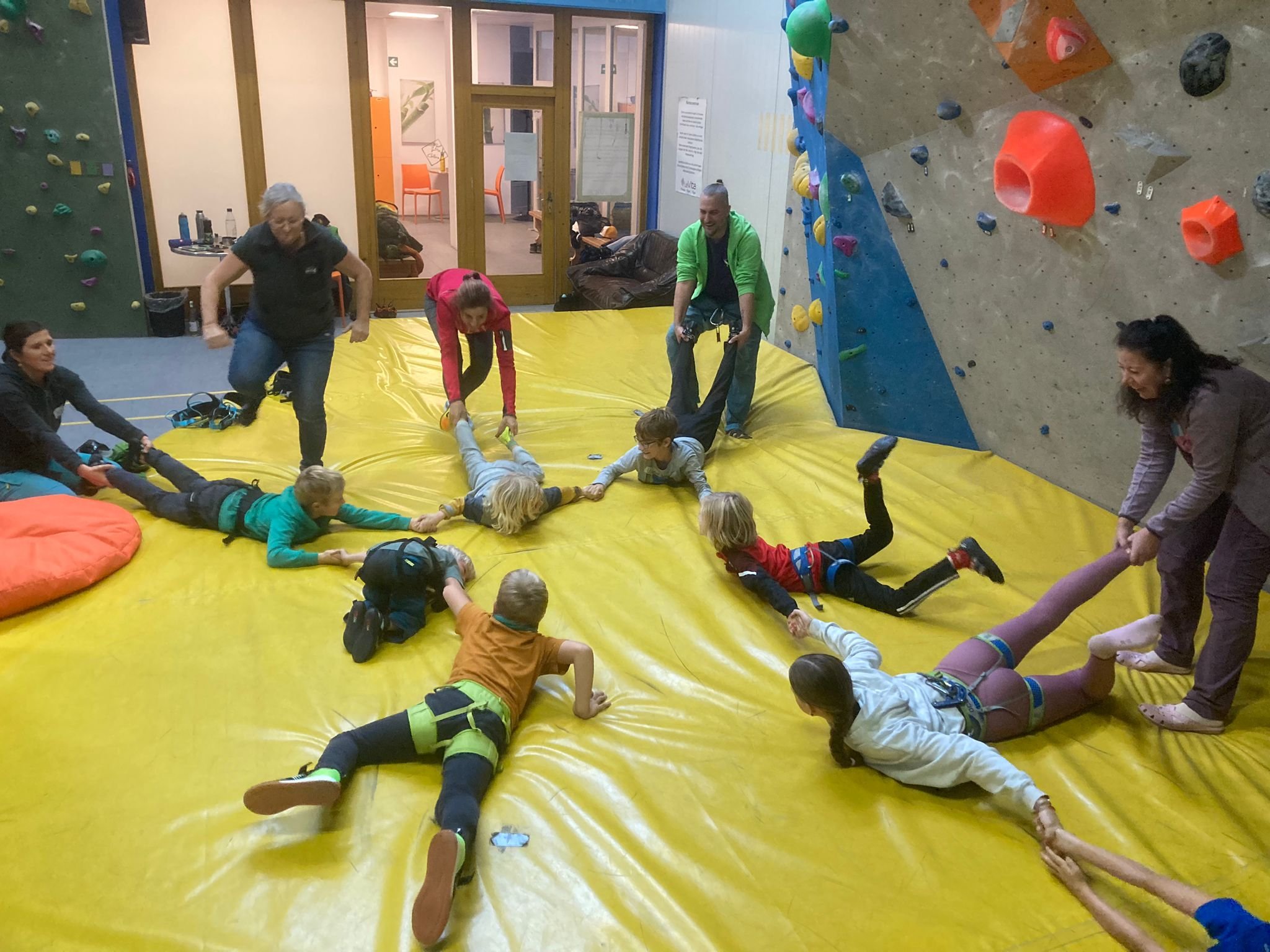 Nach einer Spieleinlage und einer gründlichen Einweisung durch die Kletterbetreuer wurden Boulder- und Top-Rope-Klettereien angeboten. Sowohl die motivierten Teilnehmer als auch die Sicherungsmannschaft hatten an dem kurzweiligen Vormittag viel Spaß. Manche Teilnehmer nutzten den Vormittag auch um ihre "eingestaubten" Kletterkenntnisse wieder aufzufrischen.