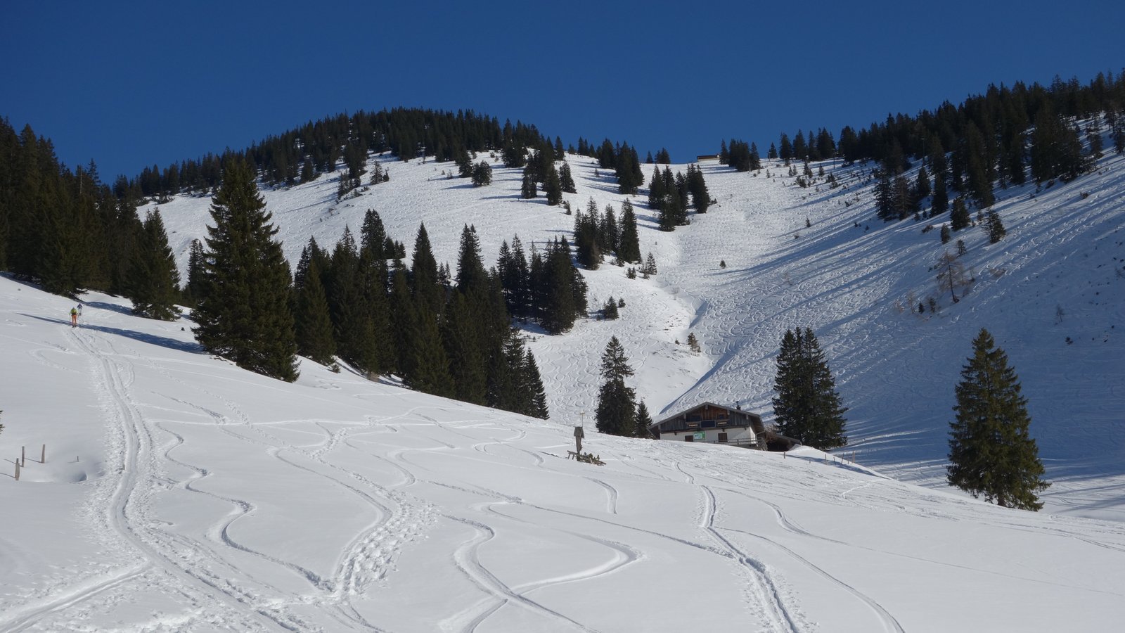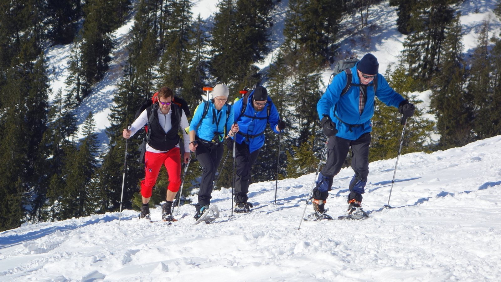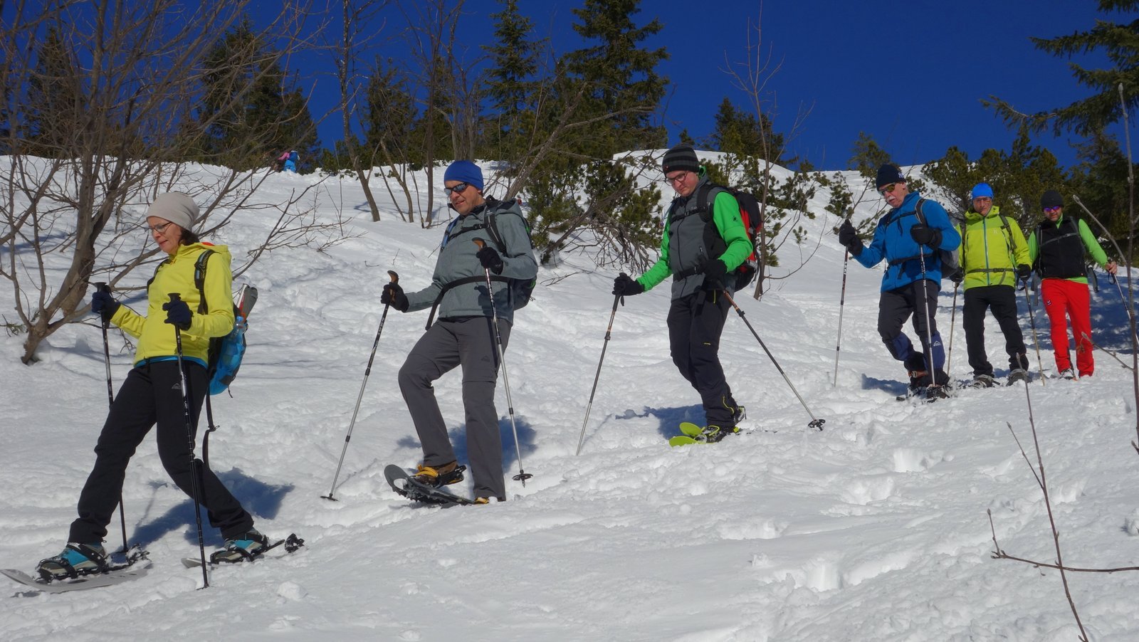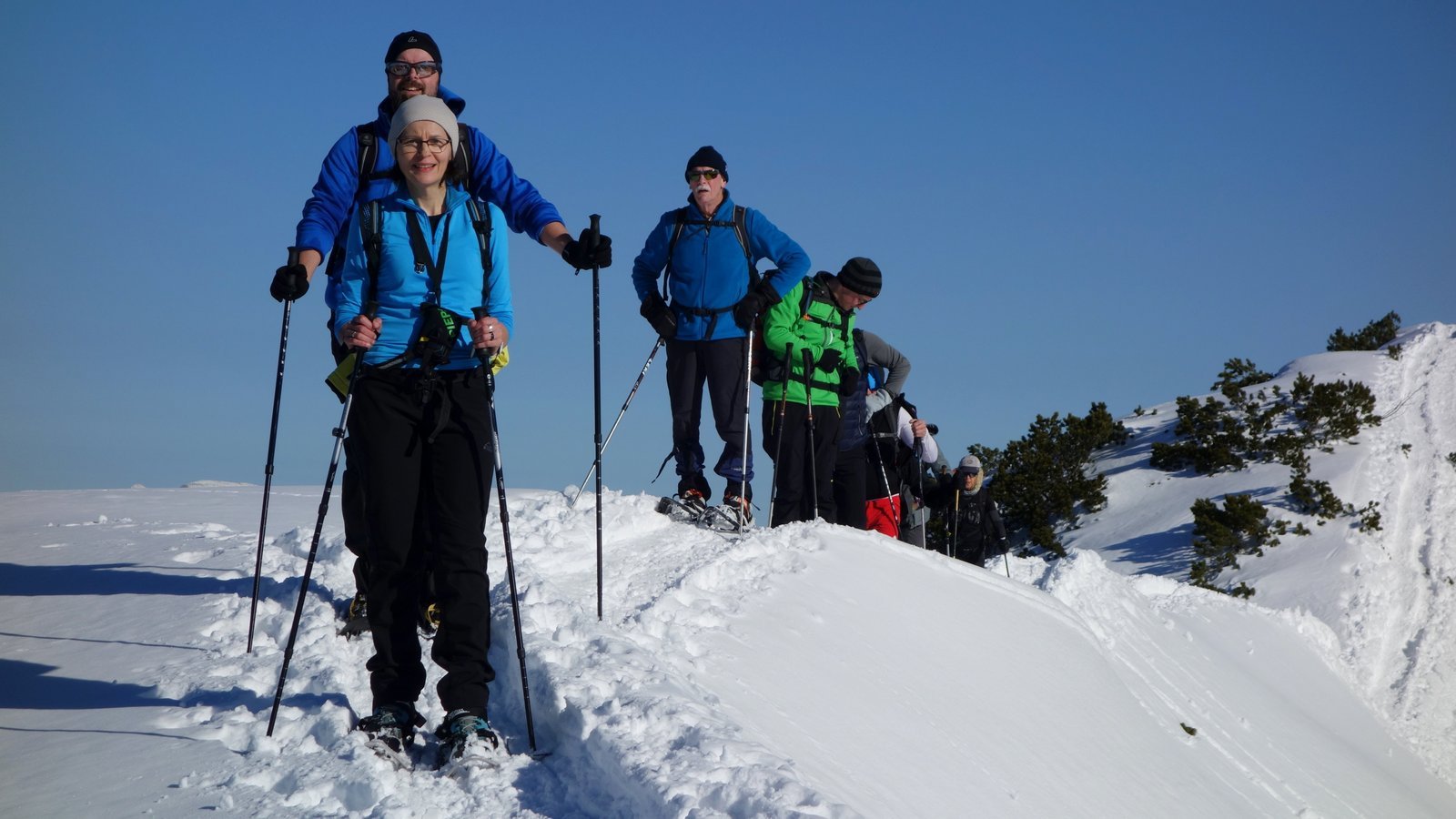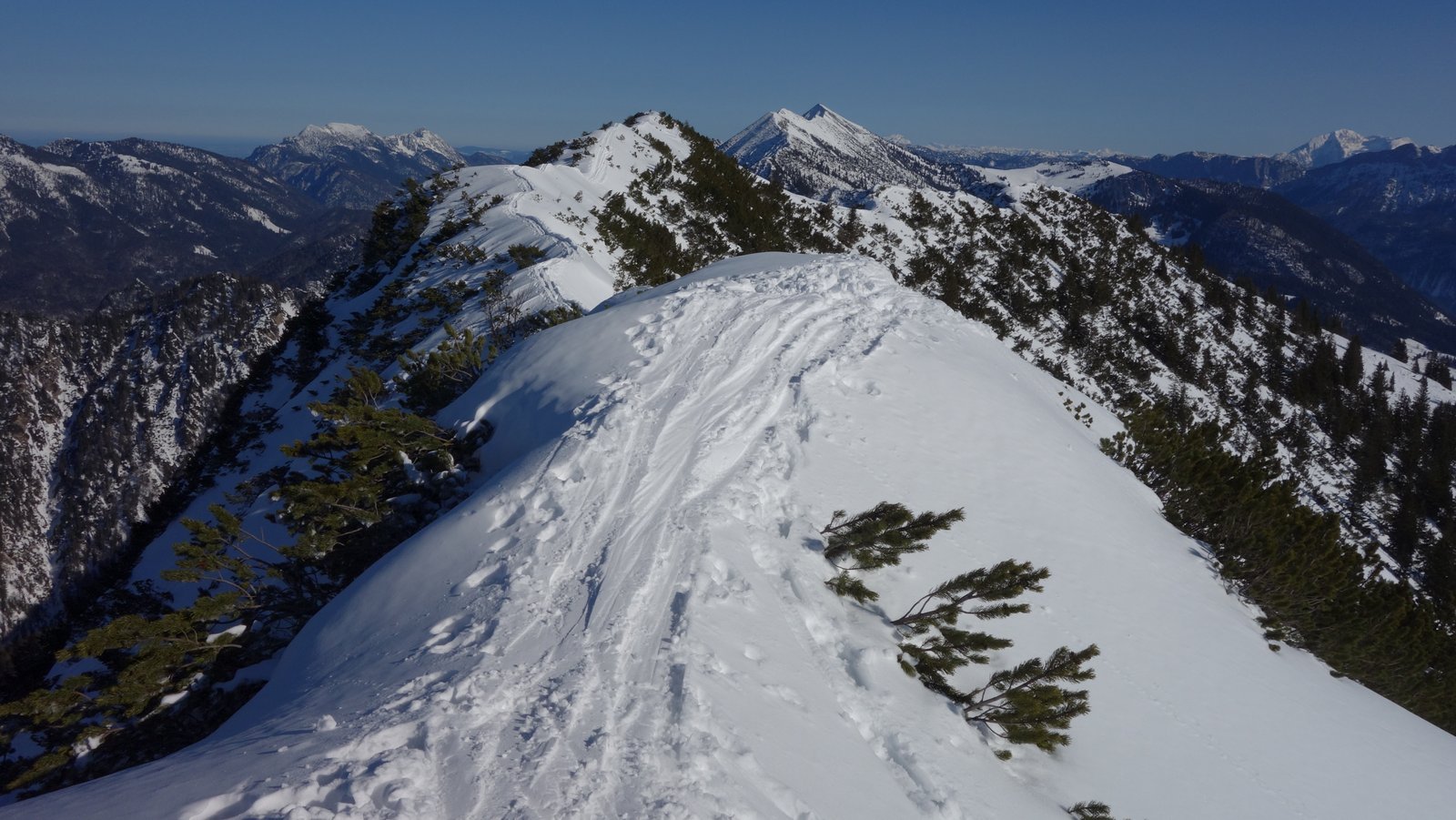 14 Teilnehmer des Pfarrkirchner Alpenvereins stiegen unter der Leitung von Karl-Heinz Hager auf das Dürrnbachhorn 1767m. Vom Parkplatz Seegatterl stieg die Gruppe in östlicher Richtung anfänglich auf einer gewalzten Langlaufloipe, sowie einem gespurten unschwierigen Waldsteig zur Dürrnbachalm. Der weitere Weg in Richtung Bergstation der Sesselbahn führt über eine steile Hangquerung, dann weiter zunehmend steiler auf den Grat zum Gipfelkreuz 1767m. Von hier ging es ca. 300m weiter auf einem schmalen Grat zum höchsten Punkt des Dürrnbachhorns 1776m, der kein Gipfelkreuz trägt. Zur Gipfelpause ging es wieder zurück auf den schmalen Grat zum Gipfelkreuz, wo sich eine herrliche Aussicht auf unzählige Gipfel im Umkreis des Dürrnbachhorns bot. Nach einer Gehzeit von knapp 5 Std. und ca. 14 km Wegstrecke erreichten die Schneeschuhwanderer über den Aufstiegsweg den Parkplatz Seegatterl.