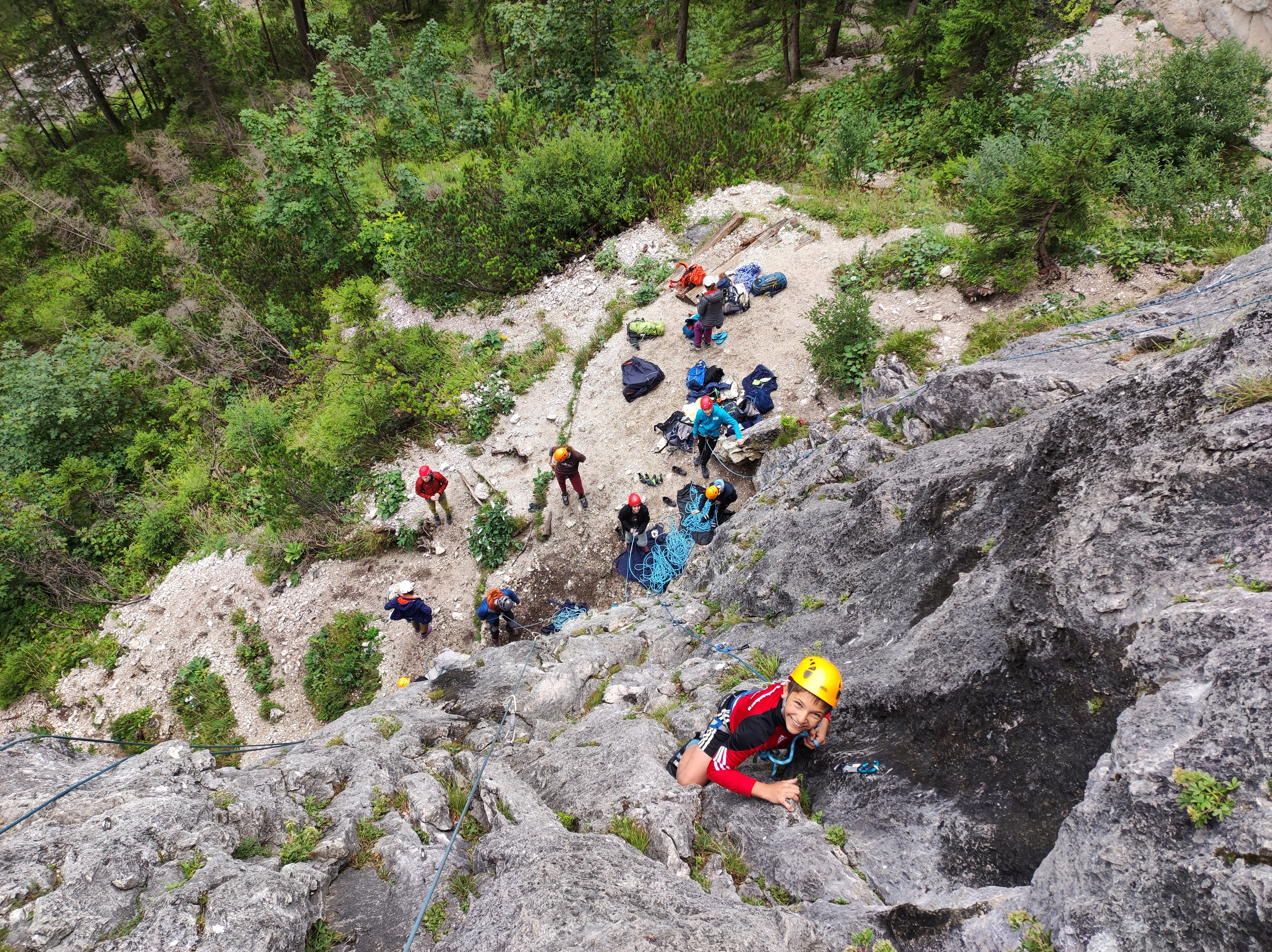 Am fünften Tag schien die Sonne und man machte sich auf den Weg ins Rienztal zum Klettern. Der etwas längere Zustieg wurde mit einer schönen Aussicht und guten Routen belohnt.