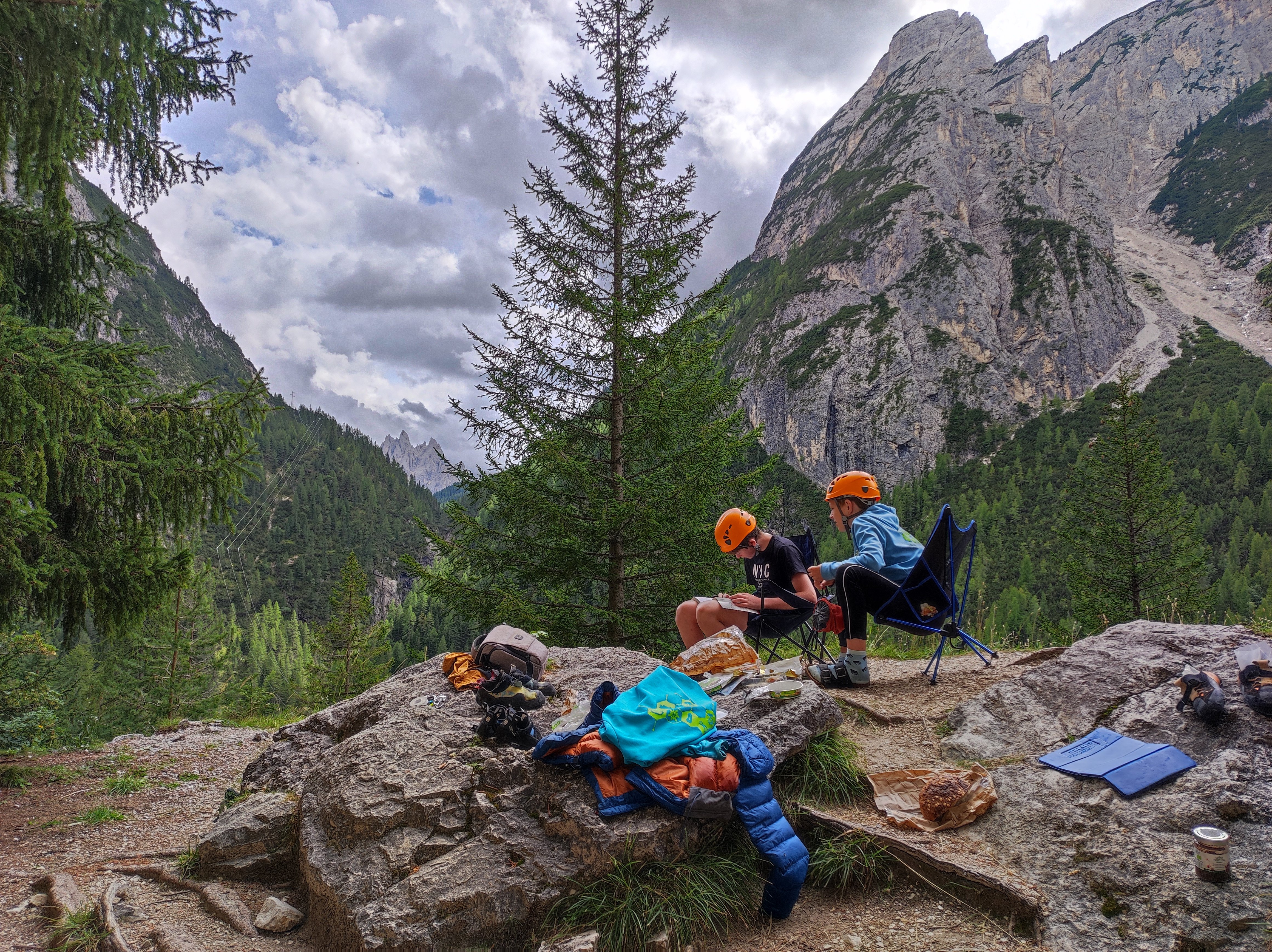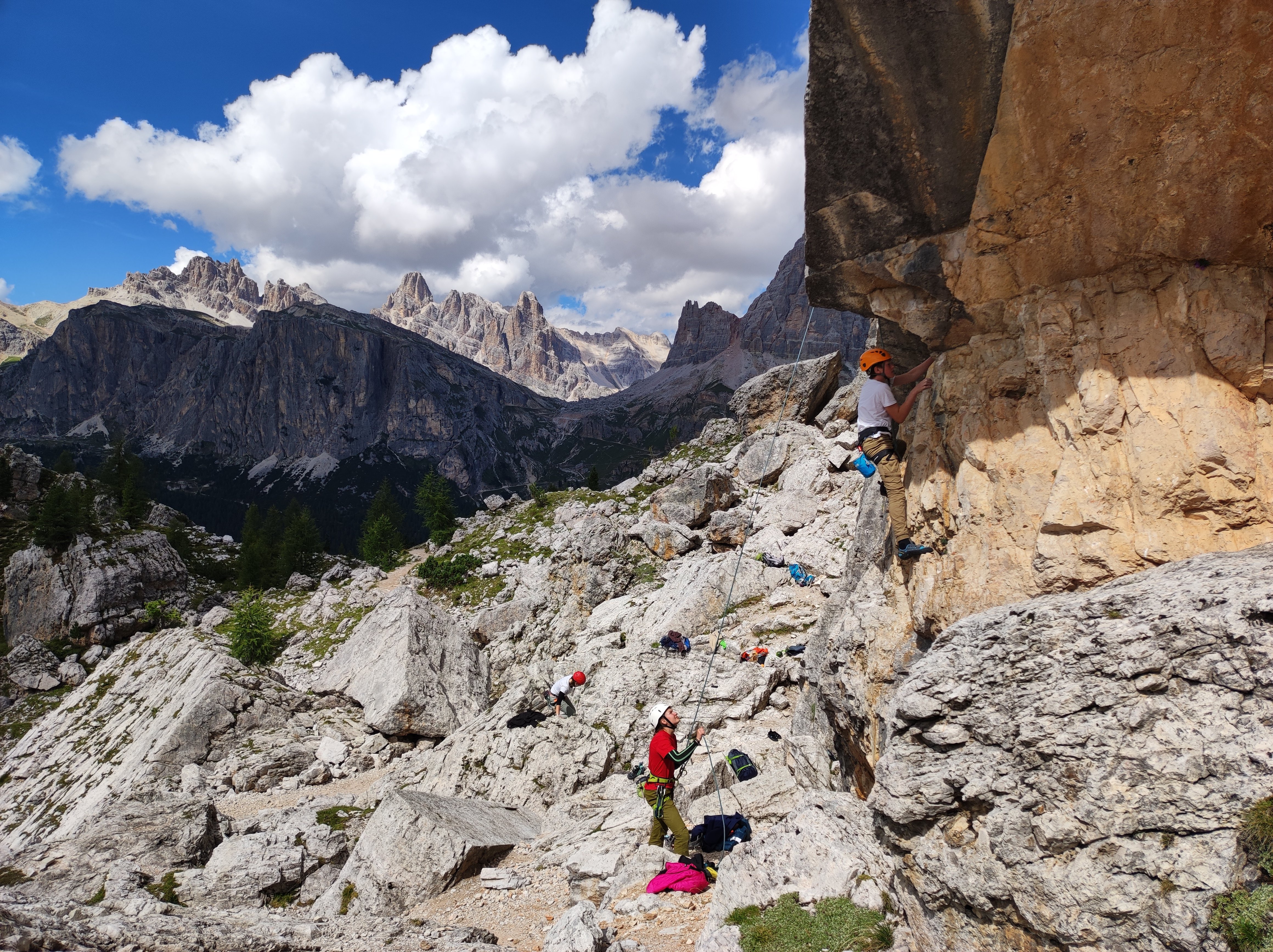 In der Nacht zum nächsten Tag erkrankte leider ein kleiner Teil der Gruppe, weswegen sich nur ein paar Mitglieder zum Kletterziel Cinque Torri aufmachten. Nach 50 Minuten steilen Zustieg wurde der Kletterfels erreicht, der ein atemberaubendes Panorama bot. Zum Abendessen gab es Nudelsuppe damit die Elektrolytspeicher wieder gefüllt werden und die Erkrankten wieder komplett genesen konnten.