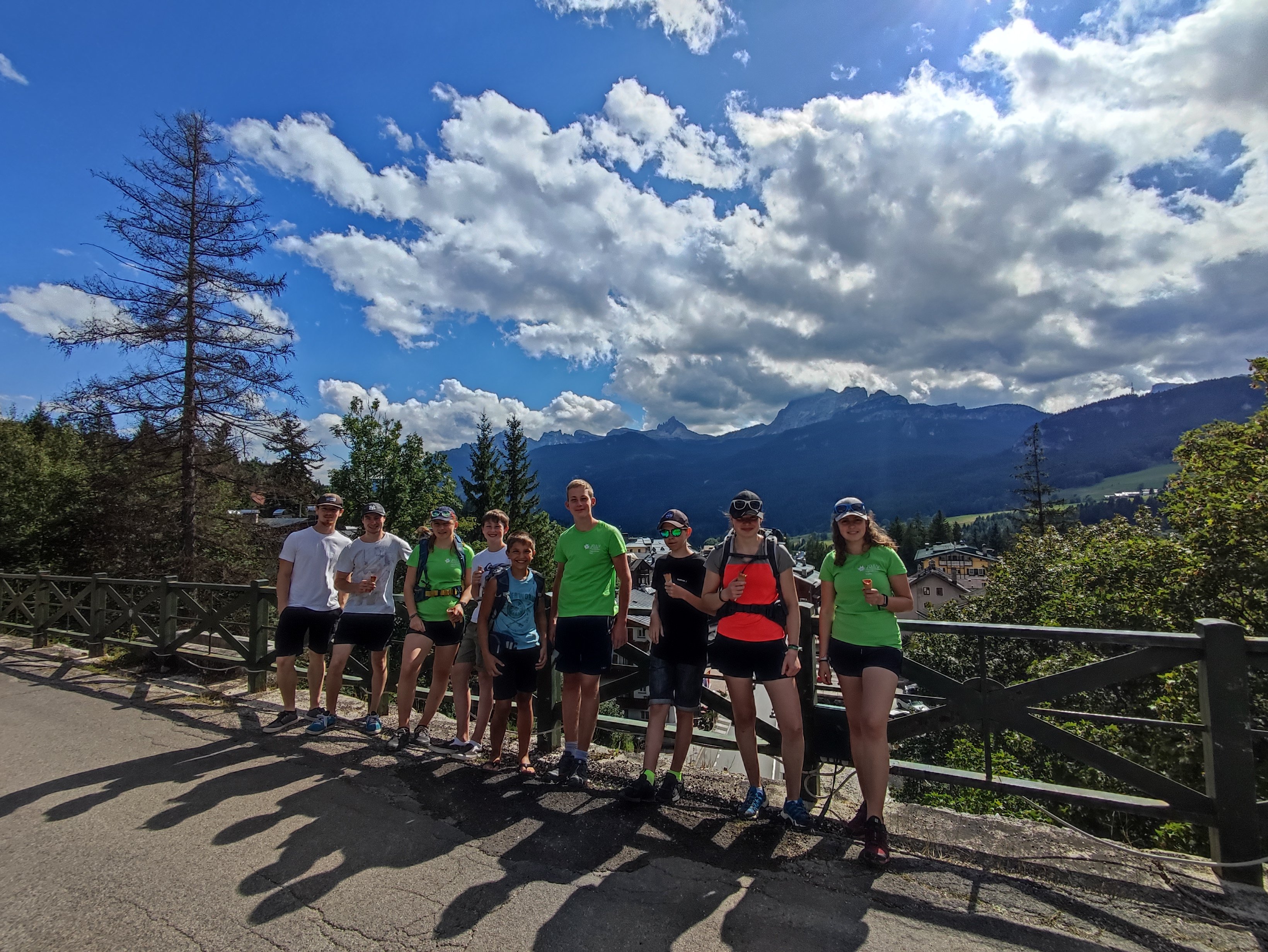 Am sechsten Tag stand ein Pausetag auf dem Programm. Die Gruppe wanderte in die Stadt und schaute sich nach einem Eisdielenbesuch die Bergsportgeschäfte von Cortina an.