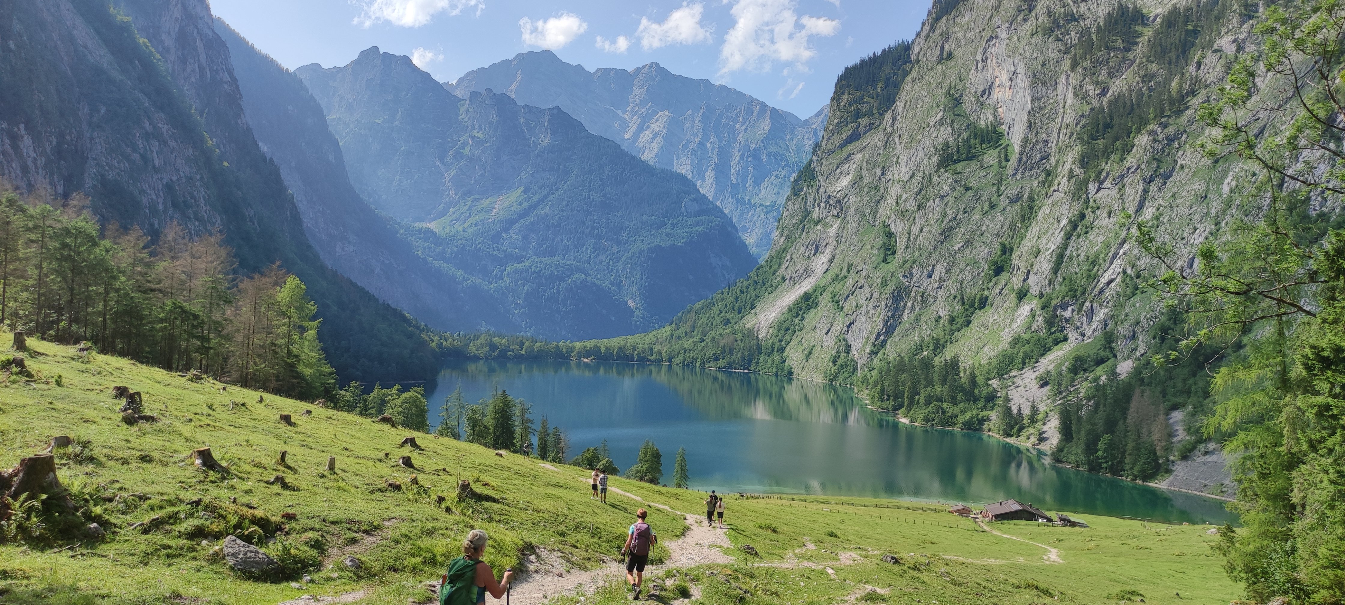 Nach einer Gipfelrast führte der Weg weiter zur Wasseralm. Da der Weg aber noch weit war und man auf die Zeiten der Schiffe angewiesen war entschied man sich dazu gleich weiterzugehen in Richtung Röthsteig. Dieser mit Seilversicherungen sehr gut abgesicherte Weg führt steil hinab zum Obersee, auf welchen man im oberen Teil einen atemberaubenden Blick hat. Unten angekommen wurde noch der Röthbachwasserfall bestaunt, ehe es an der Fischunkelalm und den Obersee vorbei zurück zur Schiffsanlegestelle nach Salet ging. Mit den Boot zurück in Schönau am Königsee gönnte man sich noch das an der Wasseralm ausgelassene Weißbier bevor die Rückreise nach Pfarrkirchen angetreten wurde.