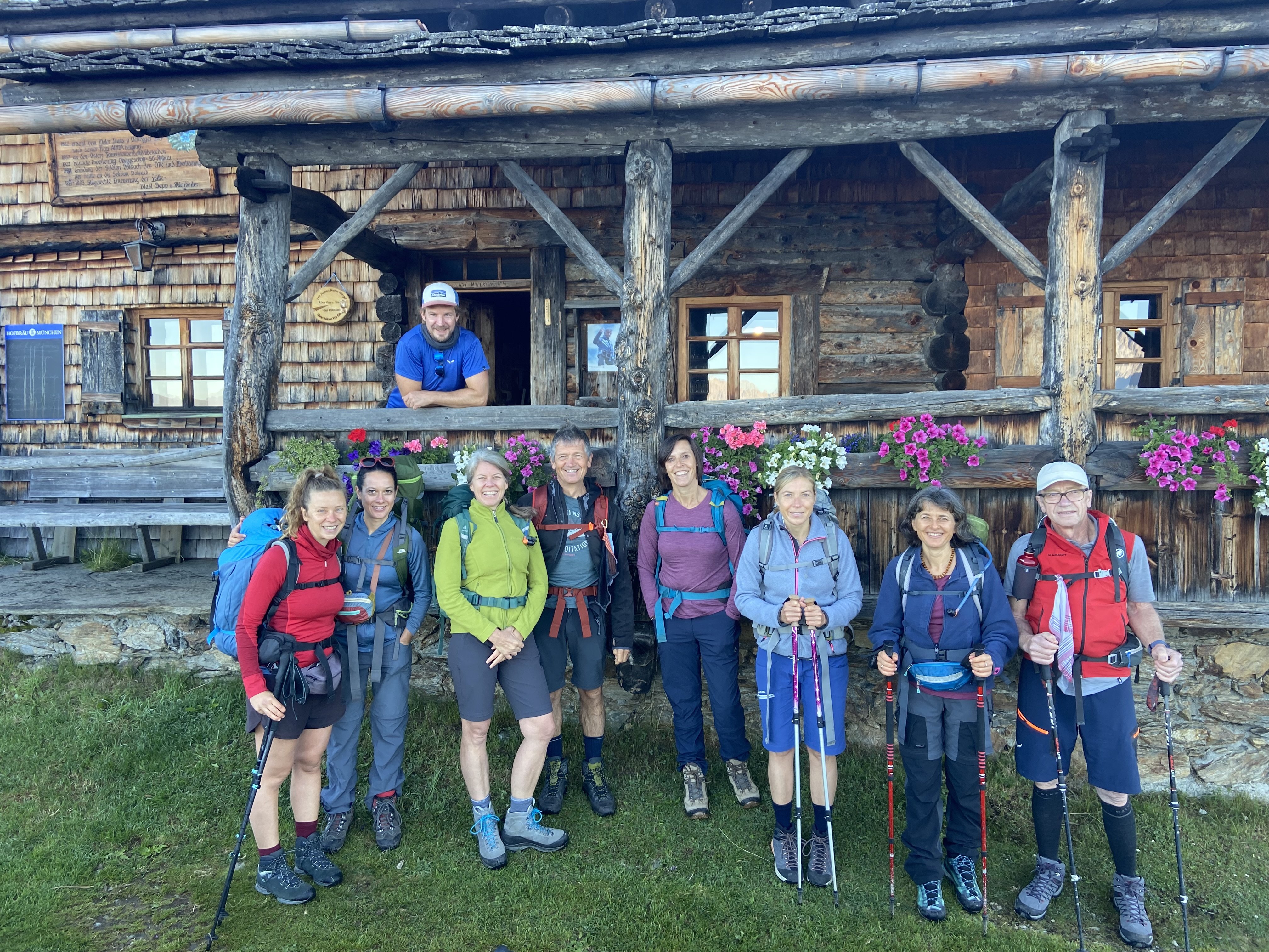 Angekommen am Anna Schutzhaus mussten wir zum Glück gar nicht mehr lange aushalten bis die Nachzügler zu uns stoßen konnten und wir uns vollständig fühlen durften. Das zweite wunderbare Wiedersehen an diesem Tag. Nach ersten Blicken über Lienz - mit „ie“ geschrieben und nicht zu verwechseln mit Linz in Oberösterreich - konnten wir unsere Zusammenkunft mit einem gemeinsamen Festmahl auf der Hütte feiern. Dabei auch der Genuss des ersten Aufgusses des von einem Tübinger Mitwanderers „traditionell“ täglich frisch gesammelten Bergkräuter-Tees – dieses mal benannt als „Kreuzeck‘sche Kröuter-Komposition“.
