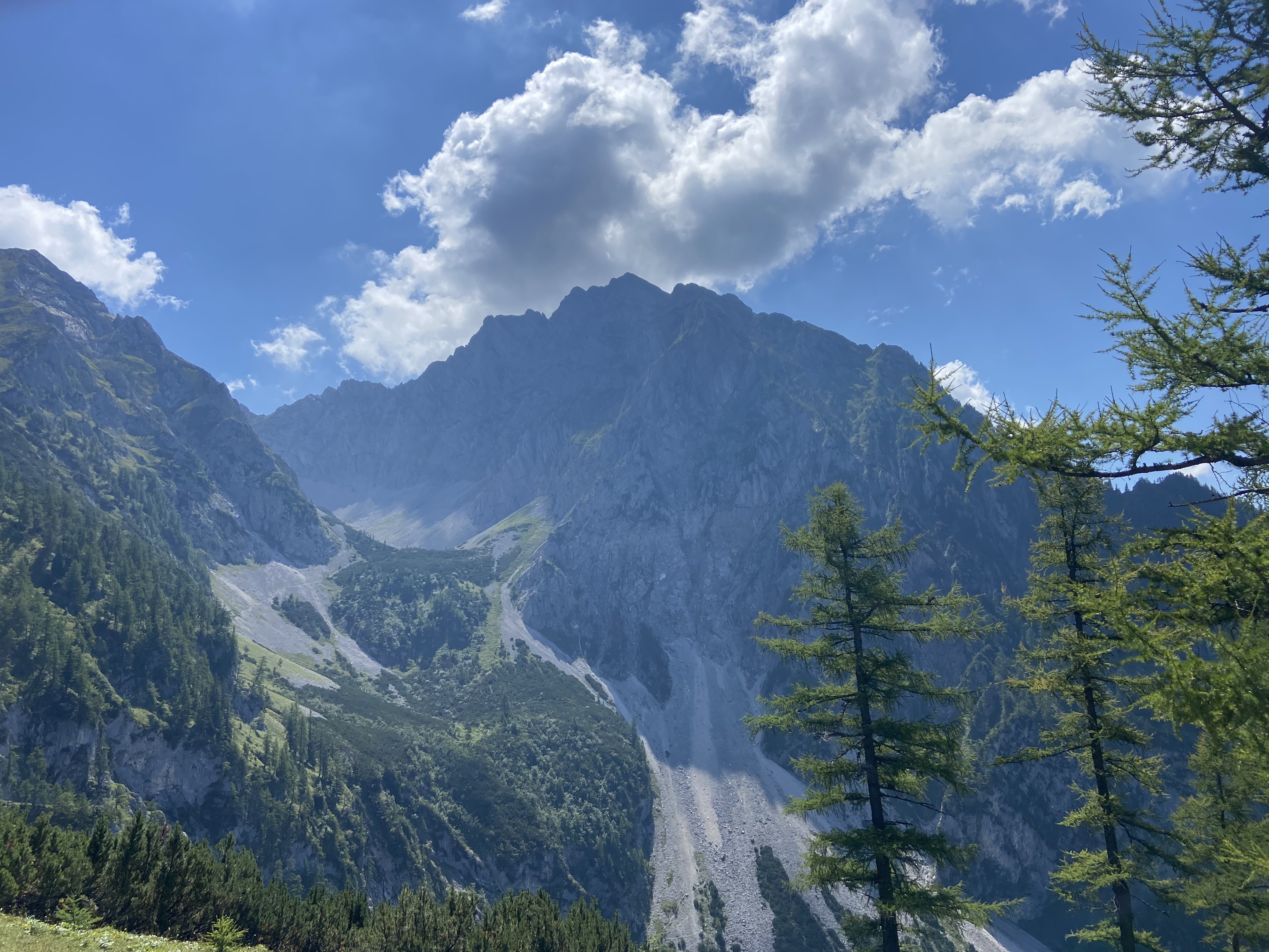 Zuerst auf leichten Wanderwegen durch den Wald bis zur Gowilalm. Dort entschieden wir uns für den Aufstieg zum Kleinen Phyrgas, wegen seinen 2023m Höhe unser "Jubiläumsjahrberg".