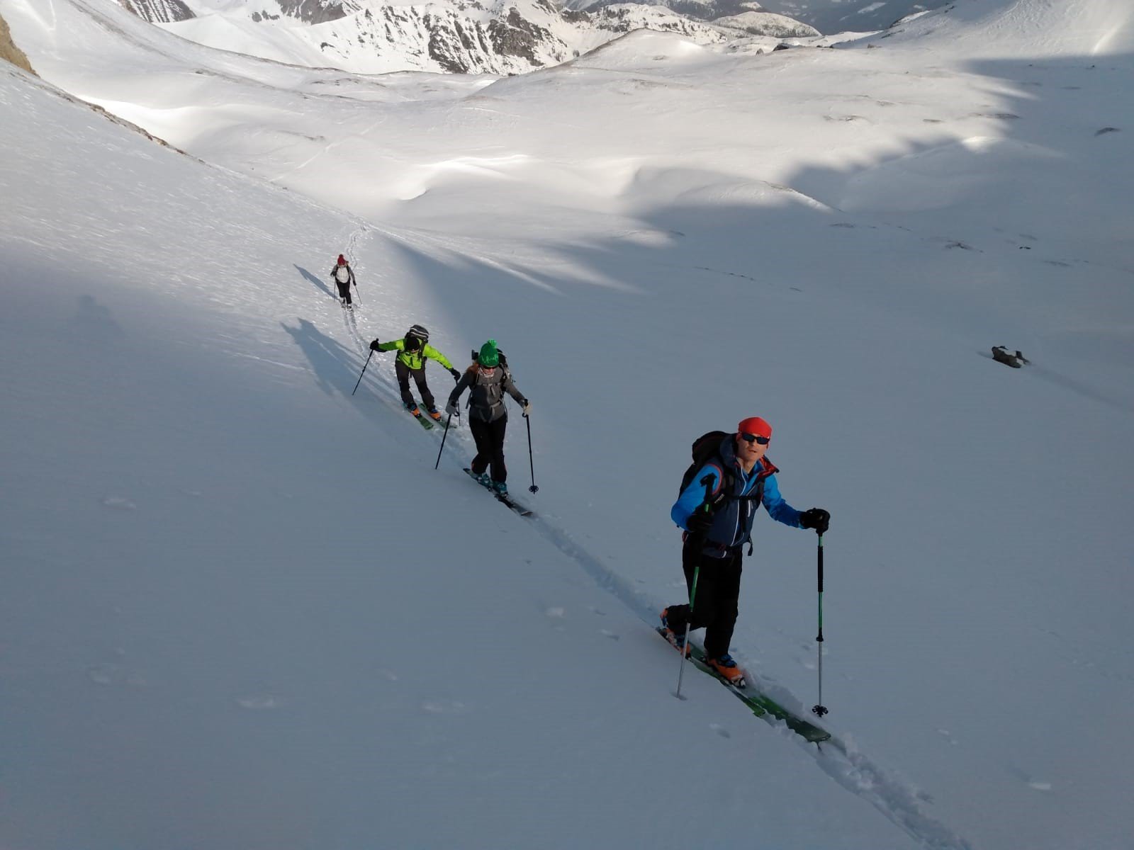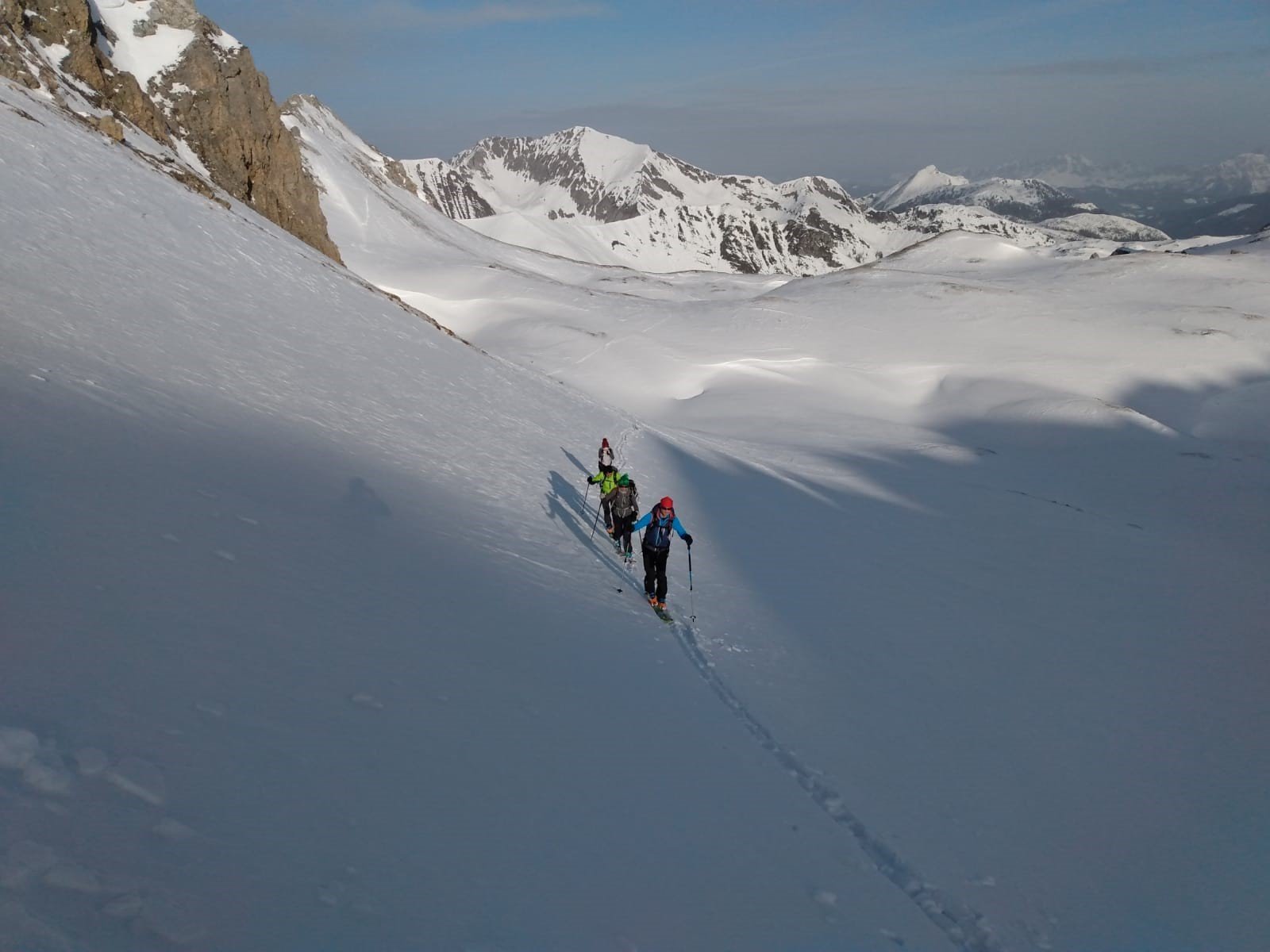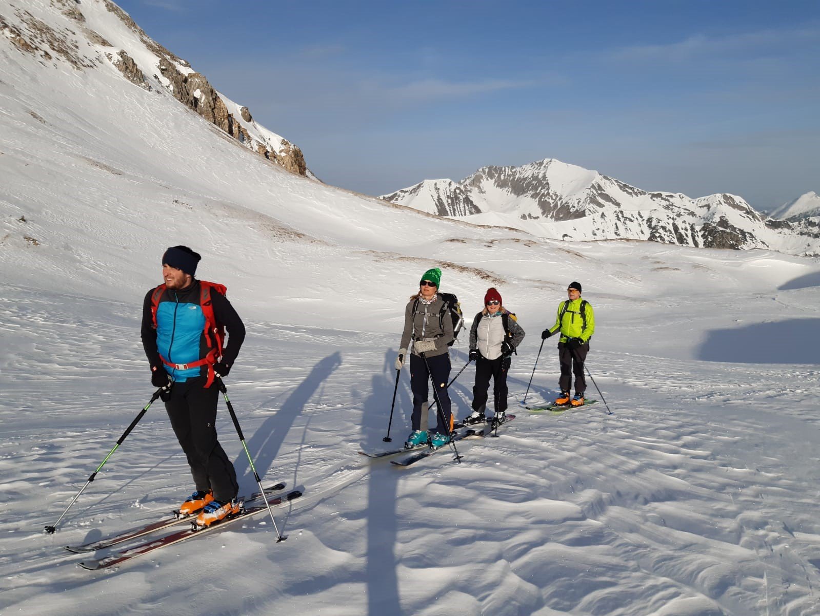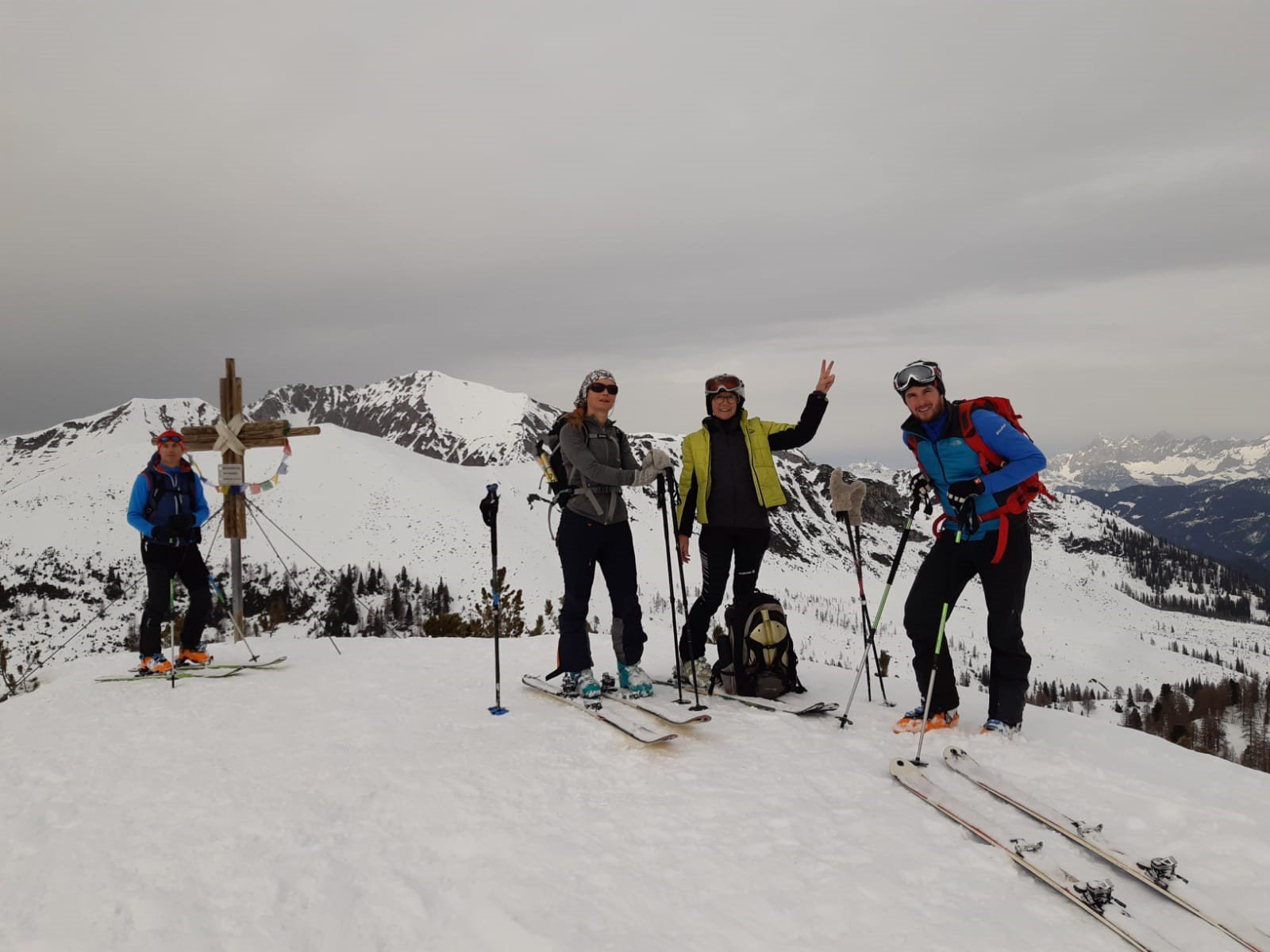 6 Skitouren- und 4 Schneeschuhgeher machten sich am Freitagnachmittag auf den Weg zum Parkplatz an der Vorderen Gnadenalm, kurz vor Obertauern. Von dort stiegen die zwei Gruppen am Abend rund 600 Höhenmeter zur Südwiener Hütte auf. Nach dem Abendessen zeigte Sebastian Seifert den Teilnehmern wie man den Lawinenlagebericht richtig liest und für die Tourenplanung anwendet. Am Samstagmorgen wurde dann ausgiebig der Umgang mit der obligatorischen Lawinen-Sicherheitsausrüstung für Tourengeher geübt. Von der Beobachtung eines Lawinenabgangs, über den Ablauf der Rettungskette, das Suchen mit dem Lawinenpiepser, das korrekte Anwenden der Sonde und effektives Schaufeln, konnte jeder Teilnehmer seine Kenntnisse erweitern.