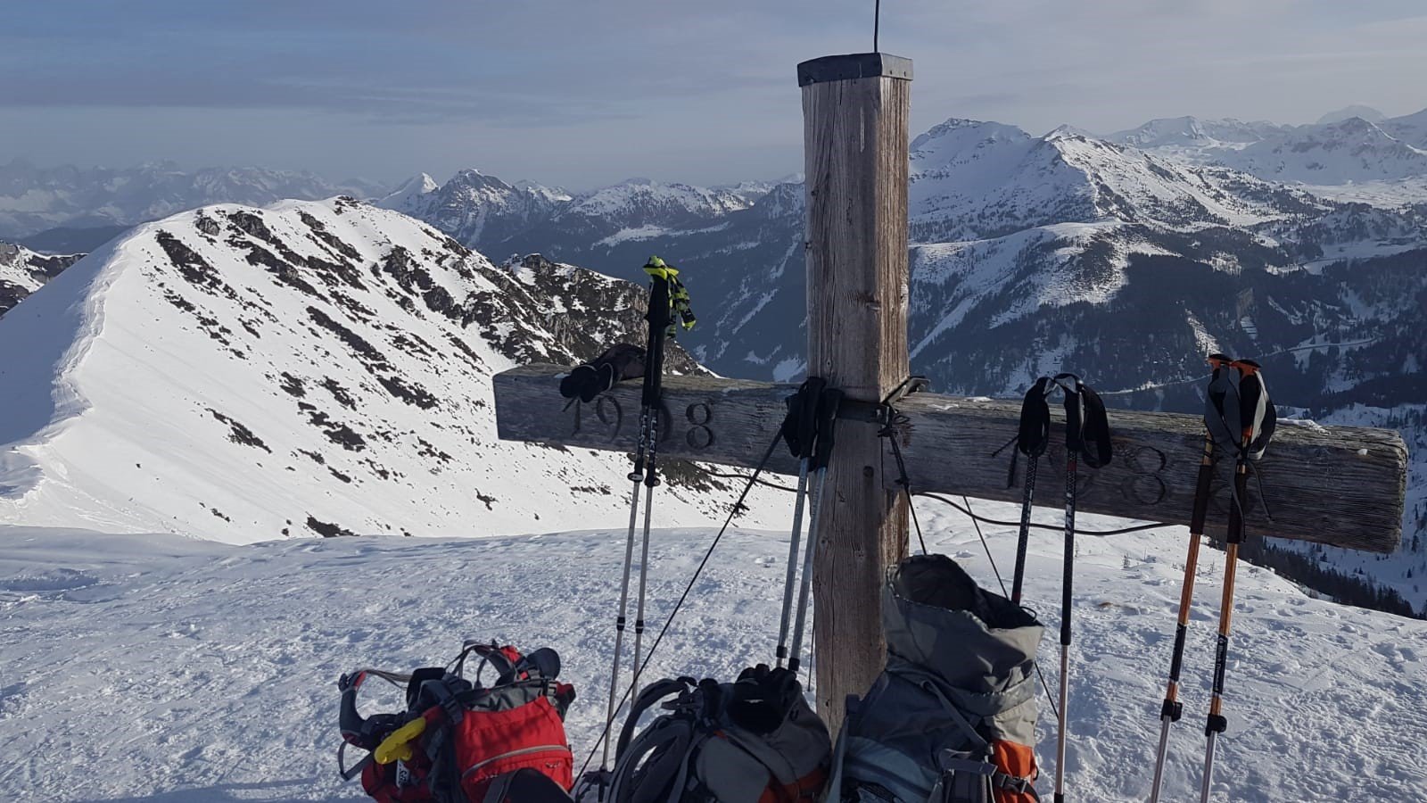 Am Sonntagmorgen ging die Skitourengruppe mit Sebastian Seifert auf den 2252m hohen Kesselkopf, haben diesen überschritten und sind über das Windsfeld in Richtung untere Pleißlingsalm abgefahren bevor es nach einem erneuten Aufstieg wieder zurück ging. Die Schneeschuhgeher mit Rainer Brandl stiegen bei sonnigem Wetter auf den 2066m hohen Spirzinger und genossen die 360° Rundumsicht. Nach einer kurzen Einkehr und Abstieg/Abfahrt von der Südwiener Hütte ging es Nachmittags wieder zurück nach Pfarrkirchen.