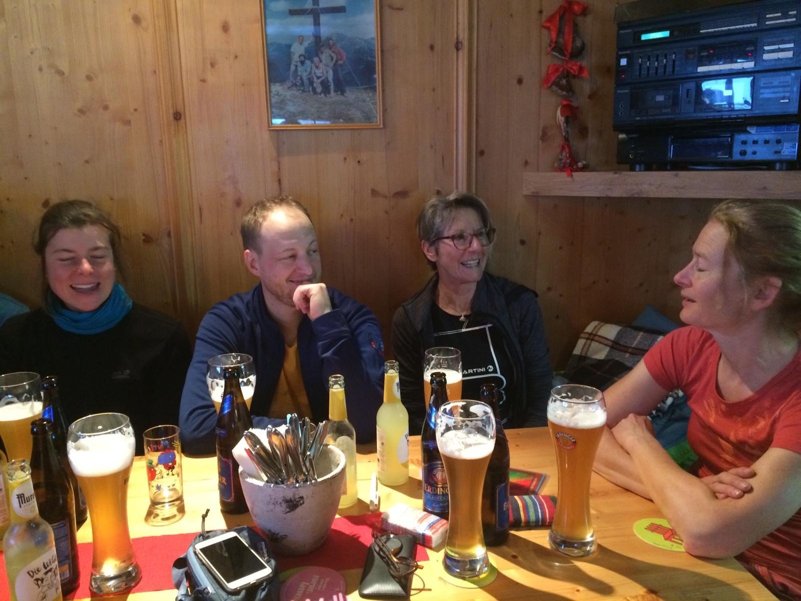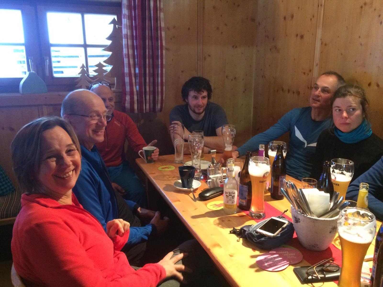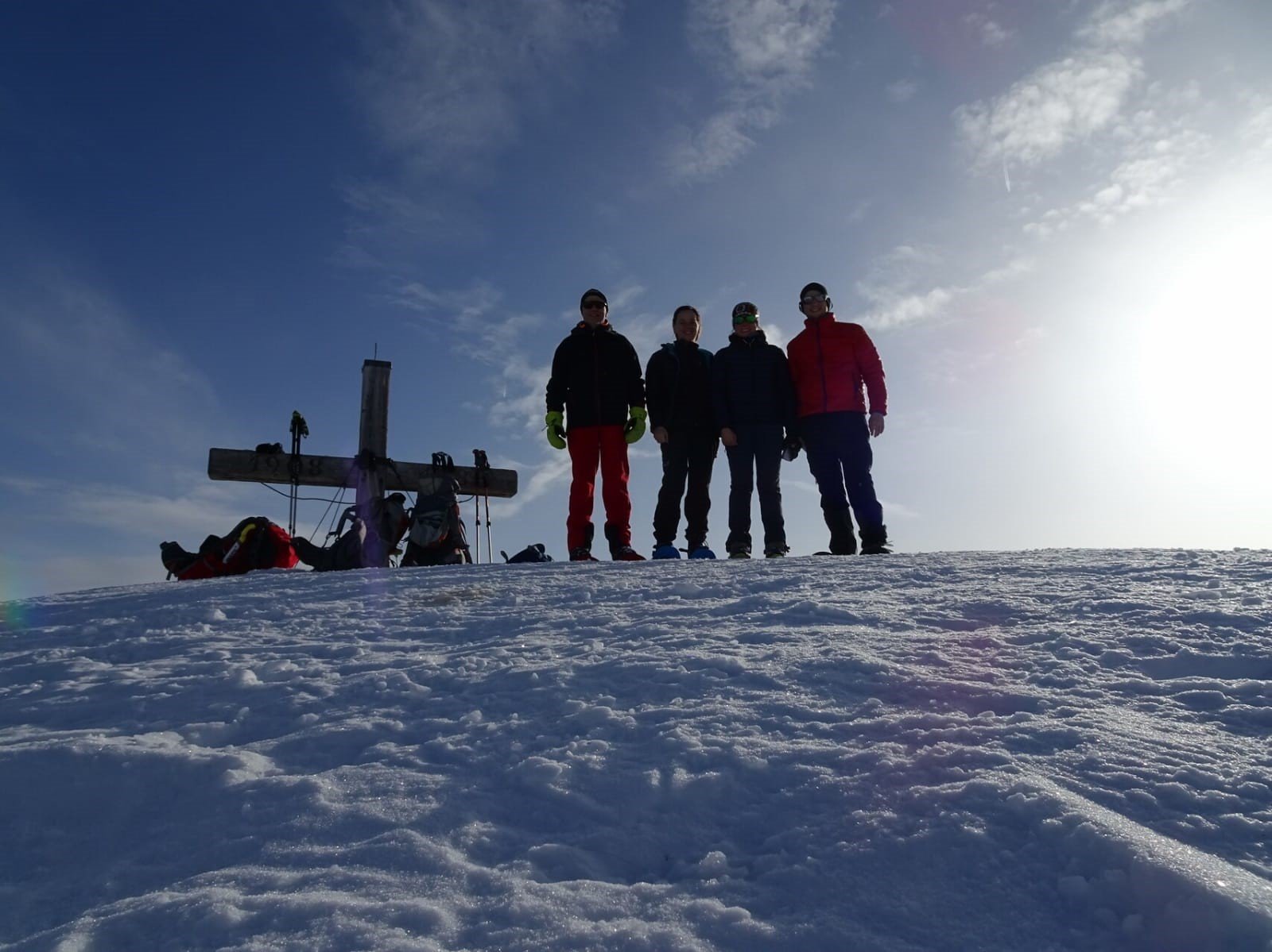 Nach der Übungseinheit wurde dann bei günstiger Lawinenlage (Stufe 1) der Kleine Pleißlingkeil mit seinen 2417m erklommen. Bevor der zweite gemütliche Hüttenabend zu Ende ging wurde in Gruppenarbeit die Planung der Sonntäglichen Tour mit Hilfe von Karte, Lawinenlagebericht und SnowCard ausgearbeitet und so das am Morgen erlernte nochmals vertieft.