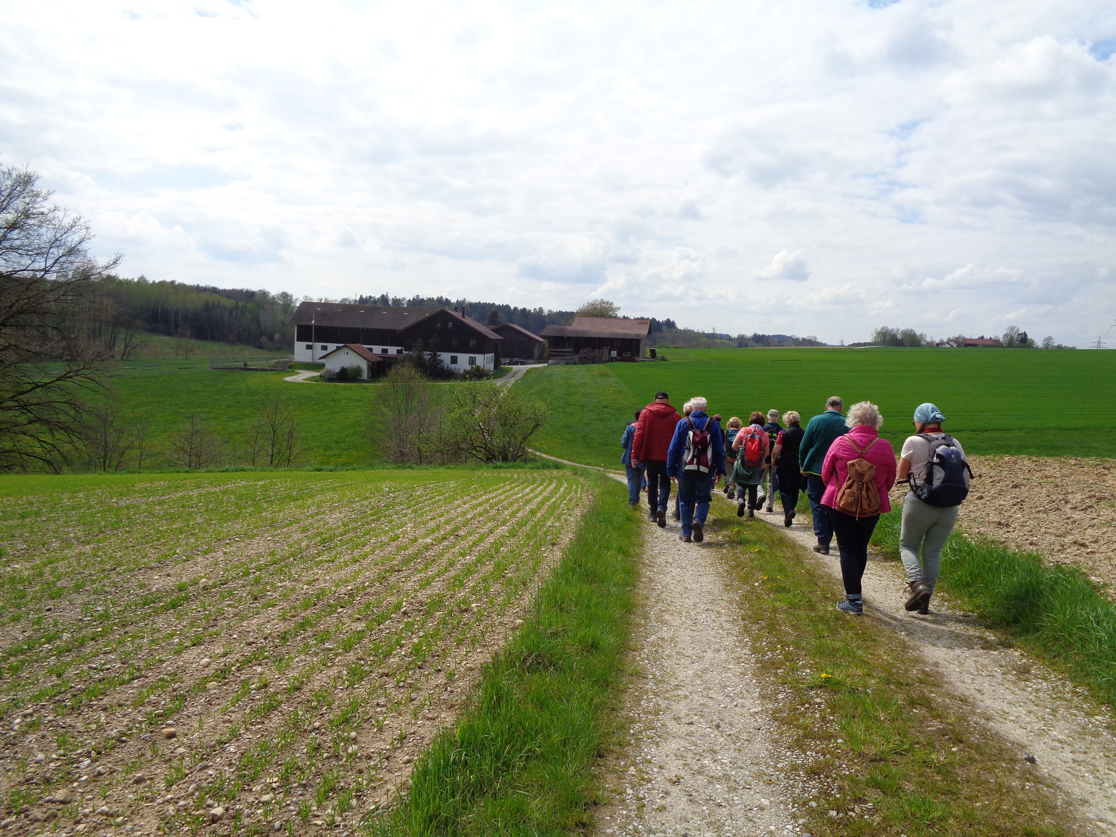 Vom Ausgangspunkt führte die Tour im großen Bogen(12km) um den Fernsehturm.Zuerst wandert die Gruppe durch die Siedlung von Postmünster hinauf nach Baiern was auch gleich zu Beginn der größte Anstieg der Tour war. Weiter ging es bei schöner Natur vorbei an vielen allein stehenden Höfen und Anwesen- Oberwies - Asang -Stapfl-Stegen -Schüßlöd - Weichselöd - Östereich zum Stausee und zurück nach Postmünster wo im Landgasthof Brunnenhof die Wanderung ihren gemütlichen Ausklang fand.