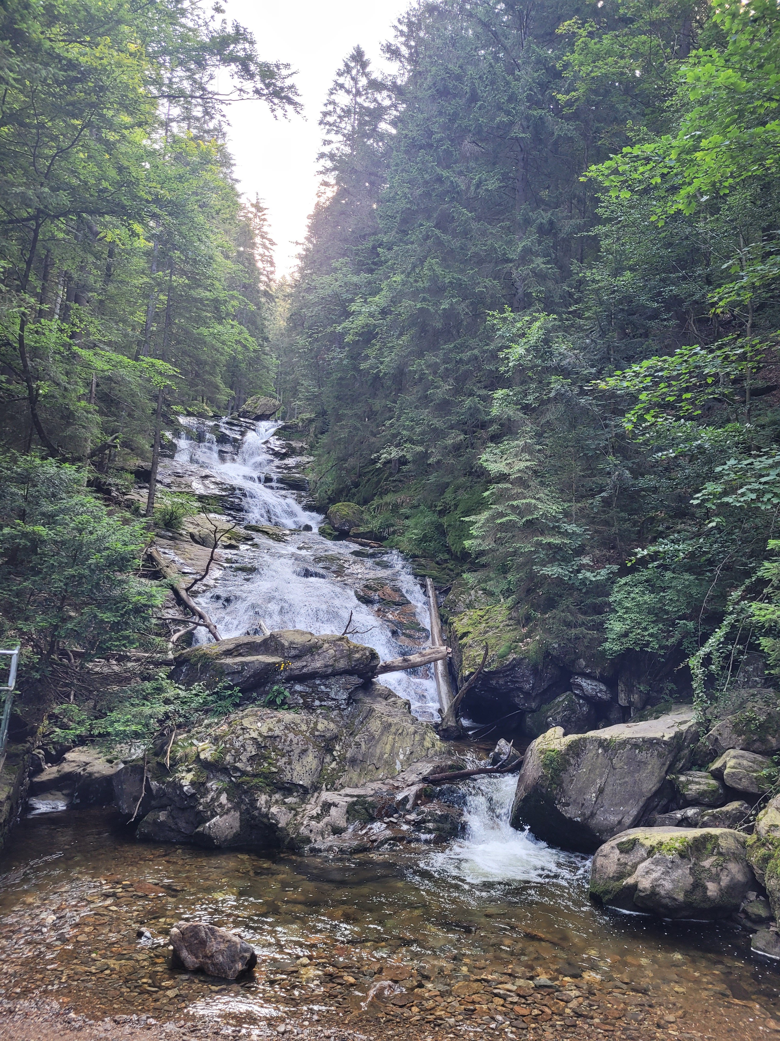 Eindrucksvoll zeigte sich die imposante Risslochschlucht mit den höchsten Wasserfällen des Bayerischen Waldes. Auf einer Länge von 1,6 km überwindet hier der Rissbach, vereint mit Arberbach und Schwellbach, 260 Höhenmeter in mehreren Kaskaden.