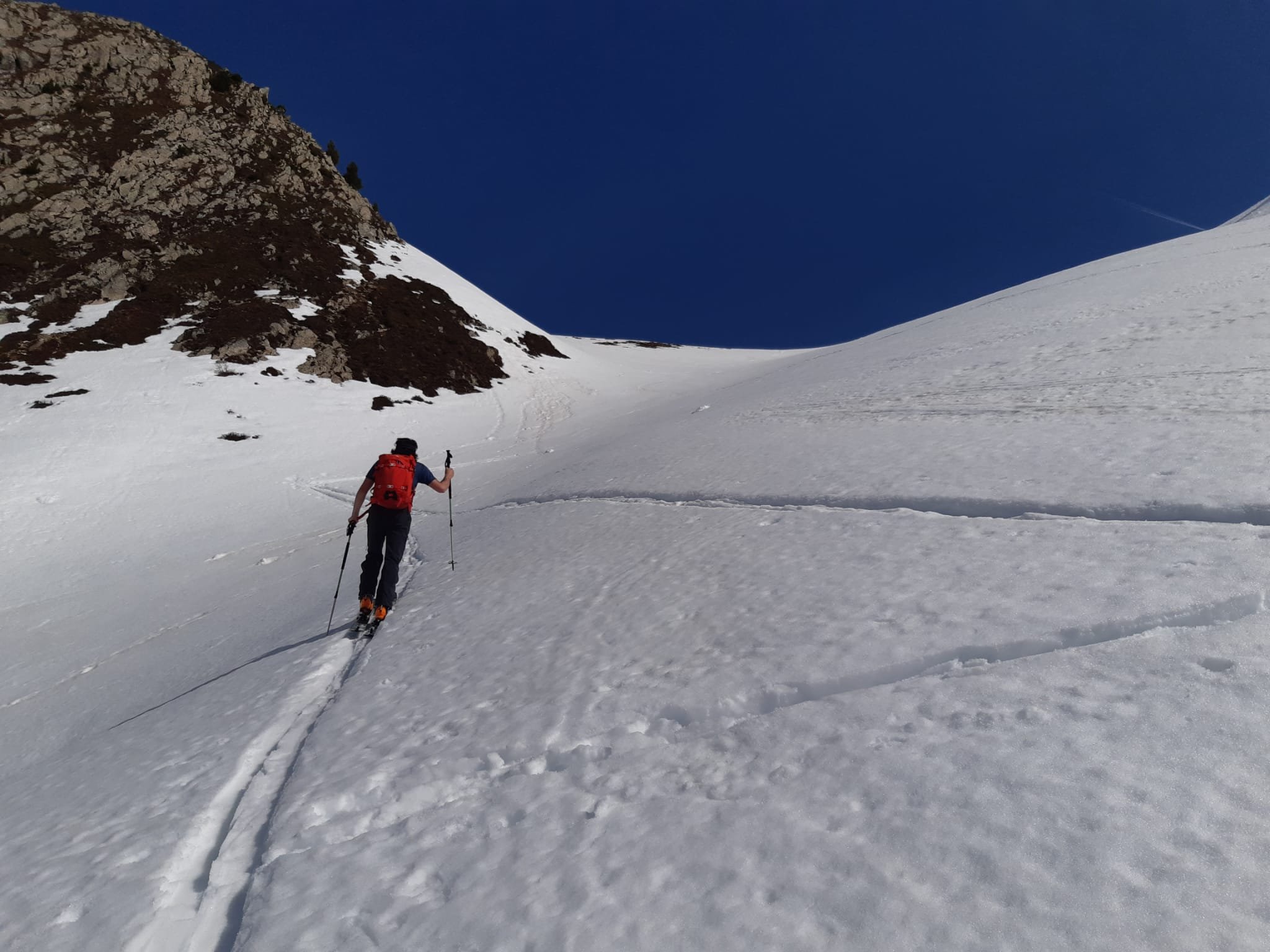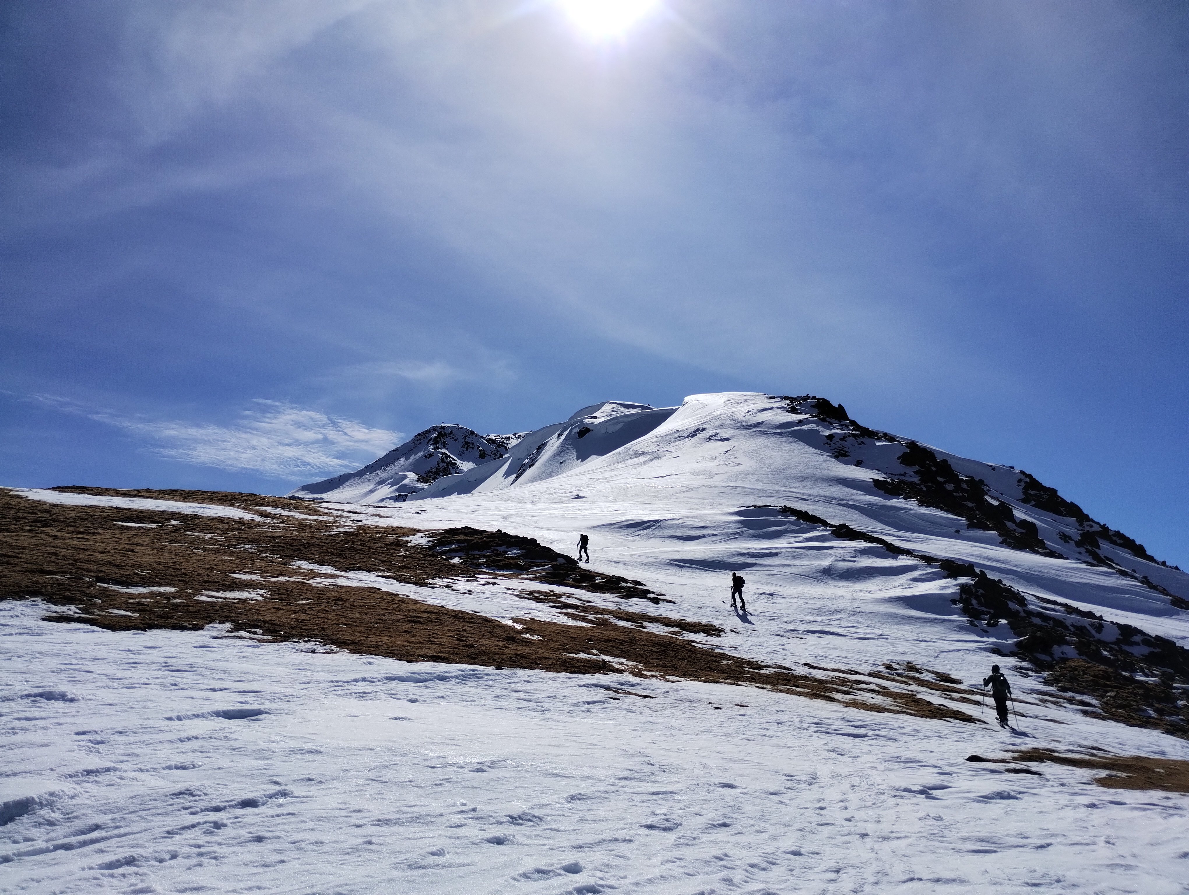 Aufgrund der warmen Temperaturen (Warnstufe 3 in allen Höhen und Expositionen) defensive Tourenplanung.
