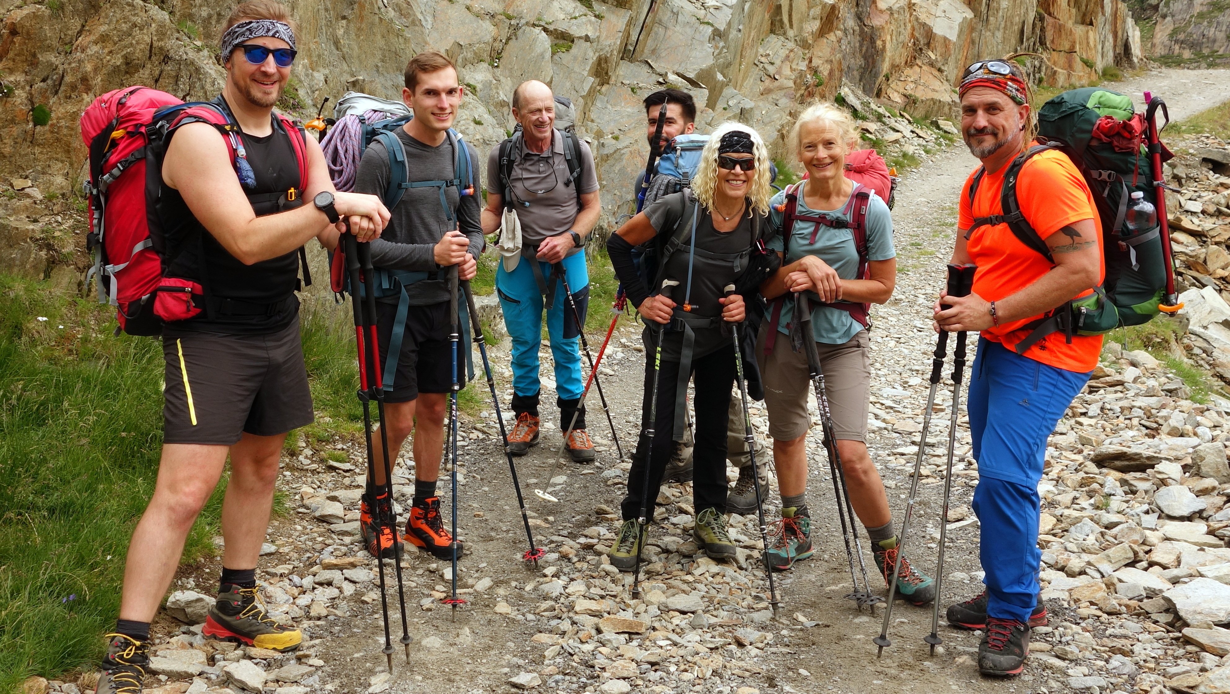 8 Bergsteiger des Pfarrkirchner Alpenvereins fuhren unter der Leitung von Karl-Heinz Hager in die Ötztaler Alpen, nach Vent. Von hier aus stieg die Gruppe in 2 ¼ Stunden auf die Martin-Busch-Hütte (2501m), die für 2 Tage das Basislager war. Am nächsten Tag stieg die Gruppe in 1 3/4 Stunden über die Similaunhütte (3001m) zum Anfang des Niederjochferners, wo die Glescherausrüstung angelegt wurde. Die Gruppe stieg in 2 Seilschaften und über den Gletscher zum Felsaufbau des Similaun. Von hier ging es weitere 250 Höhenmeter ohne Steigeisen und Pickel hinauf zum Gipfel. Hier genossen die Bergsteiger bei einer wunderschönen Aussicht auf die Ötztaler Dreitausender die Gipfelpause, bevor es auf den gleichen Weg wieder hinunter zur Similaunhütte ging. Auf der sonnigen Hüttenterrasse konnte die Aufstiegsroute am Gletscher bei einem Bier eingesehen werden, bevor es wieder hinunter zur Martin-Busch-Hütte ging.