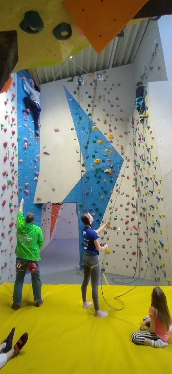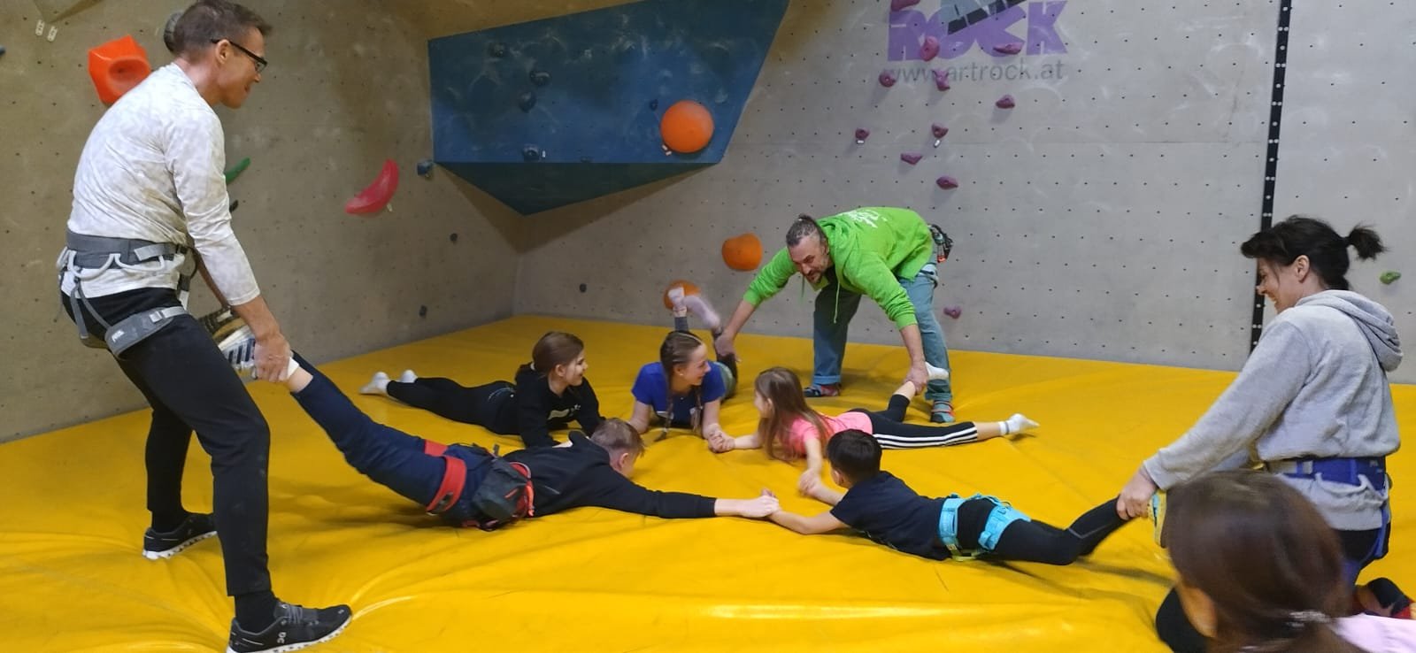 Nach einer Spieleinlage und einer gründlichen Einweisung durch die Kletterbetreuer wurden Boulder- und Top-Rope-Klettereien angeboten. Sowohl die motivierten Teilnehmer als auch die Sicherungsmannschaft hatten an dem kurzweiligen Vormittag viel Spaß. Manche Teilnehmer stellten fest, dass auch Klettern durchaus anstrengend sein kann.
