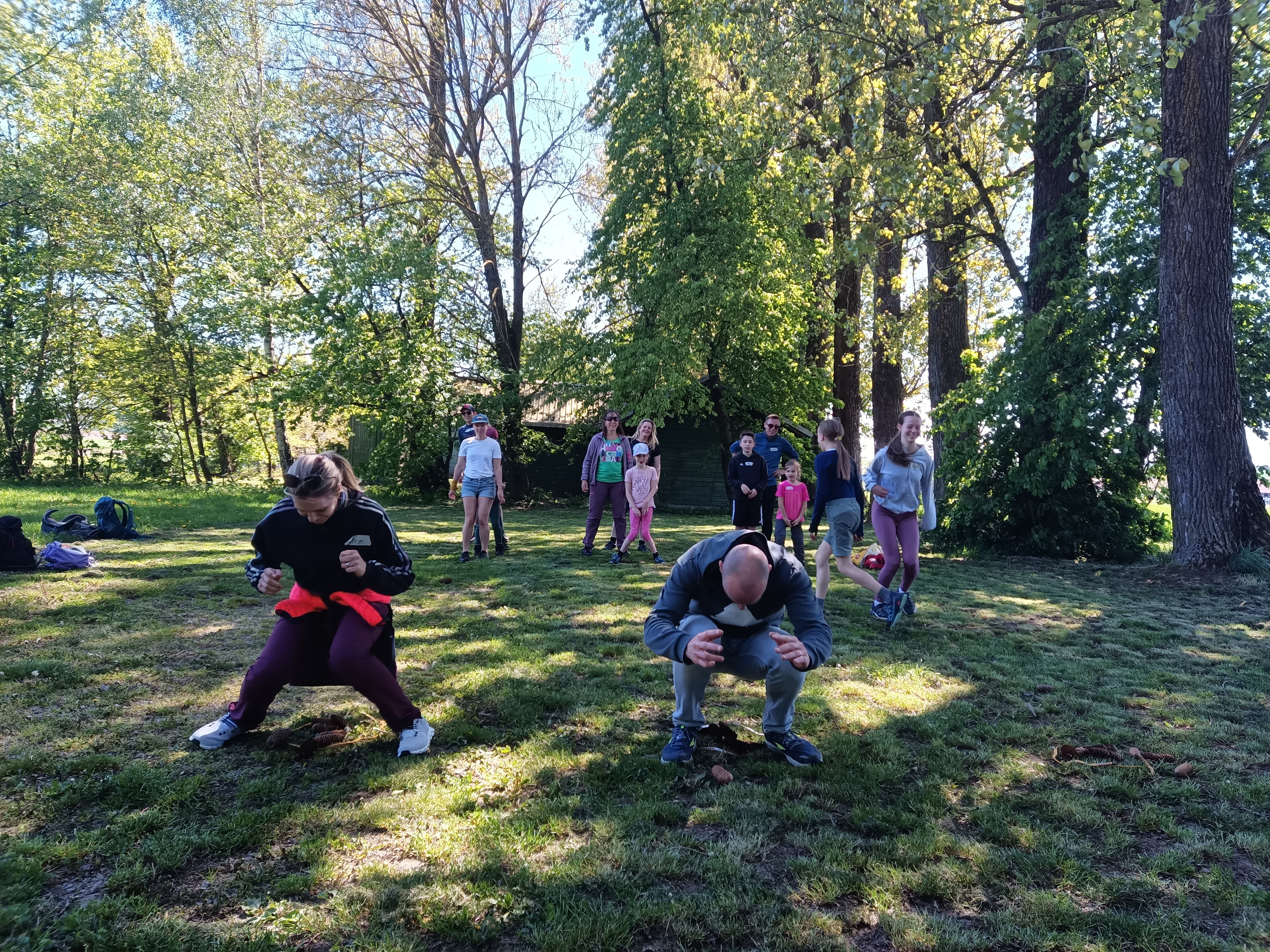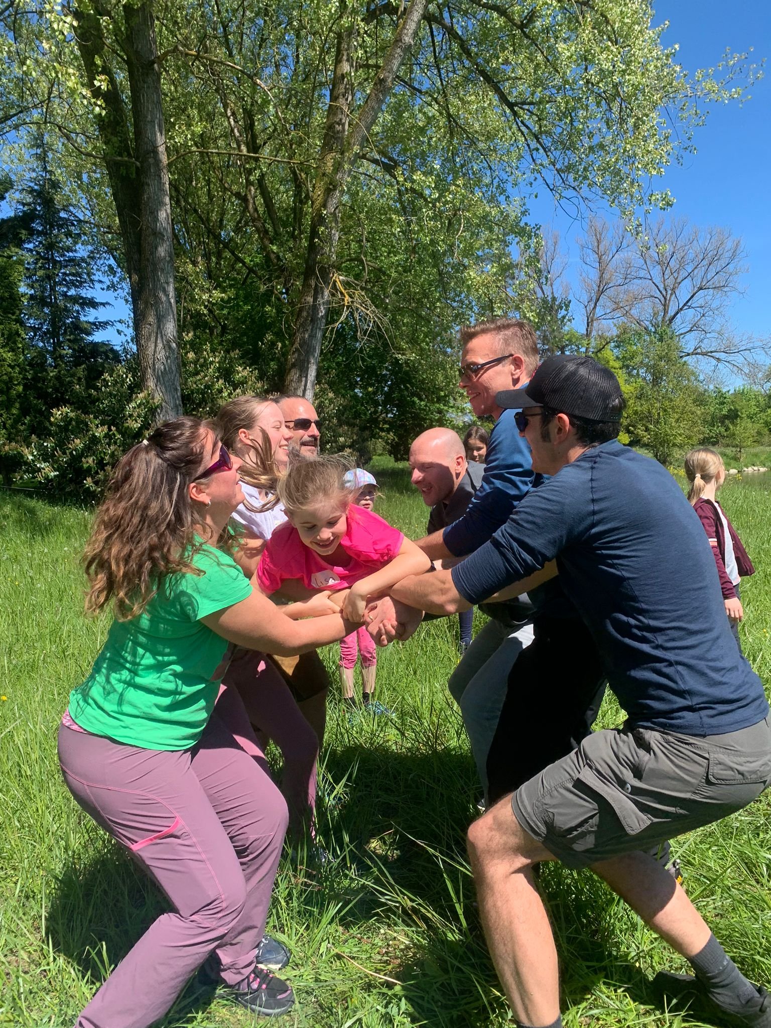 Die altersmäßig bunt gemischten Familien konnten an dem sonnigen Tag Kennenlern- und Bewegungsspiele wie beispielsweise „Magisches Portal“ oder „Kollektive Ohnmacht“ spielen. Man konnte in einer Entspannungsschaukel ausruhen oder auch wild geschaukelt werden. Fühlspiele oder abenteuerliche Rott-Überquerungen waren ebenso geboten wie „Zapfen-Kacken“, ein sehr lustiges Teamspiel. Eine Mittagspause mit gemeinsamen Nachspeisenbuffet, jeder brachte etwas dafür mit, konnte man entspannt in er Wiese liegend genießen. Danach bastelte die Gruppe Schiffchen aus Naturmaterial, welche anschließend die Rott hinunter segelten. Das Feedback der Teilnehmer und der Leiter fiel sehr positiv aus, weil alle jede Menge Spaß hatten und an dem Tag sehr viel erleben konnten.