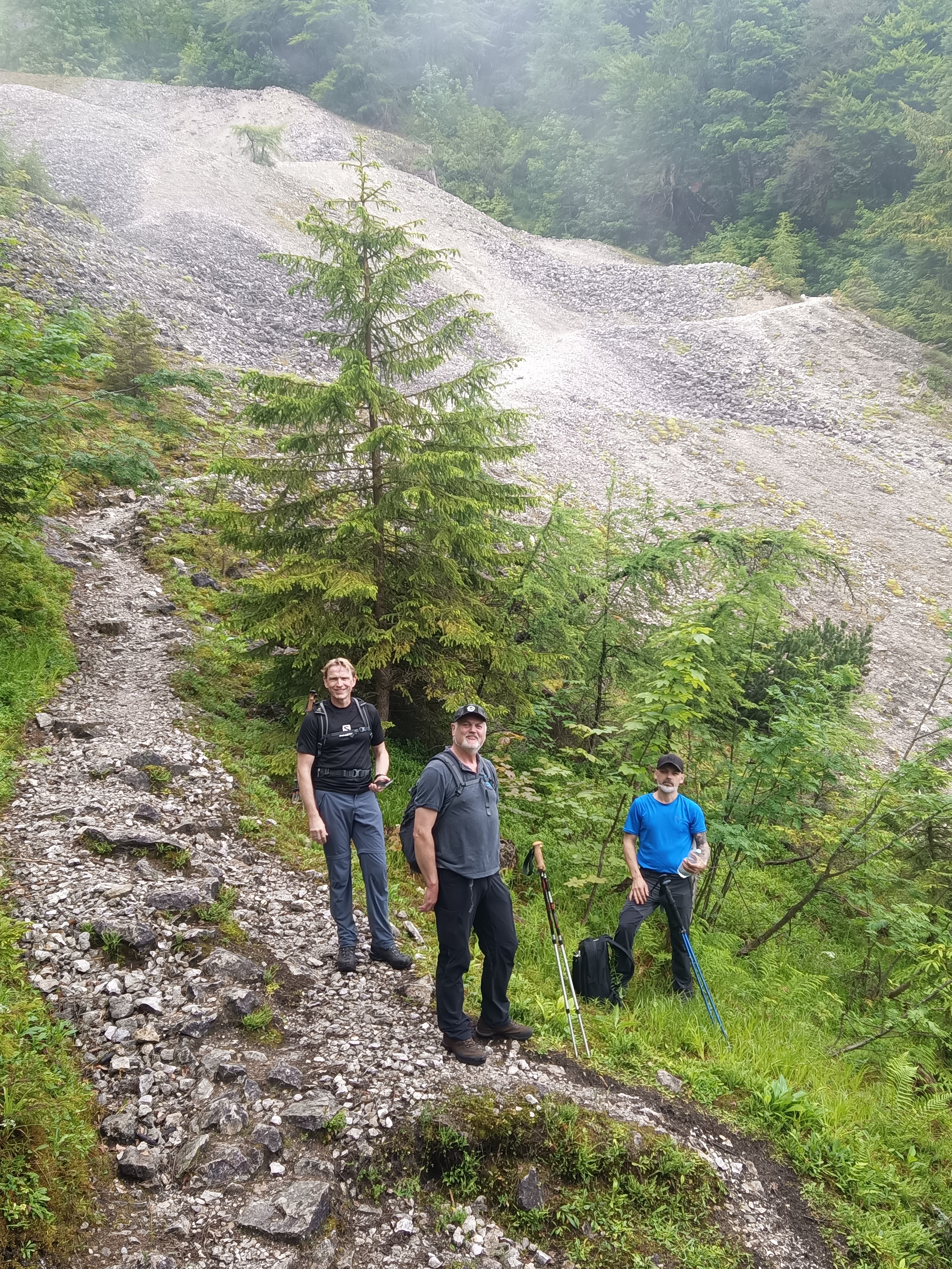 Vom Inzeller Ortsteil Schmelz, der Name kommt daher, da hier 150 Jahre lang das Blei und Zink vom Inzeller Kienberg aufgeschmolzen wurde, stieg die Gruppe unter Führung von Guide Marcus Urban an der hübschen Fahrriesboden-Kapelle vorbei dem Gipfel entgegen. Der Streicher wird durch einen deutlich erkennbaren Sattel zwischen Rauschbergmassiv und Inzeller Kienberg bestiegen. Ein Großteil der Tour verlief über den ehemaligen Knappensteig der aus der Bergbauzeit in diesem Gebirge stammt. Der steile Aufstieg mit über 1000 Höhenmetern wurde die Regenfälle der Vortage nicht leichter, im Gegenteil der Weg bot sogar noch einige rutschige und sehr schmierige Stellen als Herausforderungen für die Gruppe.