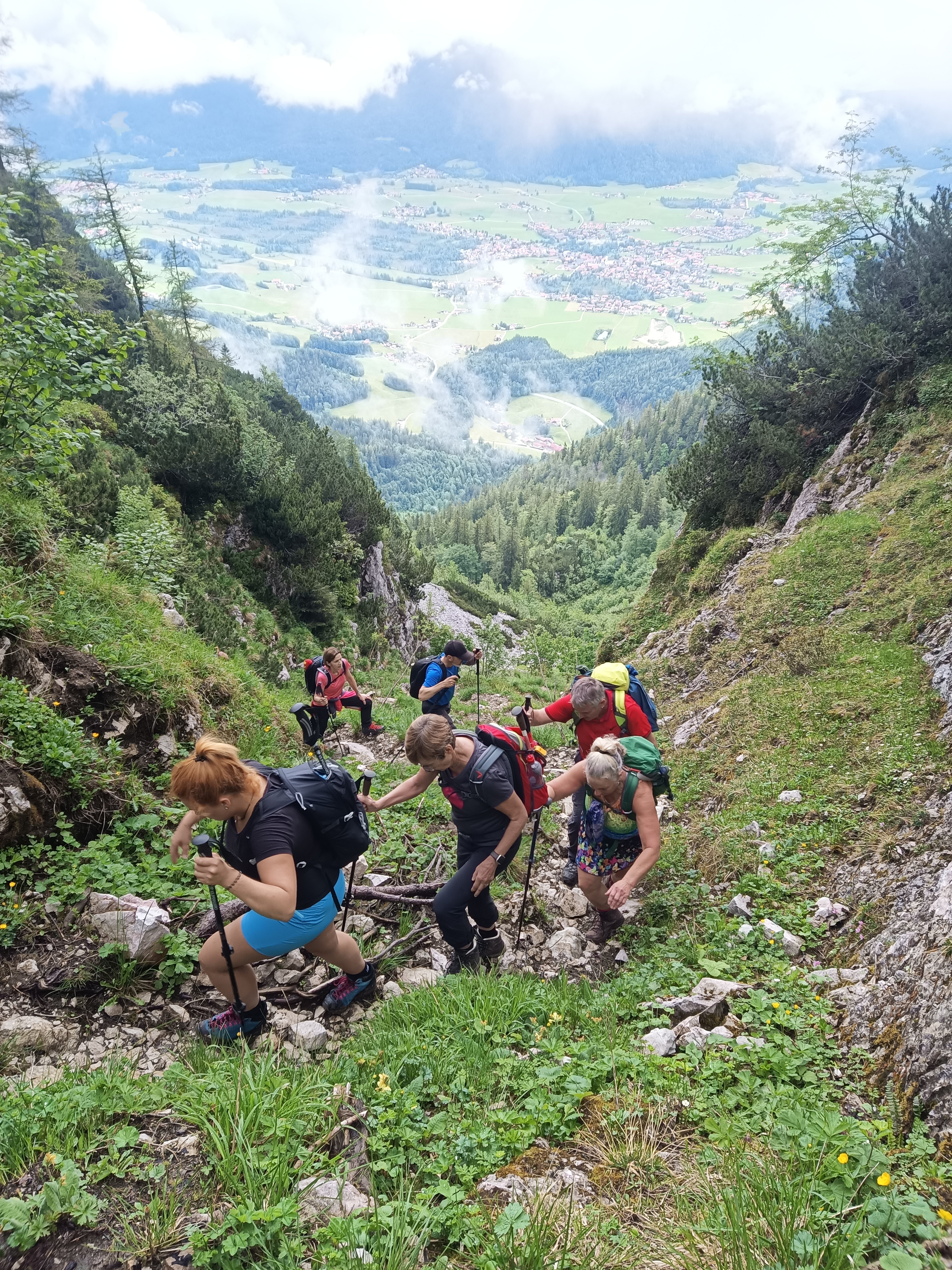 Trotz anhaltendem Regenwetter startete eine neunköpfige Gruppe in die Chiemgauer Alpen um den 1594 Meter hohen Streicher zu besteigen.