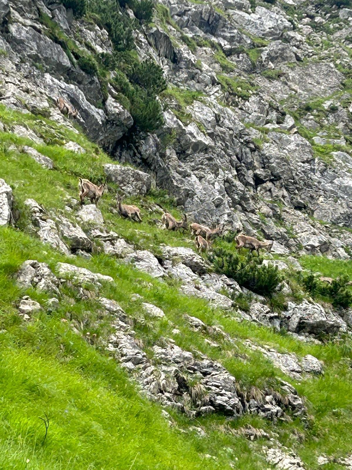 Bei der nachfolgenden Querung traf die Gruppe auf eine große Herde Gämsen samt einigen kleinen Kitzen. Final schwang sich der Weg nun wieder aufwärts zum Oberen Sudelfeld, wo noch eine Einkehr in der Walleralm erfolgte.