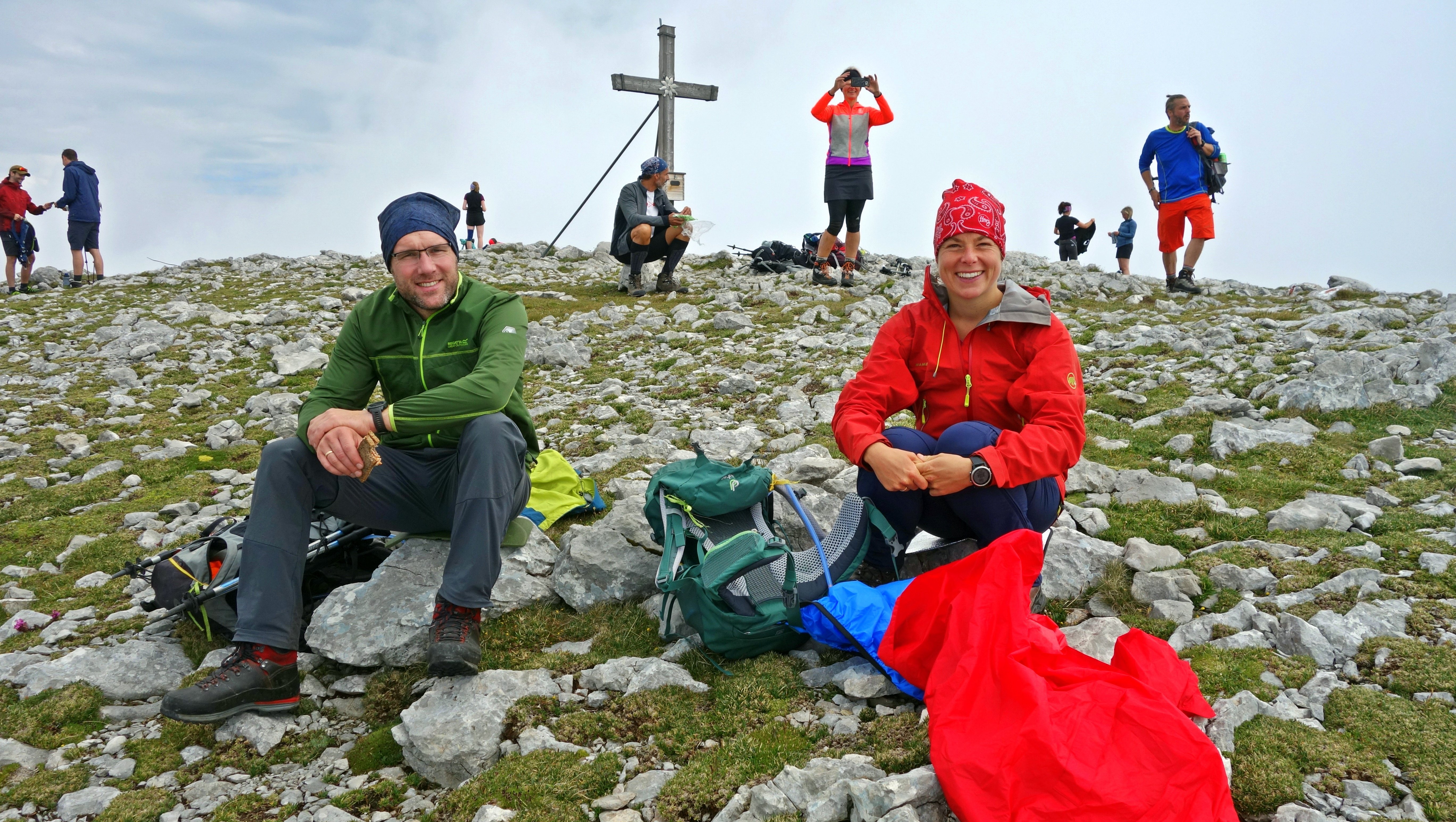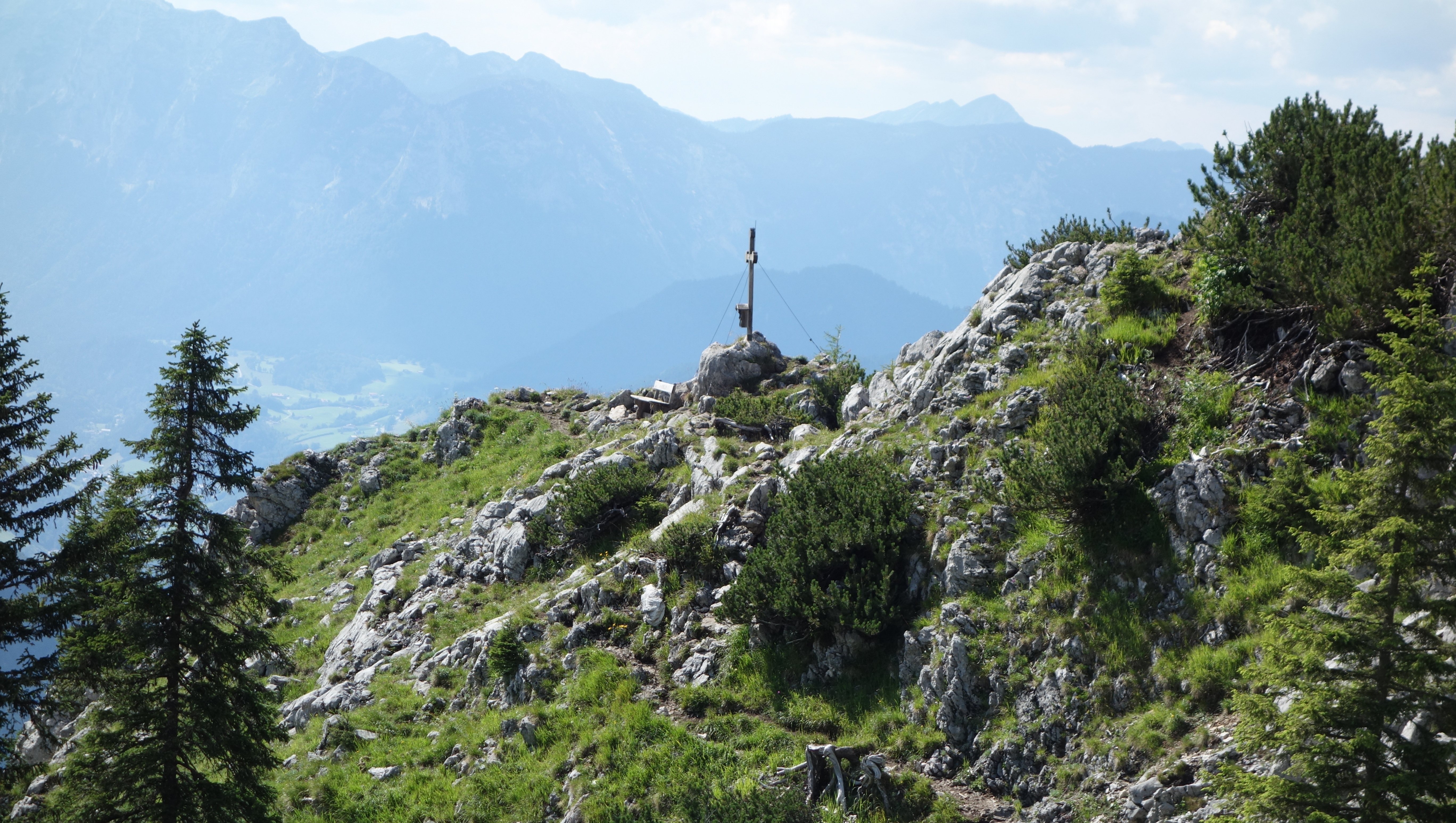 6 Mitglieder der DAV Sektion Pfarrkirchen stiegen unter der Leitung von Karl-Heinz Hager auf den Hoher Göll (2522 m). Der Ausgangspunkt dieser Tour war ein kleiner Parkplatz ein paar Hundert Meter vor dem Großparkplatz Hinterbrand. Von hier führt der Weg in südöstlicher Richtung zunächst steil durch dichten Wald, später am Wandl vorbei, wo Seilversicherungen den Aufstieg erleichtern. Nach der ersten Steilstufe wird der Weg etwas flacher und der Wald wird lichter, geht in Latschenbewuchs über und schnell verschwindet das Grün und geht in eine grauen Karstlandschaft über. Nach ca. 4 Stunden wurde die Göllscharte (ca. 2300m) erreicht. Von hier führt ein gut ausgetretener Steig hinauf zum Kleinen Göll und weiter zum Hoher Göll. Nach einer kurzen Pause stieg die Gruppe wieder hinunter zur Göllscharte. Von hier führt ein Gratweg teilweise mit Seilversicherungen versehen auf der deutsch-österreichischen Grenze entlang über den Brettriedel (2344 m) zu Gipfel des Hohen Brettes (2340 m). Das Wetter ist jetzt besser geworden, so dass die Gipfelpause etwas länger genossen werden konnte. Der Abstieg zum Jägerkreuz führt über gut markiertes felsiges Gelände. Von hier stiegen die Bergsteiger in nordwestlicher Richtung auf einem schmalen Pfad hinunter zur Brettgabel (1805 m) und weiter hinunter zum Parkplatz Hinterbrand. Hier war dann noch volle Konzentration nötig, da der steile Abstieg teilweise sehr rutschig war. Nach 1670 Höhenmeter Auf- und Abstieg und einer Wegstrecke von 17,5 km erreichten alle Teilnehmer dieser Tour nach 9 ¾ Std. Gehzeit den Parkplatz Hinterbrand.