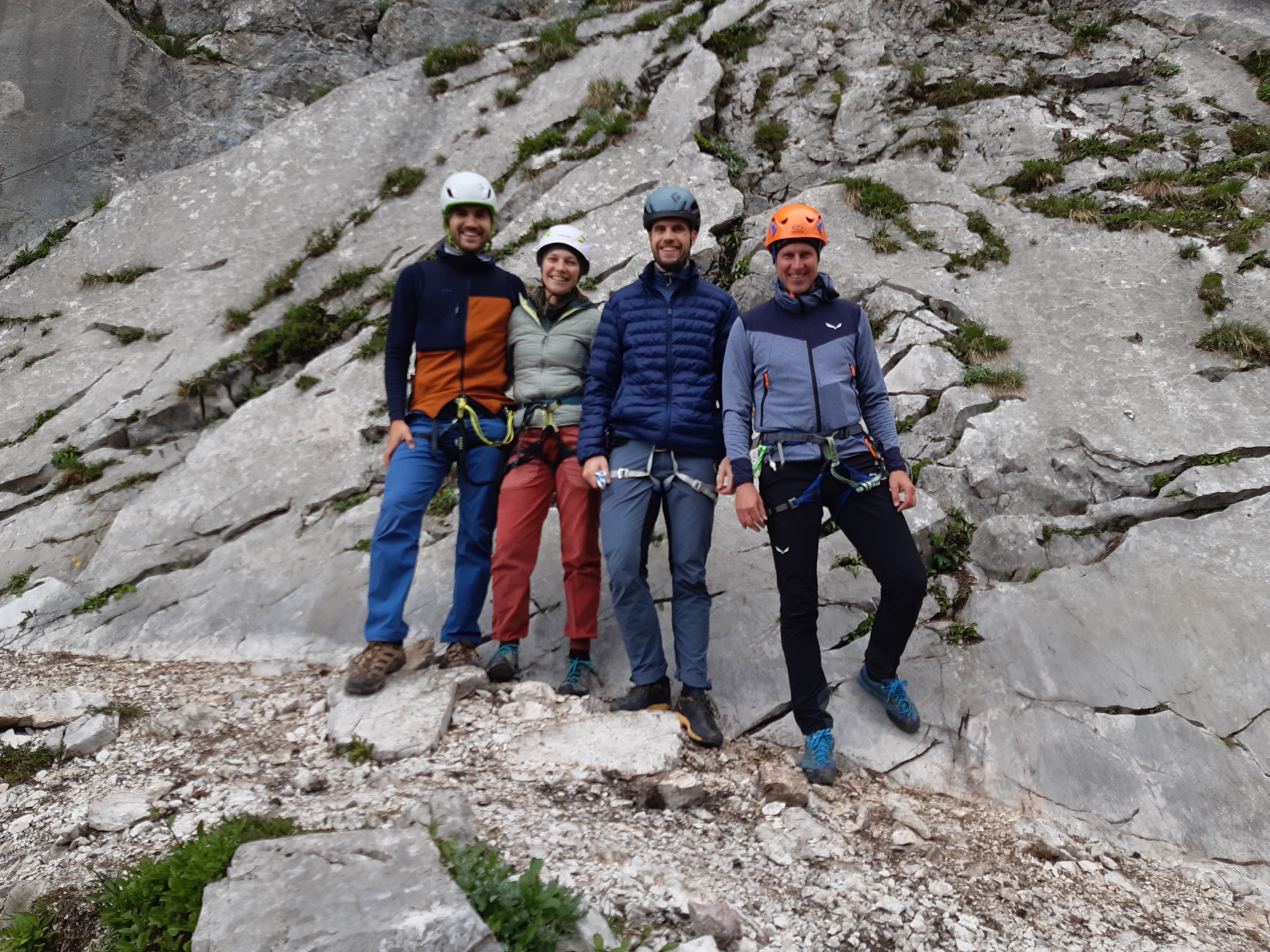 Eine kleine Gruppe der Alpenvereinssektionen Pfarrkirchen und Simbach/Inn hat unter der Leitung von Martin Reitmaier eine Basisausbildung im Alpinklettern in den Berchtesgadener Alpen absolviert. Am ersten Tag erfolgte der Aufstieg zur Blaueishütte. Anschließend wurden theoretische Inhalte, wie z.B. Tourenplanung, Beurteilung von Routen-Topos, Seilkommandos und alpine Gefahren besprochen. Tag zwei stand ganz im Zeichen der praktischen Ausbildung. Insbesondere ging es hierbei um Standplatzbau, die Sicherung des Kletterpartners im Vor- und Nachstieg, Einrichten von Abseilständen sowie das Abseilen in alpinen Routen. Zudem wurden Übungen zur behelfsmäßigen Bergrettung durchgeführt. Am letzten Tag erhielten die Teilnehmer einen Einblick in die Beurteilung und das Anbringen von Fixpunkten im Fels. Abschließend wurde es für alle noch einmal spannend, da sie die wichtigsten erlernten Inhalte in einer einfachen Mehrseillänge anwenden mussten.