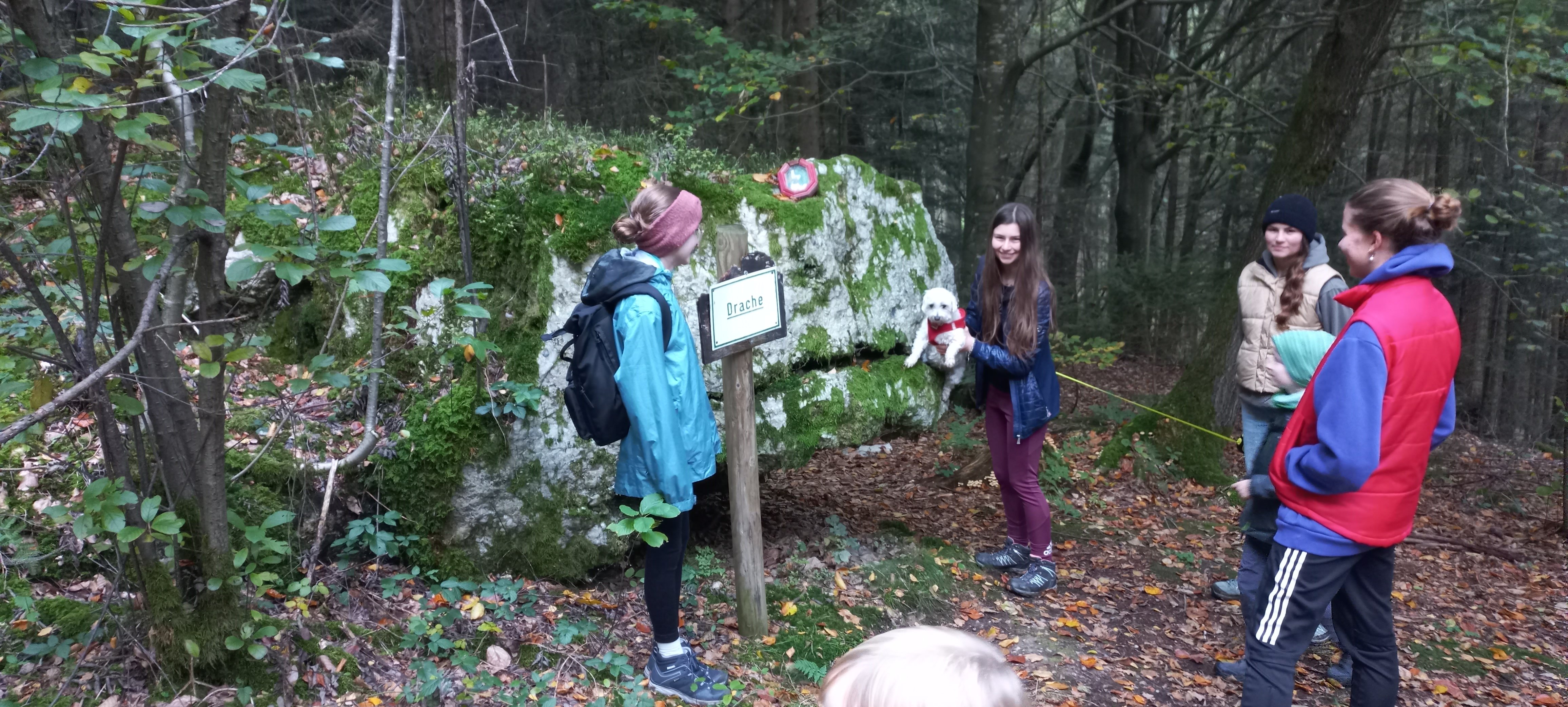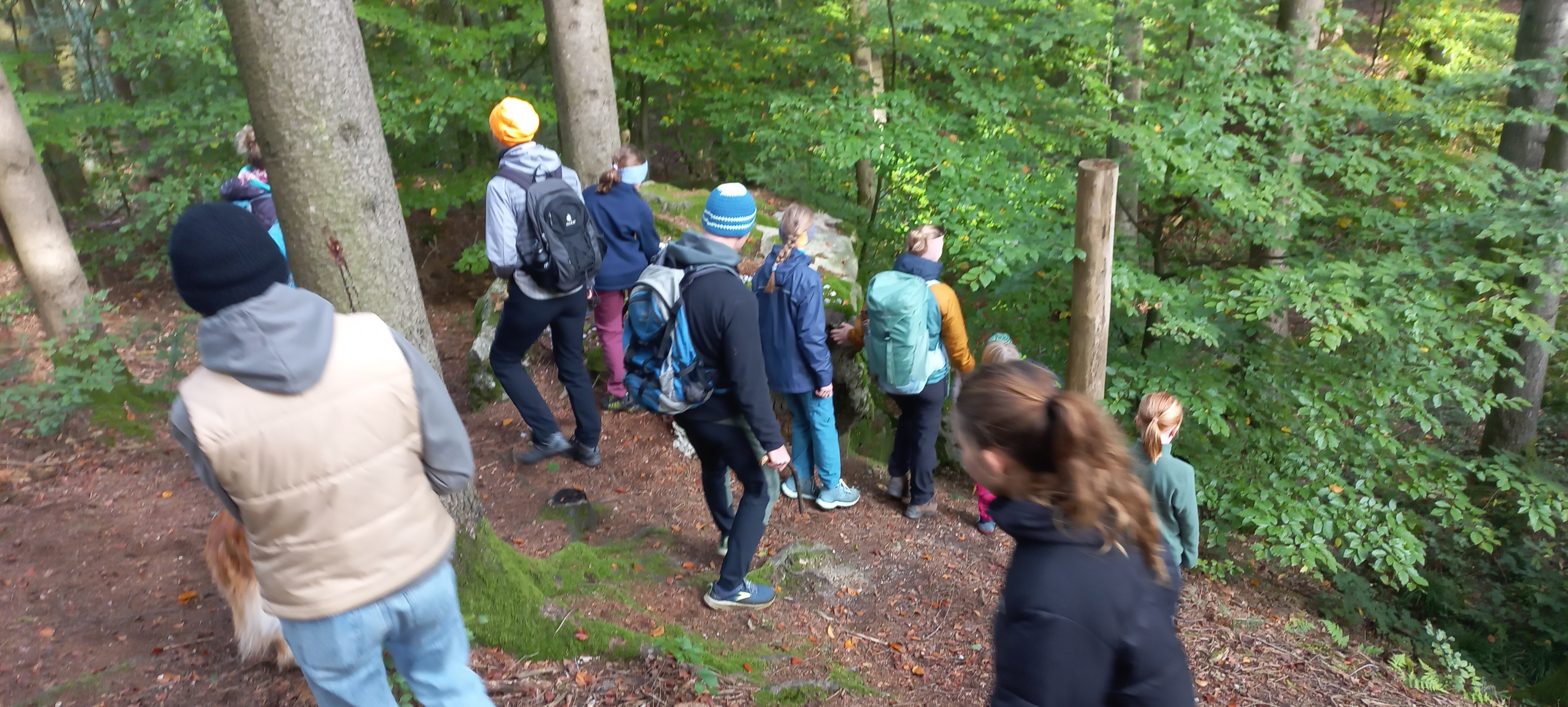 Bei herrlichem Herbstwetter traf sich die Familiengruppe, um gemeinsam eine abeteuerliche Wanderung in die Lugens in der nähe von Bad Birnbach zu unternehmen. Am Wunschbrunnen durften alle Teilnehmer mit Bastbändern geheime Wünsche für die Geister des Waldes an die umstehenden Bäume binden. Weiter gings zur Zwergenburg, wo Groß und Klein der Geschichte des versunkenen Zwergenreichs und seiner Königin lauschten. Auch am Teufelsfelsen gab es eine schaurige Geschichte zu vernehmen. Am "Hohlen Stein" gabs dann eine leckere Brotzeit, Zeit zum Ratschen, Kraxel und sogar Pilze sammeln.Auf dem Rückweg besuchte die Familiengruppe dann auch noch den Drachenfelsen bevor alle gemeinsam in das Vereinsheim fuhren, um bei einem mitbring Buffet und Bilderrückblick die vergangenen Saison in gemütlicher Runde zu beschließen.