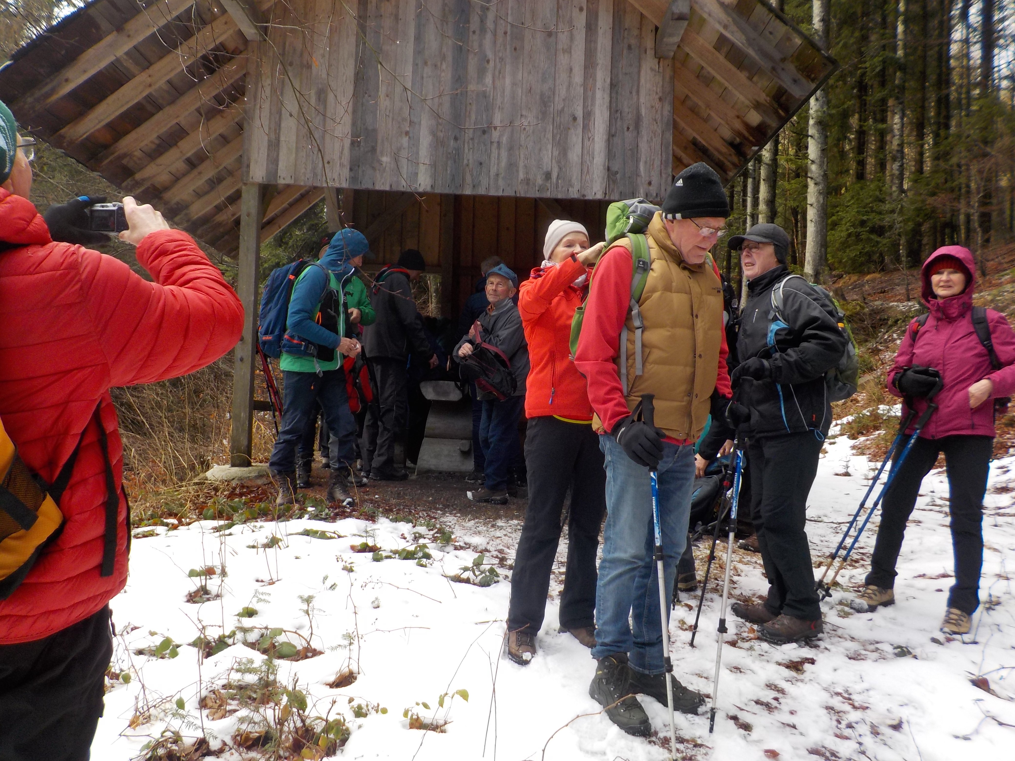 16 Senioren des Alpenvereins mit Tourenleiter Michael Leineweber umrundeten den Brotjacklriegel. Ursprünglich war eine Schneeschuhwanderung geplant, aber innerhalb weniger Tage waren jedoch die 20 cm Neuschnee weitgehend abgetaut. Bei aprilhaften Wetterkapriolen startete die Gruppe von Langfurth aus. Ein Abstecher über Restschneefelder führte zum Gipfel mit Fernseh- und Aussichtsturm sowie dem DU Stein. Letzterer schlägt vor, dass ab 1000 m Höhe bei der Kommunikation in den Bergen dass Sie spätestens durch ein Du ersetzt werden sollte. Nach gut drei Stunden war die Runde bewältigt und klang mit einem gemütlichen Beisammensein in einem Gasthaus in Langfurth aus.