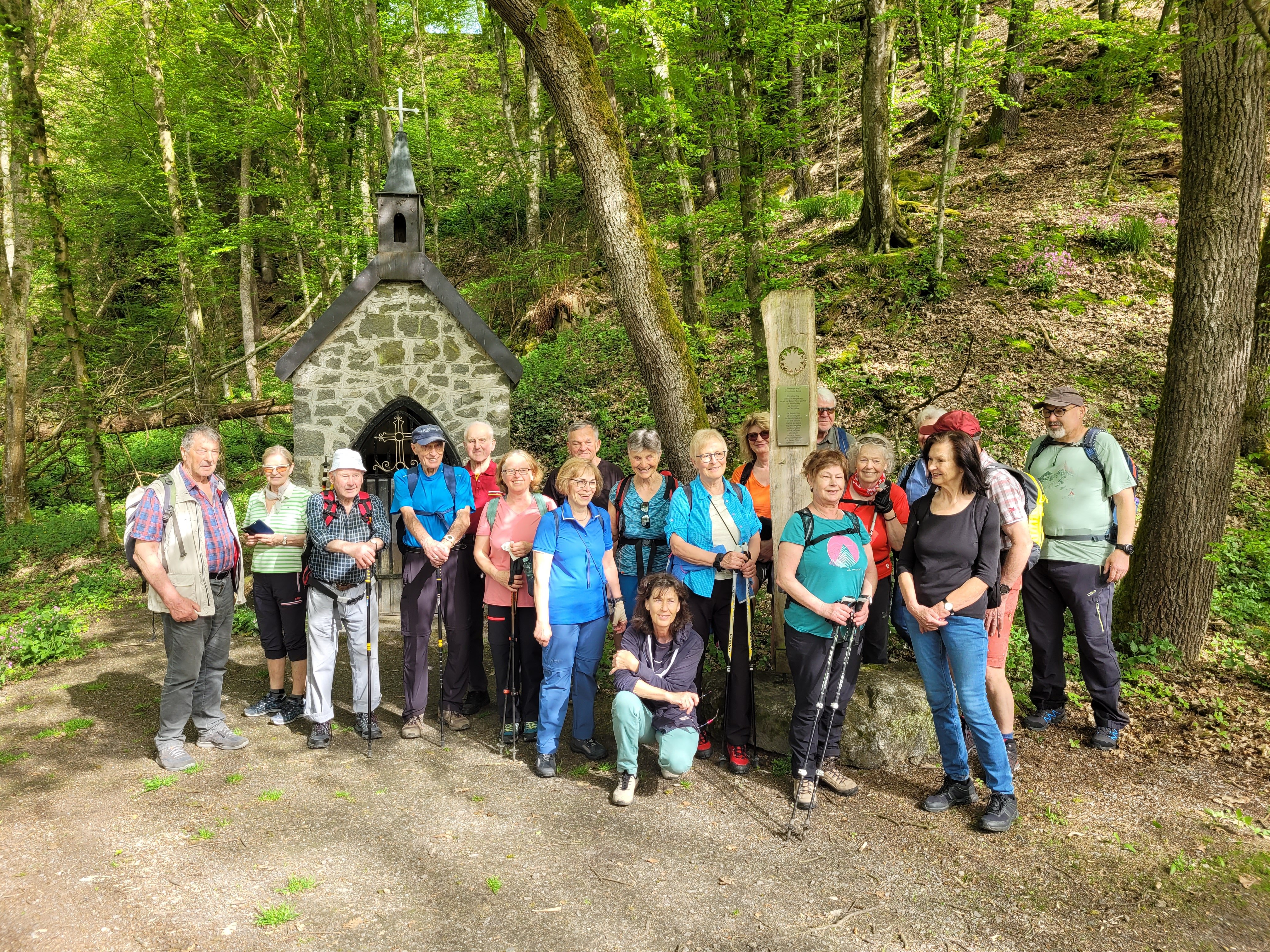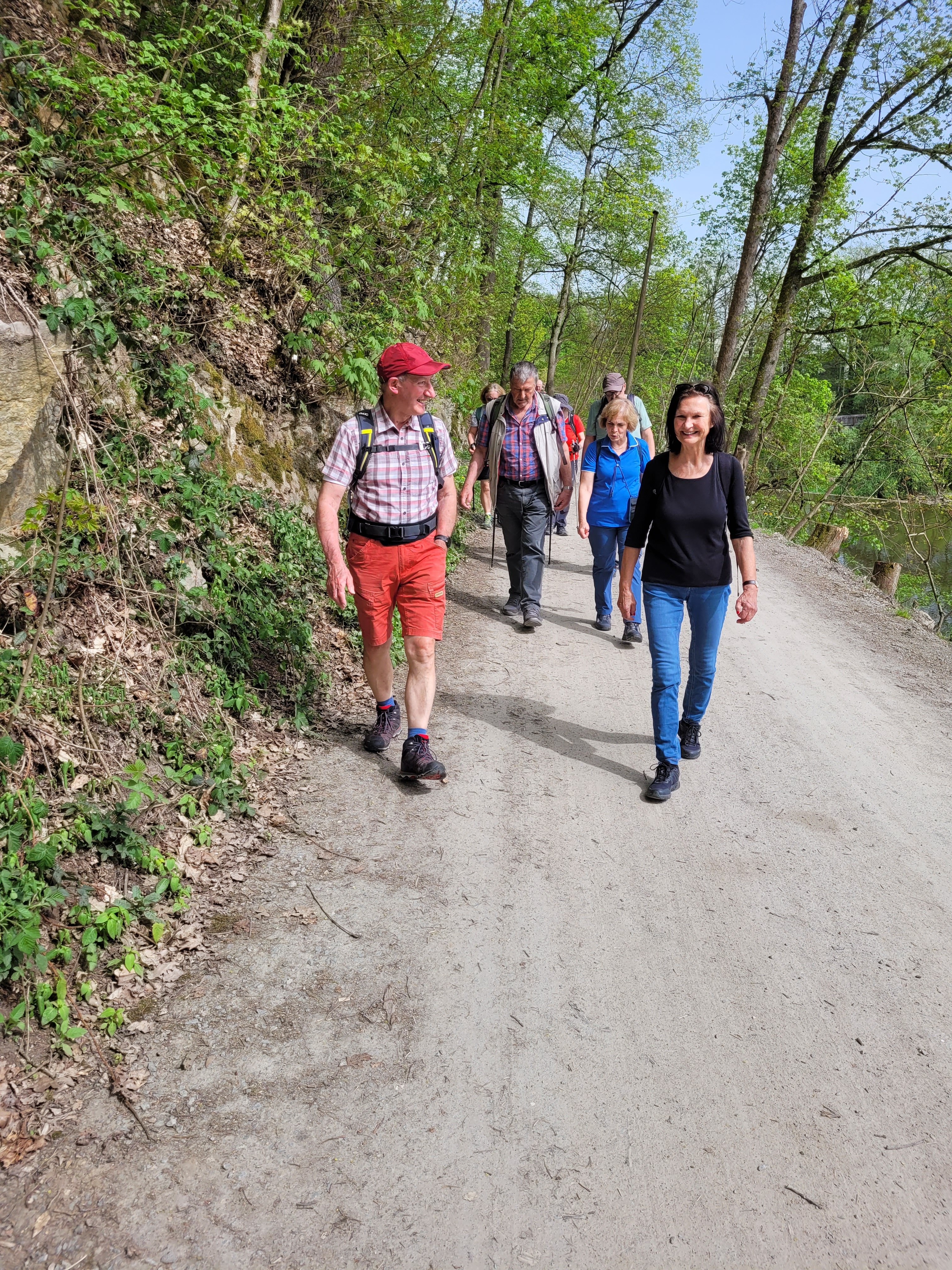 Eine spontane Frühjahrswanderung im Naturschutzgebiet Vils-Engtal unternahmen 20 DAV-Senioren unter der Leitung von Renate Meinhardt. Ausgangspunkt dieser themenreichen Wanderung war der Parkplatz Liessing bei Aunkirchen. Am linken Flussufer entlang, vorbei an blühenden Wiesen und schattigem Auwald fanden sich immer wieder romantische Plätze zum Verweilen und zum Bestaunen der erwachenden Natur. Der abwechslungsreiche Weg führte bald zur Taferl-Kapelle, hier wurde eine Trinkpause eingelegt. Der alte Flurname Taferl bürgerte sich als Begriff für alles ein, was mit dem damaligen Granitabbau im unteren Vilstal zu tun hatte. Nach wenigen Kilometern, vorbei am E-Werk Schlohberg, konnte man schon die markanten Zwiebeltürme der Klosterkirche Schweiklberg erkennen. Nun war es nicht mehr weit bis wir bis über einen kleinen Steig die Benediktinerabtei Schweiklberg erreichten. Durch Pater Prior Richard kamen wir in den Genuss einer interessanten Kirchen-Führung, der im Jugendstil erbauten Klosterkirche. Nach einer kleinen Andacht verabschiedete er sich von uns mit einem Reise- und Wandersegen. Anschließend kehrten wir in der Kloster-Cafeteria ein, wo wir auf der sonnigen Terrasse freien Blick auf die imposanten Klosteranlagen hatten. Zurück gingen wir den selben Weg bis zum E-Werk Schlohberg. Über eine Brücke überquerten wir die Vils und kamen somit auf den interessanten Themenweg. Anhand von vielen Informationstafeln und historischen Fotos entlang des Weges, konnten wir uns über die damalige wirtschaftliche Bedeutung der einst umfangreichen Granitindustrie im unteren Vils-Engtal informieren. Auch einzelne historische Relikte säumten den Flusslauf. Auf einer leichten Anhöhe wurde ein ehemals baufälliges Trafohäuschen zur Barbara-Kapelle umgestaltet. Von hier hatten wir einen herrlichen Blick auf die darunter fließende Vils. Vorbei am Wagner- und Schneider-Bruch kamen wir nun zum etwas versteckt liegenden Taferlsee, einst Kahlhamer-Bruch, der größte, in die Tiefe führende Bruch im gesamten unteren Vilstal. Der idyllisch gelegene See, umgeben von Felsen und bewaldeten Hügeln lud noch zum Verweilen ein, bevor wir die Heimreise antraten.