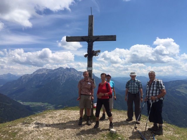 Die Seniorengruppe des Alpenvereins Pfarrkirchen konnte endlich wieder gemeinsam in die Berge zum Wandern aufbrechen. Bei bestem Bergwetter starteten 17 Senioren mit den Touren leitern Karl Mayer und Michael Leineweber zur ersehnten Bergtou auf das Fellhorn in den Chiemgauer Bergen. Vom Wanderparkplatz am Seegatterl (770m) starteten die Teilnehmer getrennt in 2 Gruppen mit den Tourenleitern und auch mit genügend Corona-Abstand über Forstwege und steinige Waldsteige hinauf zur Oberen Hemmersuppenalm (1218m) und weiter durch den Bergwald, vorbei an der felsigen Wand des Eggenalmkogels hinauf zum Sattel der Eggenalm und hinunter zum Straubinger Haus (1551m).Nach drei Stunden Aufstieg mit 880 Höhenmetern wurde dieses erreicht und eine ausgiebige Rast eingelegt. Eine fünfköpfige Gruppe entschloss sich, auch noch das Fellhorn (1764m) zu besteigen. Die anderen Alpinisten genossen die herrliche Aussicht zum Wilden und Zahmen Kaiser, zum Geigelstein und zur Kampenwand und machten eine kleine Runde auf dem Almgelände. Nach der Rückkehr der Gipfelstürmer stiegen die beiden Gruppen wieder hinunter zum Ausgangspunkt. Beim Abstieg konnten die Teilnehmer in einem Almkessel noch das lustige Treiben einer Murmeltierfamilie mit ihren Jungen beobachten.