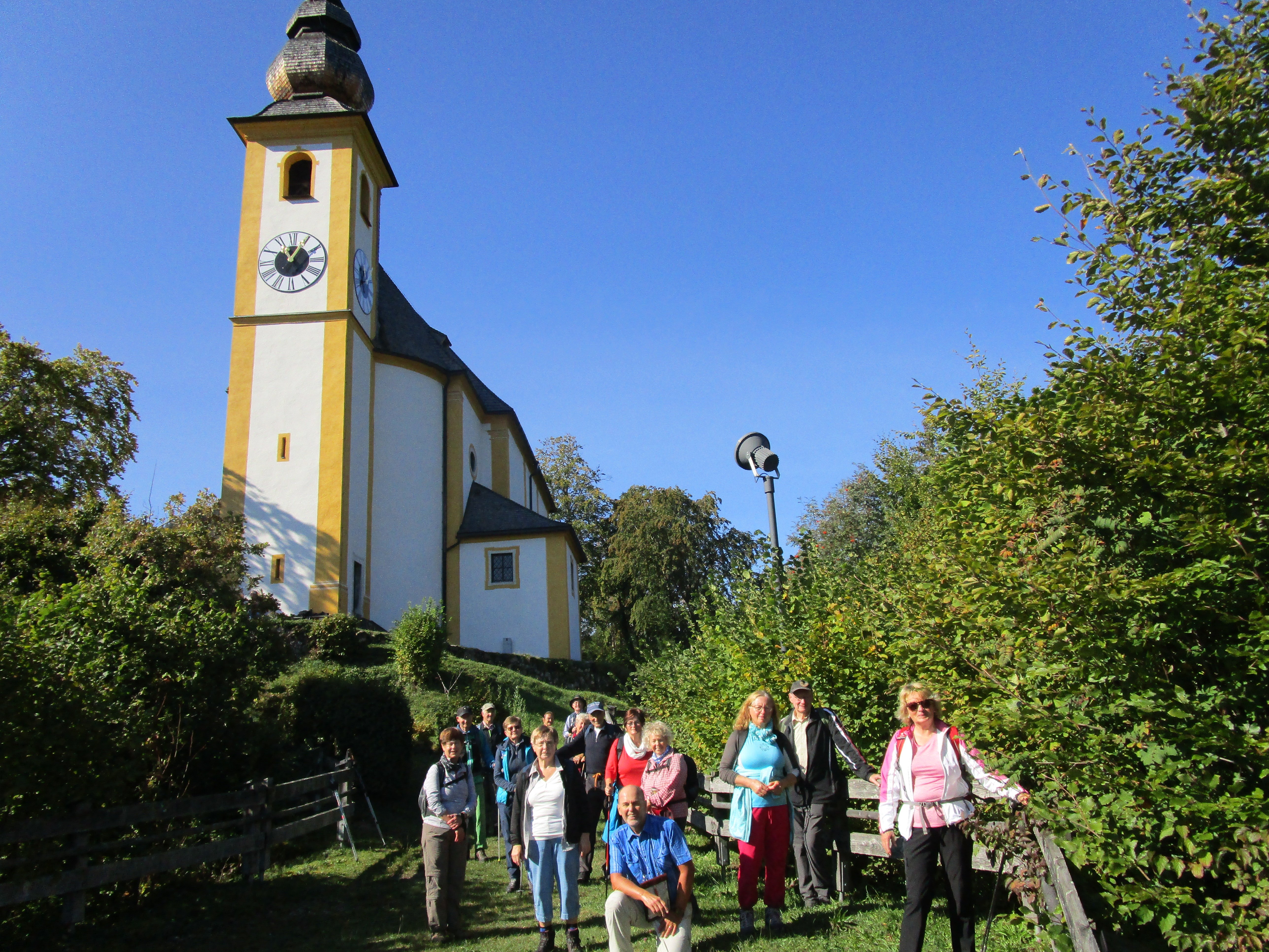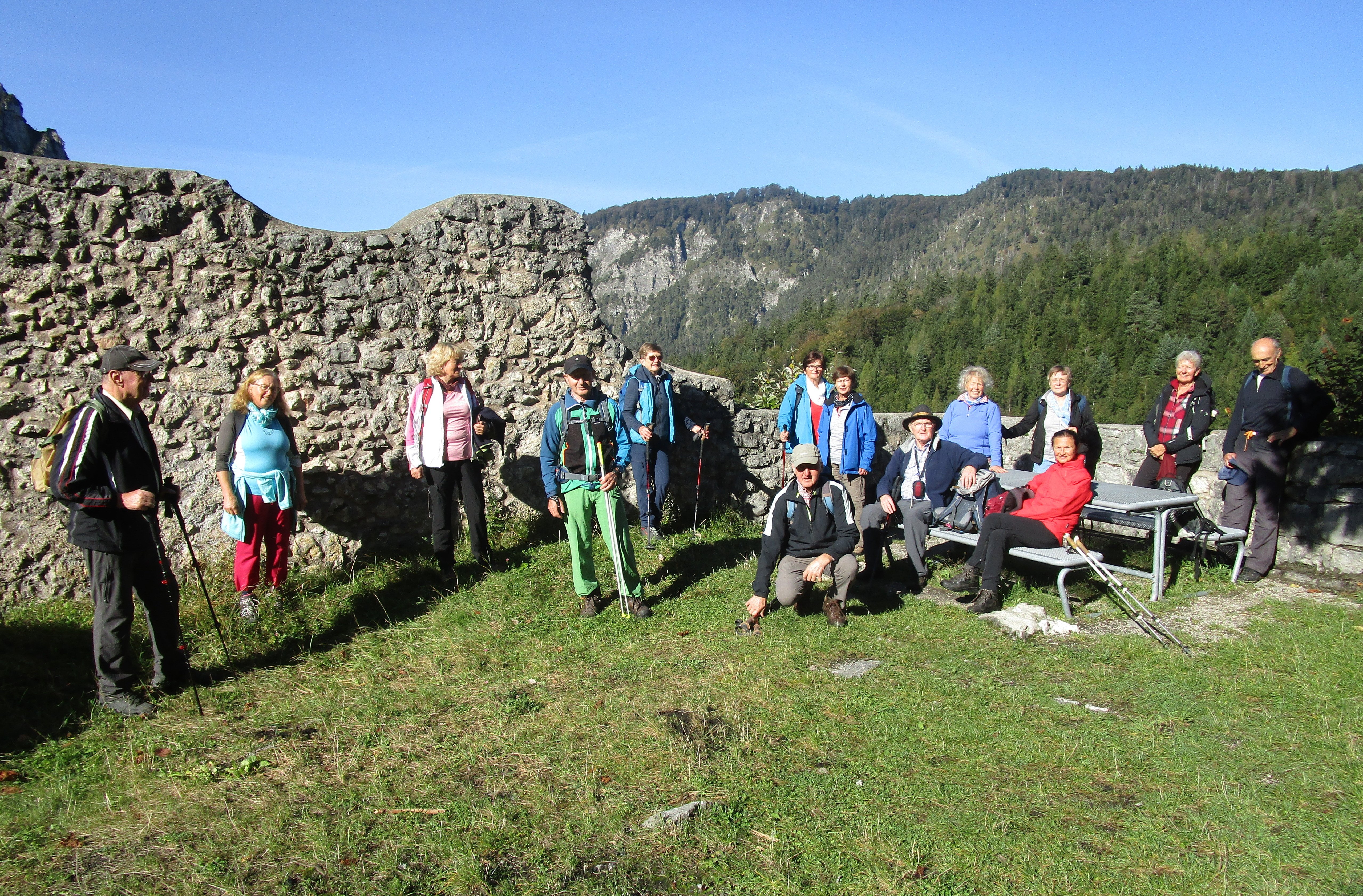15 Senioren der Pfarrkirchener DAV-Sektion machten sich kürzlich auf einen Rundweg vom Thumsee bei Bad Reichenhall zum Listsee. Zunächst wanderte die Gruppe entlang des Thumsees, um anschließend den Pankrazfelsen im Ortsteil Karlstein zu besteigen. Bei der dort oben thronenden Burgruine Karlstein erläuterte Tourenleiter Rainer Blank während einer kleinen Verschnaufpause, dass die Burg ursprünglich zur Überwachung der alten Salzstraße und als Zollstätte errichtet worden war. Ein herrlicher Blick auf den Thumsee sowie Hochstaufen und Zwiesel erfreute die Wanderer. Anschließend nach dem kurzen Abstieg war die Gruppe erneut gefordert auf 264 Stufen hinauf zur Wallfahrtskirche St. Pankraz zu steigen. Die Kirche ist auf dem Pankrazfelsen der Burgruine Karlstein vorgelagert und bietet einen herrlichen Ausblick auf Bad Reichenhall und die umliegende Bergwelt.