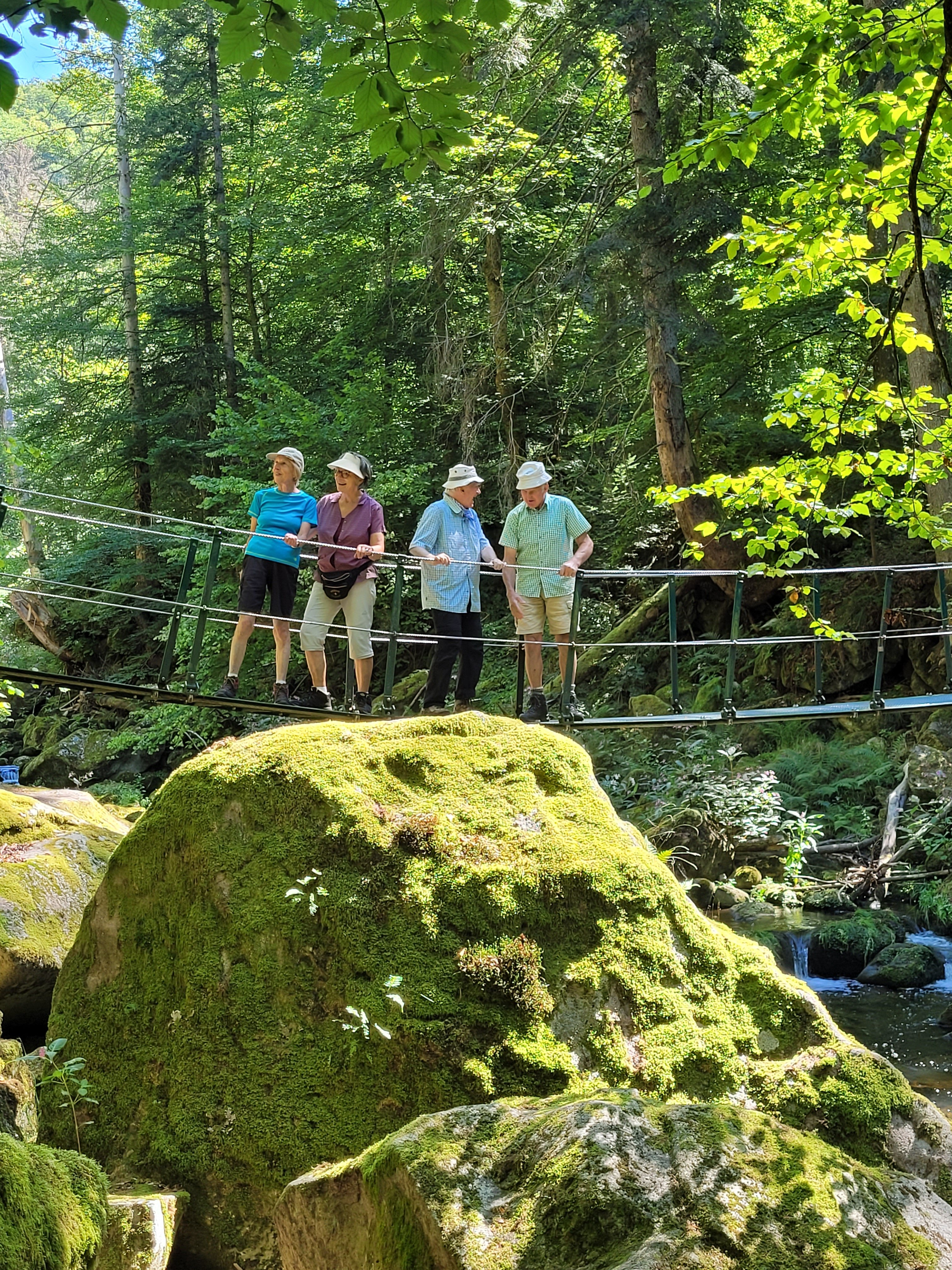 Nicht weit von Ringelai entfernt überquerte man die Wolfsteiner Ohe über eine Hängebrücke. Zwischen moos- und farnreichen Felsen wurde hier eine ausgiebige Rast gehalten. Danach wanderte die Gruppe wieder den selben Weg zurück zum Parkplatz.