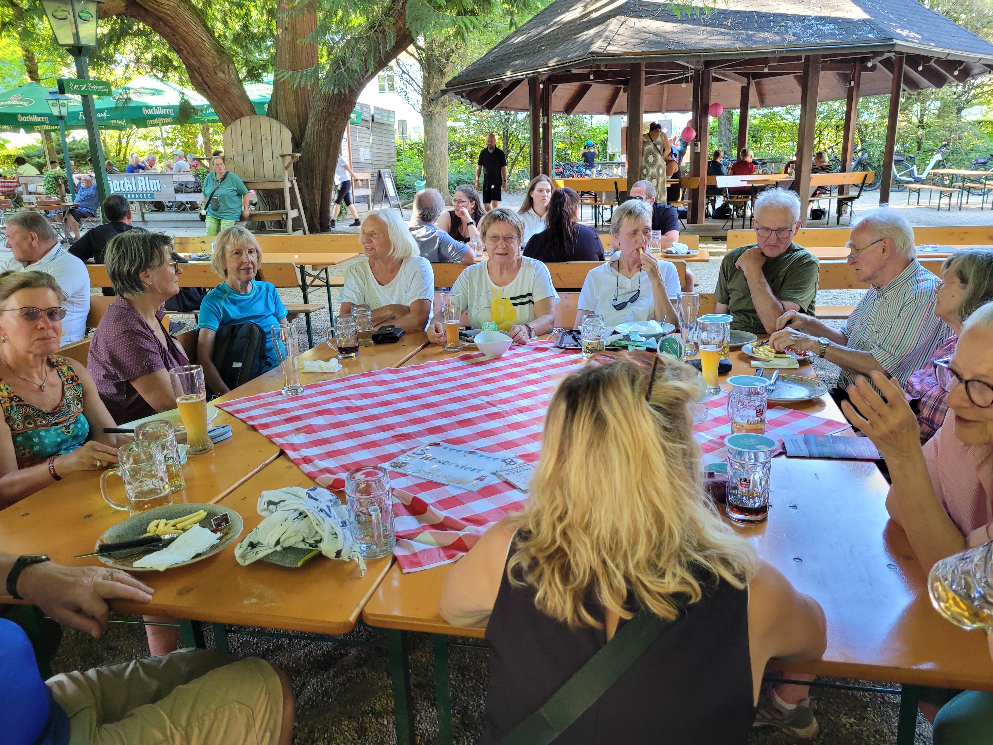 Auf der Heimfahrt über Passau wurde noch im Hacklberger Biergarten eingekehrt, wo die Senioren gutgelaunt die Wanderung ausklingen ließen.