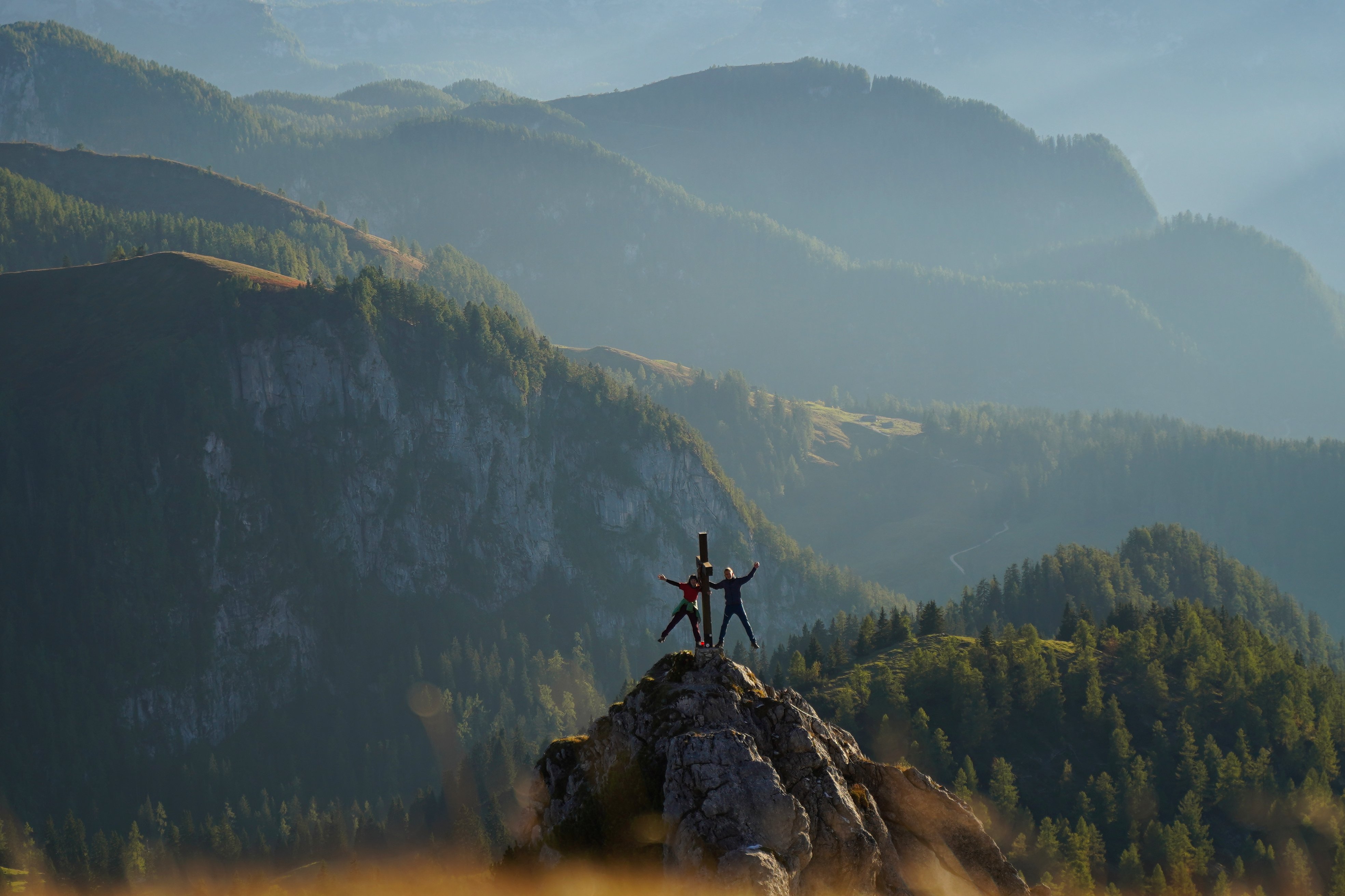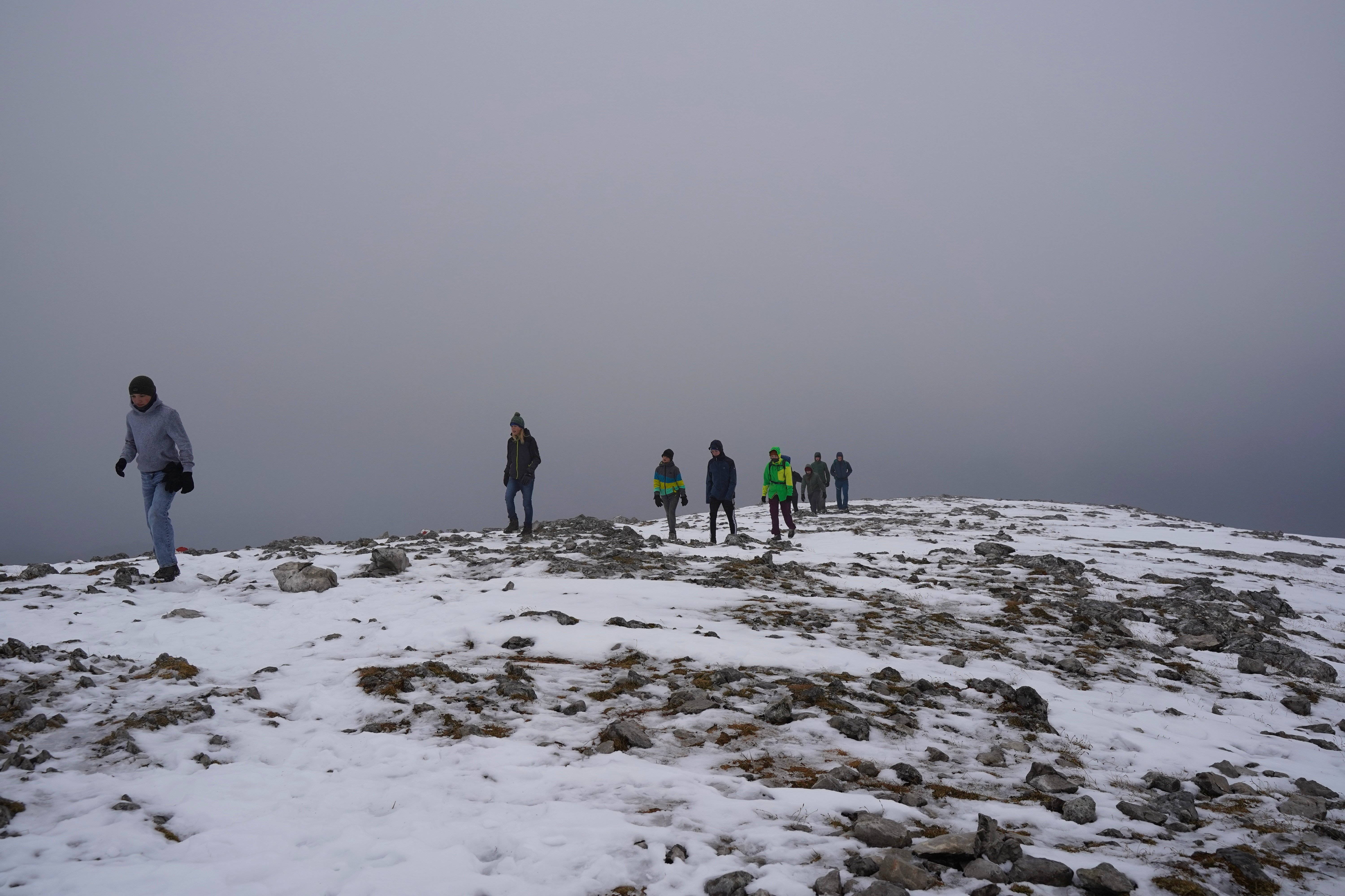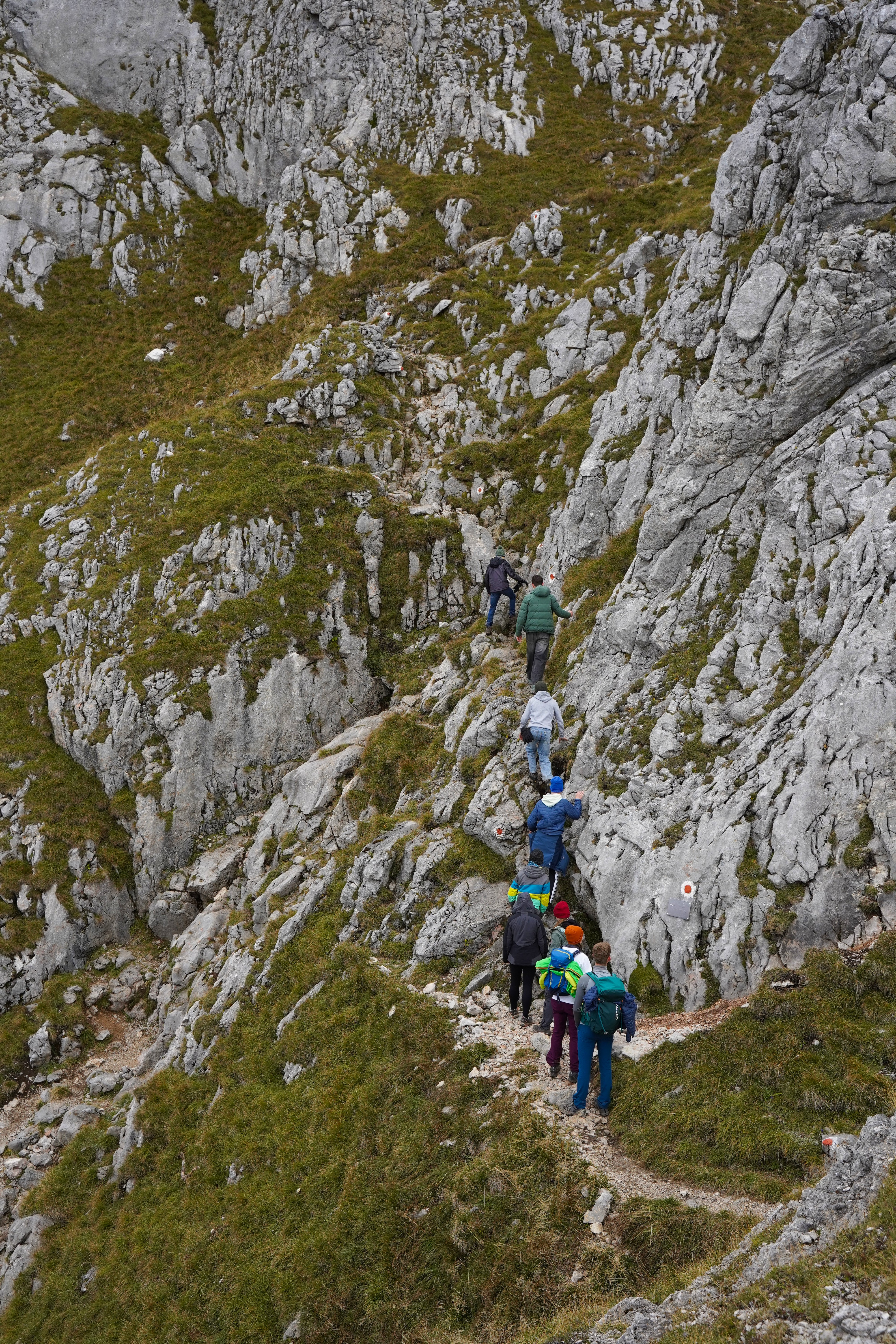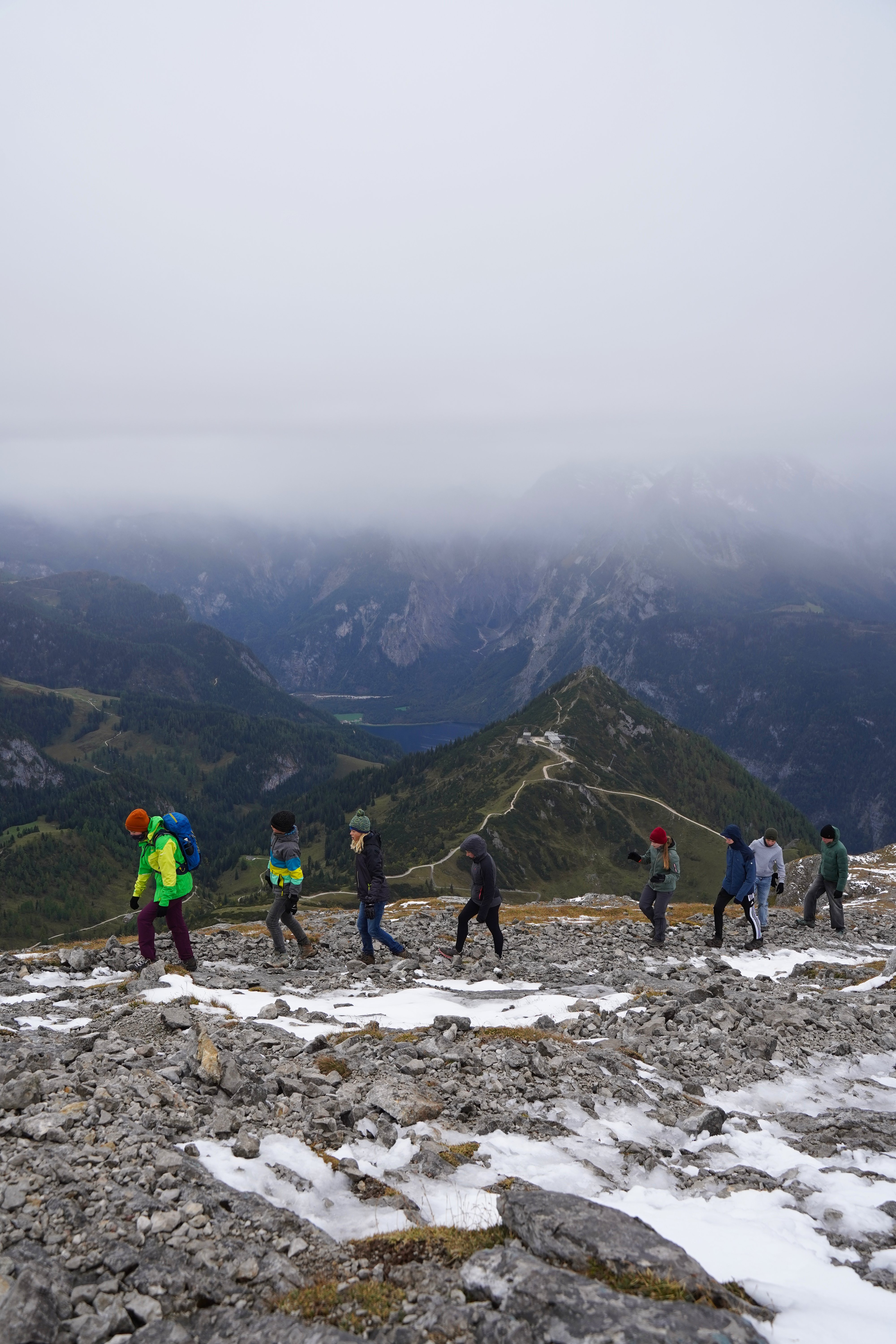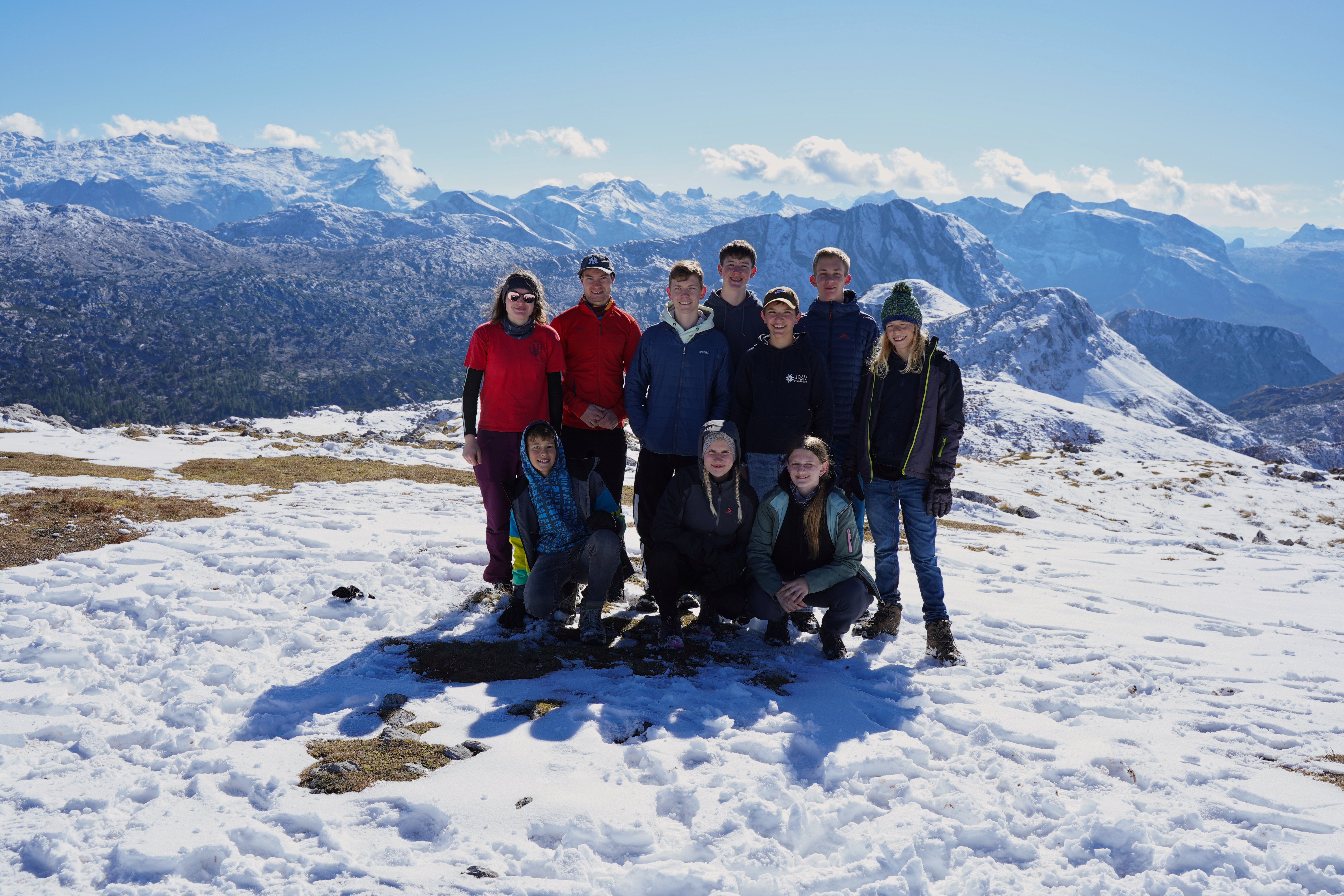 Kurz vor dem Abendessen, bestaunte noch ein Teil der Gruppe den Sonnenuntergang am nahegelegenen Pfaffenkegel. Dieser Gipfel diente auch als Aussichtspunkt für den wunderschönen Sonnenaufgang mit kurzzeitigem Regenbogen. Nach ausgiebigem Frühstücksbuffet wanderte die Gruppe auf das Hohe Brett (2340m), wobei man die letzte halbe Stunde des Aufstiegs, von sehr starkem Wind, eisigen Temperaturen und Regen begleitet wurde.