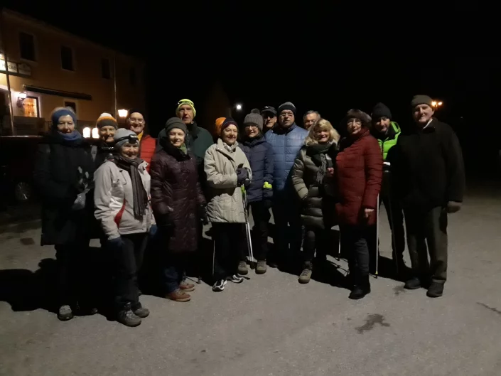 Zur traditionellen Nachtwanderung konnte Elfriede Niedermeier 20 Teilnehmer begrüßen. Bei bestem Wetter wanderte die Gruppe vom Gasthaus "Zur Hecke" nach Oberham. Durch den Wald wurde Zieglbauer erreicht. Auf dem Wanderweg ging es zum Gartlberg, um über den Schindergraben Reichenberg zu erreichen. Durch die Siedlung ging es zurück zum Gasthaus in Höckberg. Aufpassen mußte man auf Teilen des Weges, der sehr eisig war. Gemütlich klang die Wanderung im Gasthaus aus.