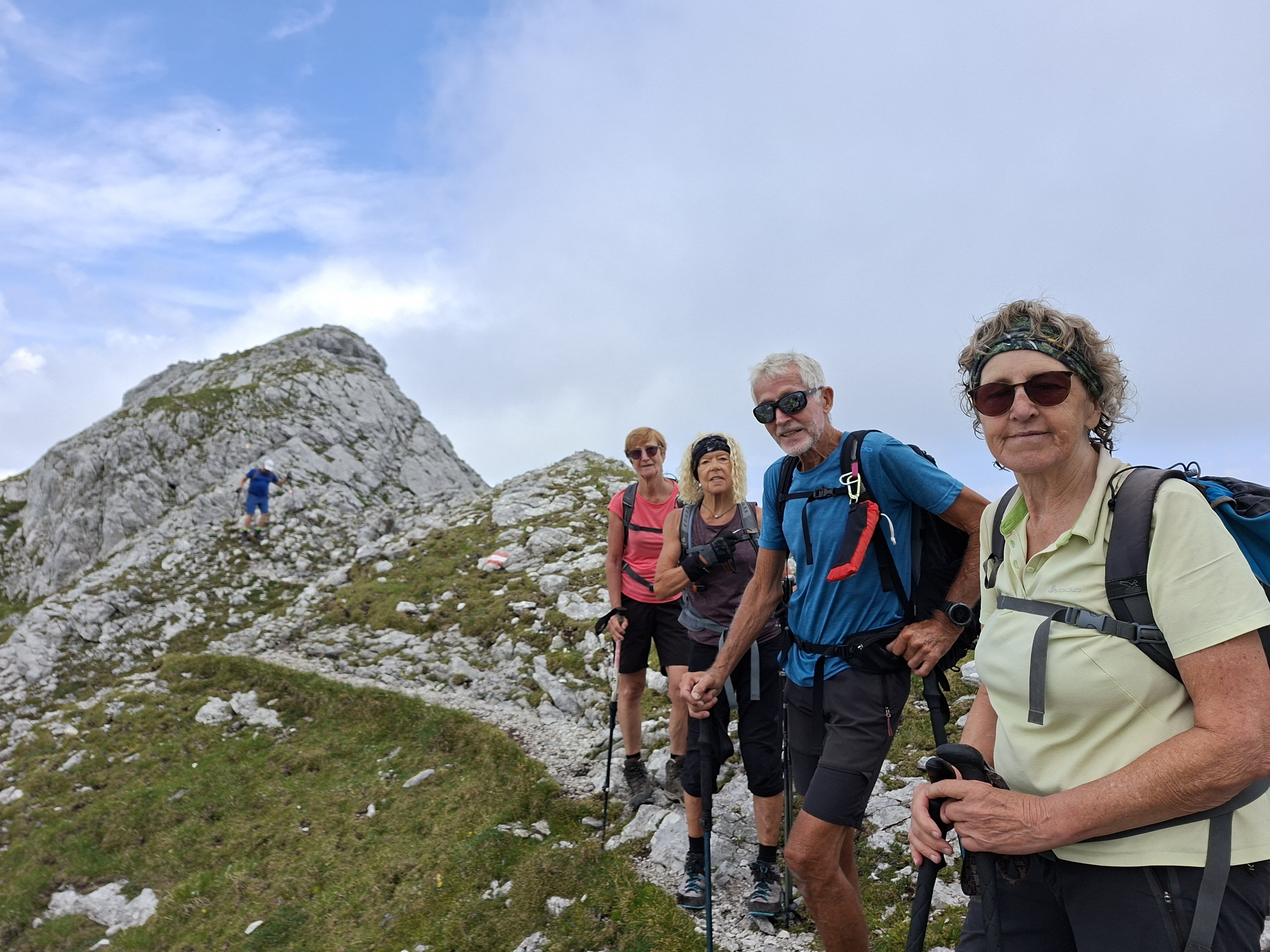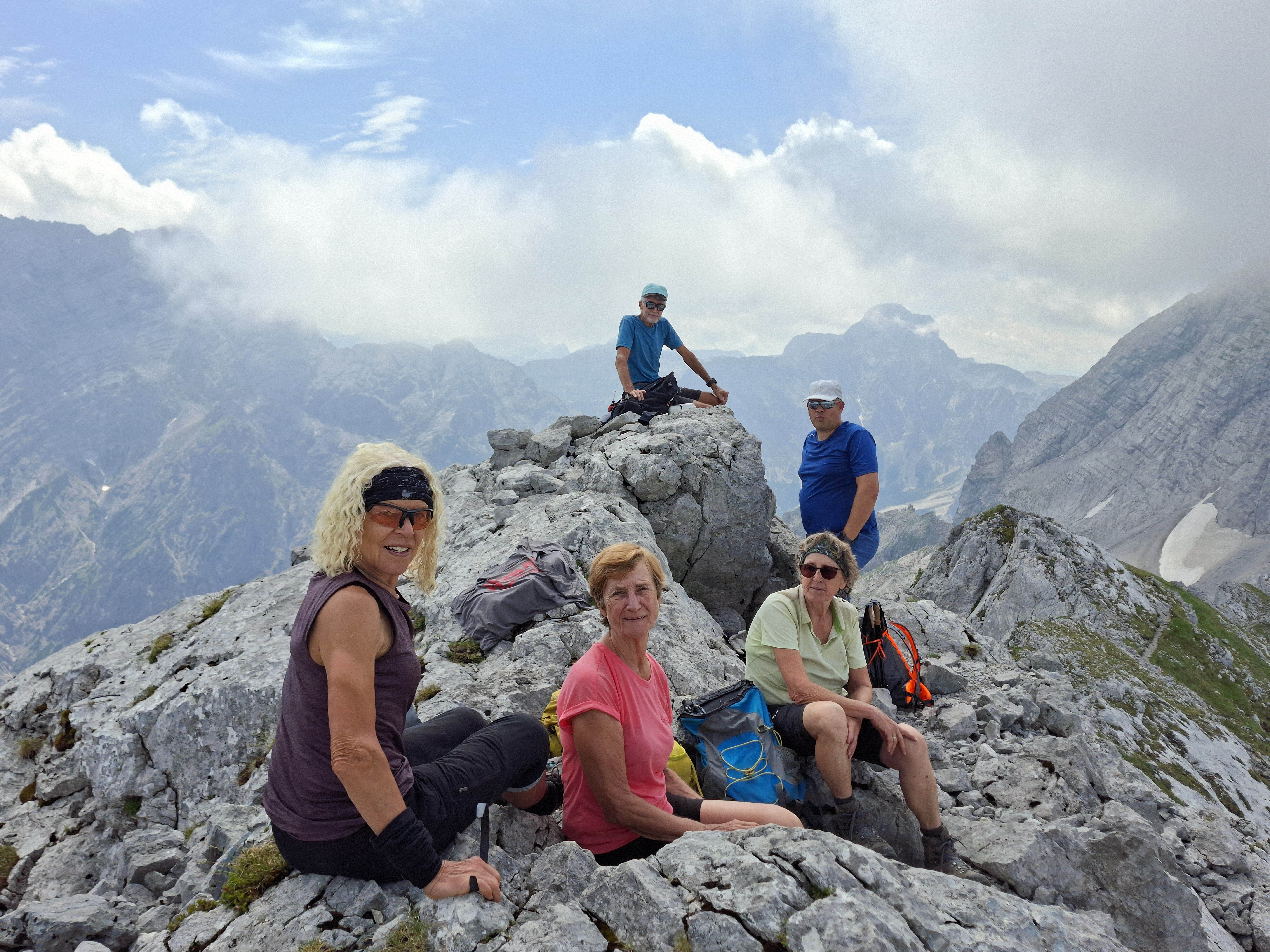 Bei bestem Wanderwetter unternahmen sechs begeisterte Wanderer eine beeindruckende Tour auf die Schärtenspitze. Unter Leitung von Marcus Urban absolvierte die Gruppe an diesem Tag vom Parkplatz am malerischen Hintersee bei Ramsau einen Höhenmeteranstieg von 1.444 Metern. Alpingeografisch genau genommen ist die Schärtenspitze ein Ausläufer des Hochkalter, aber was für einer! Alles, was zu einer strammen Hochgebirgstour dazu gehört, bekamen die Alpinisten hier geboten. Steile, felsige Aufstiege auf schwindelnde Höhen, prächtige Rundblicke und zum Teil drahtseilversicherte Kletterstellen. Nach Gipfelfoto und Jause auf 2.153 Metern erfolgte der Abstieg über die anspruchsvolle und beeindruckende Eisbodenscharte, was die Wanderung zu einem unvergesslichen Erlebnis machte. Nach der Anstrengung lockte eine urige Einkehr in der Schärtenalm, wo sich die Wanderer mit kurz stärkten, bevor der Endspurt in steilen Kehren auf einem breiten Weg bewältigt wurde. Zum Abschluss der Tour durfte ein erfrischendes Bad im nahegelegenen Saalachsee nicht fehlen – ein perfekter Abschluss für einen tollen Tag in den Bergen.