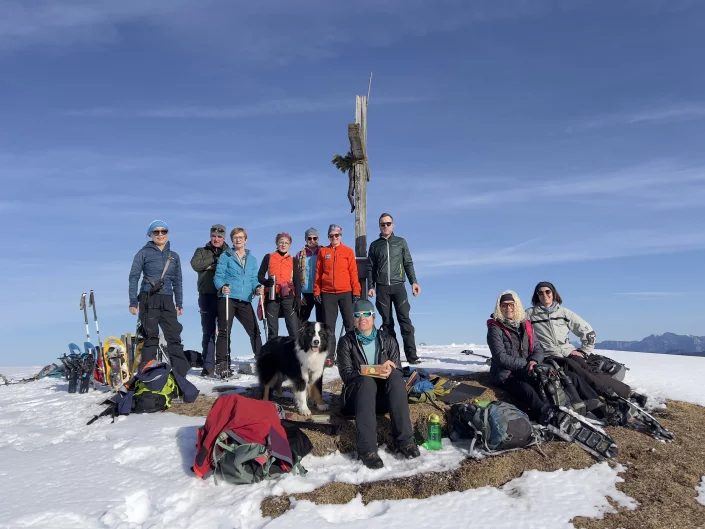 Manchmal lohnt es sich wirklich, früh aufzustehen. um 6.30 Uhr starteten die Schneeschuh-Geher des DAV Pfarrkirchen am Samstag, den 17.01.26 los, um nach Seegatterl zu fahren. Am morgen ist auch dort noch nicht so viel Rummel, und so ging es vor der ersten Gondel zuerst einmal hoch zur Nattersberg Alm. Von dort aus wunderschön verschneit über die Hemmersuppenalm und hoch zum Straubinger Haus, dass - bereits auf der Tiroler Seite liegend - auch als Eggenalm bekannt ist. Nach einer kurzen Rast ging es dann gerade aus und hinauf zum langen Gipfelanstieg, der die Teilnehmer konditionell forderte. Am Gipfelkreuz angekommen waren die Strapazen jedoch schnell vergessen, denn es bot sich den Schneeschuhgehern und der Tourenleiterin Karin Haslböck ein unvergessliches Panorama bei bester Sicht. Nach einer ausgiebigen Rast ging es dann wieder zurück zum Ausgangspunkt, nicht ohne der schönen Nattersbergalm noch einen kurzen Einkehrbesuch abgestattet zu haben. Erschöpft, aber glücklich beendeten die Sektionsmitglieder den herrliche Tourentag bei schönstem Wetter.