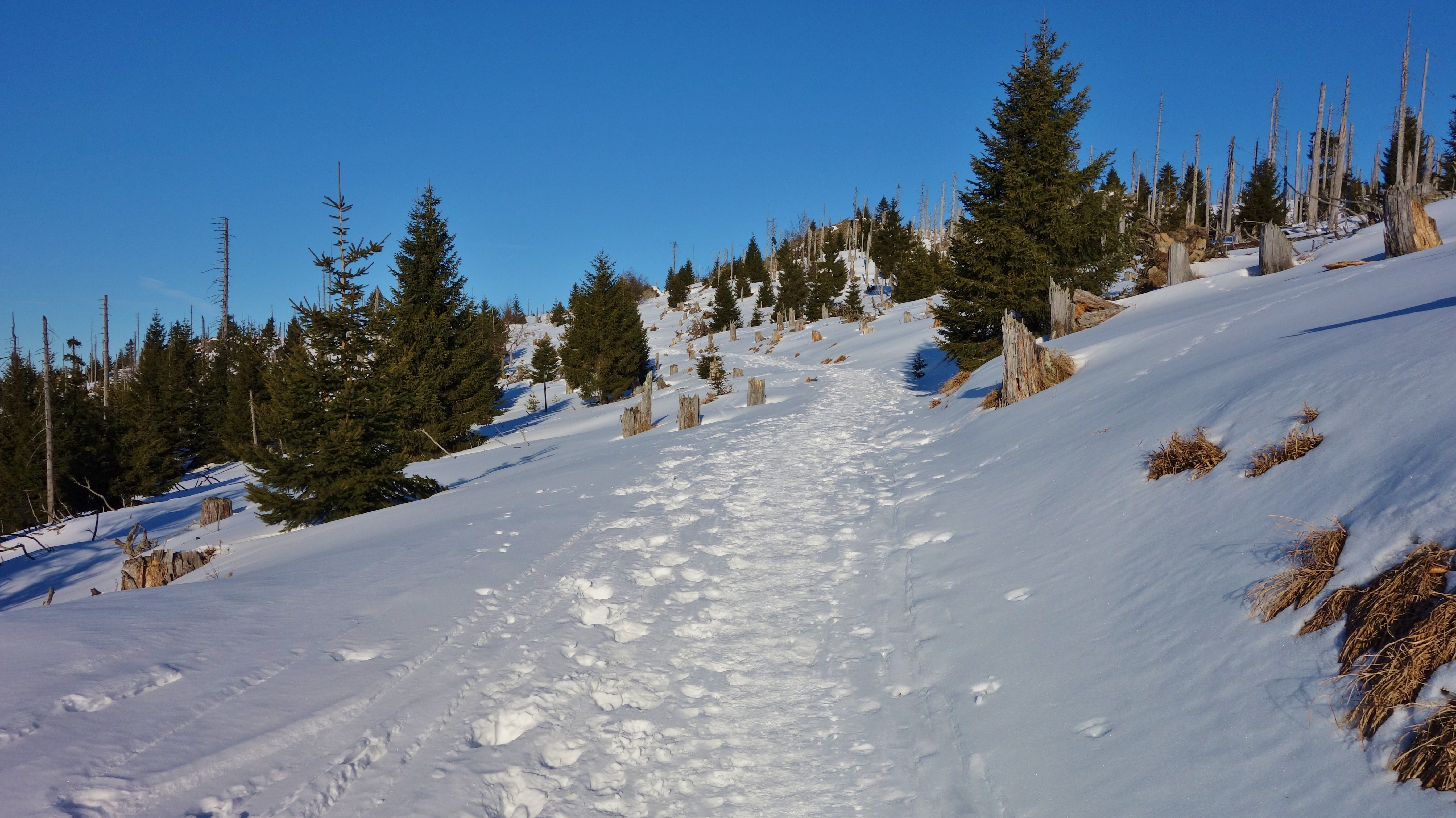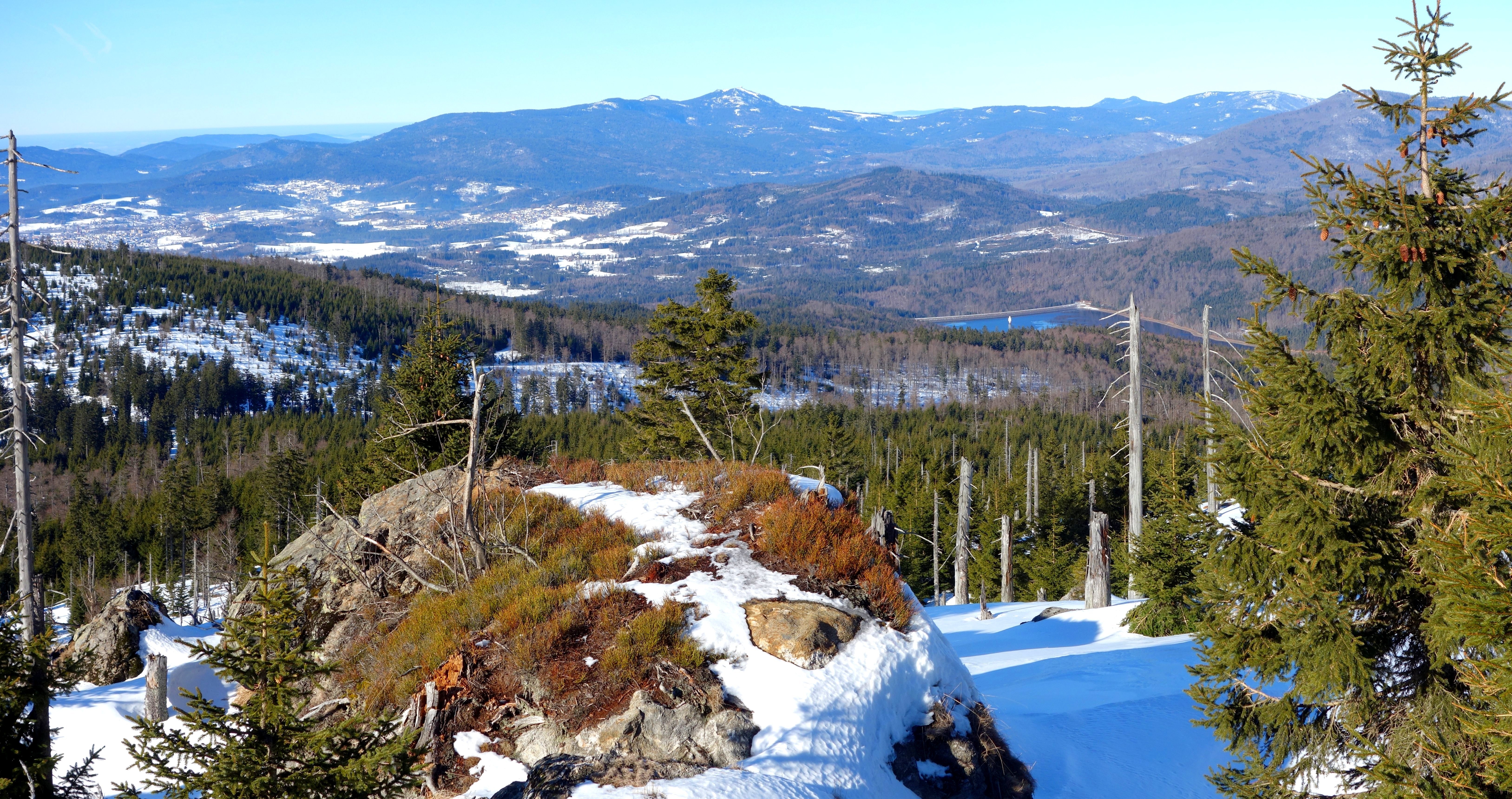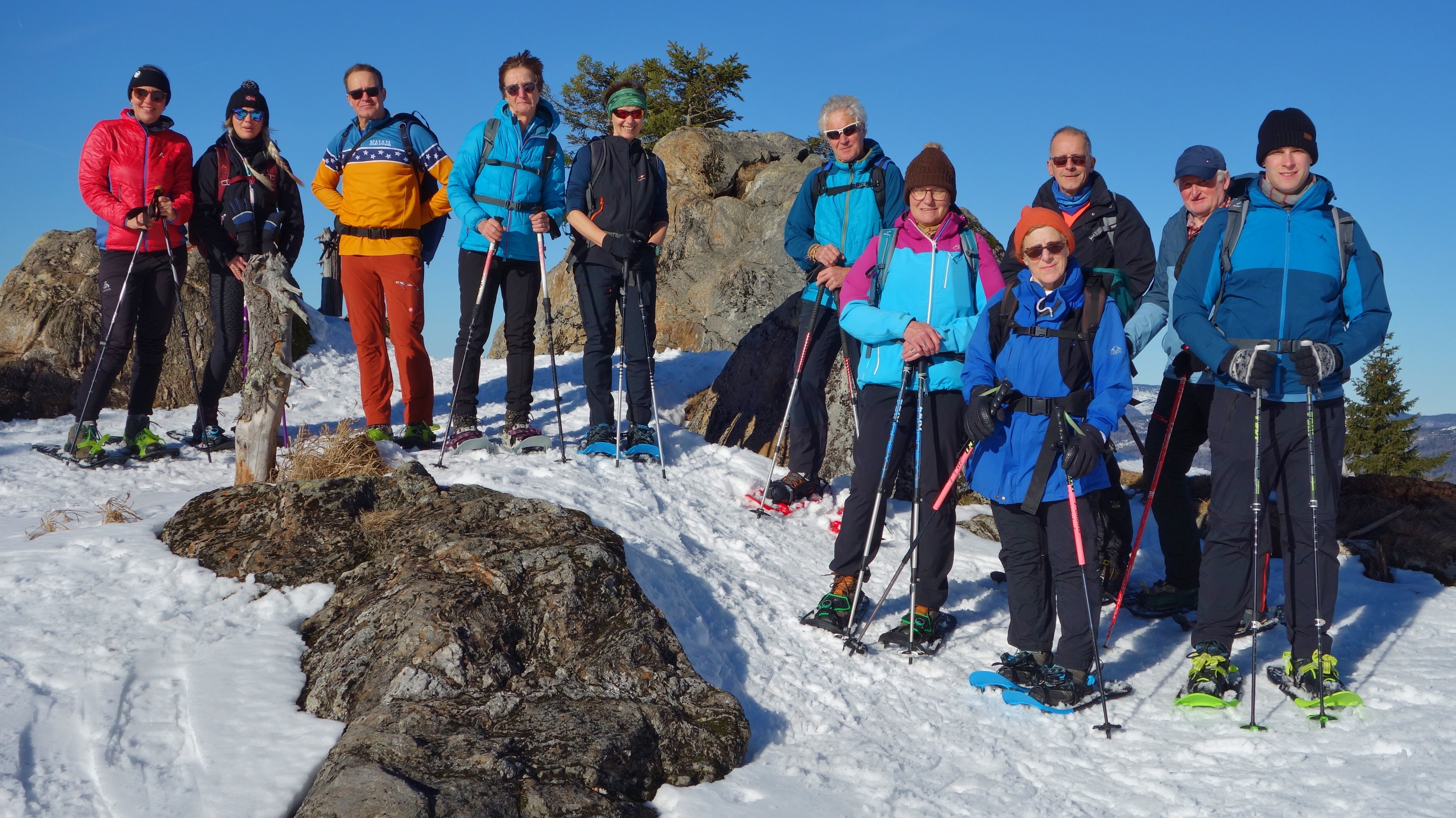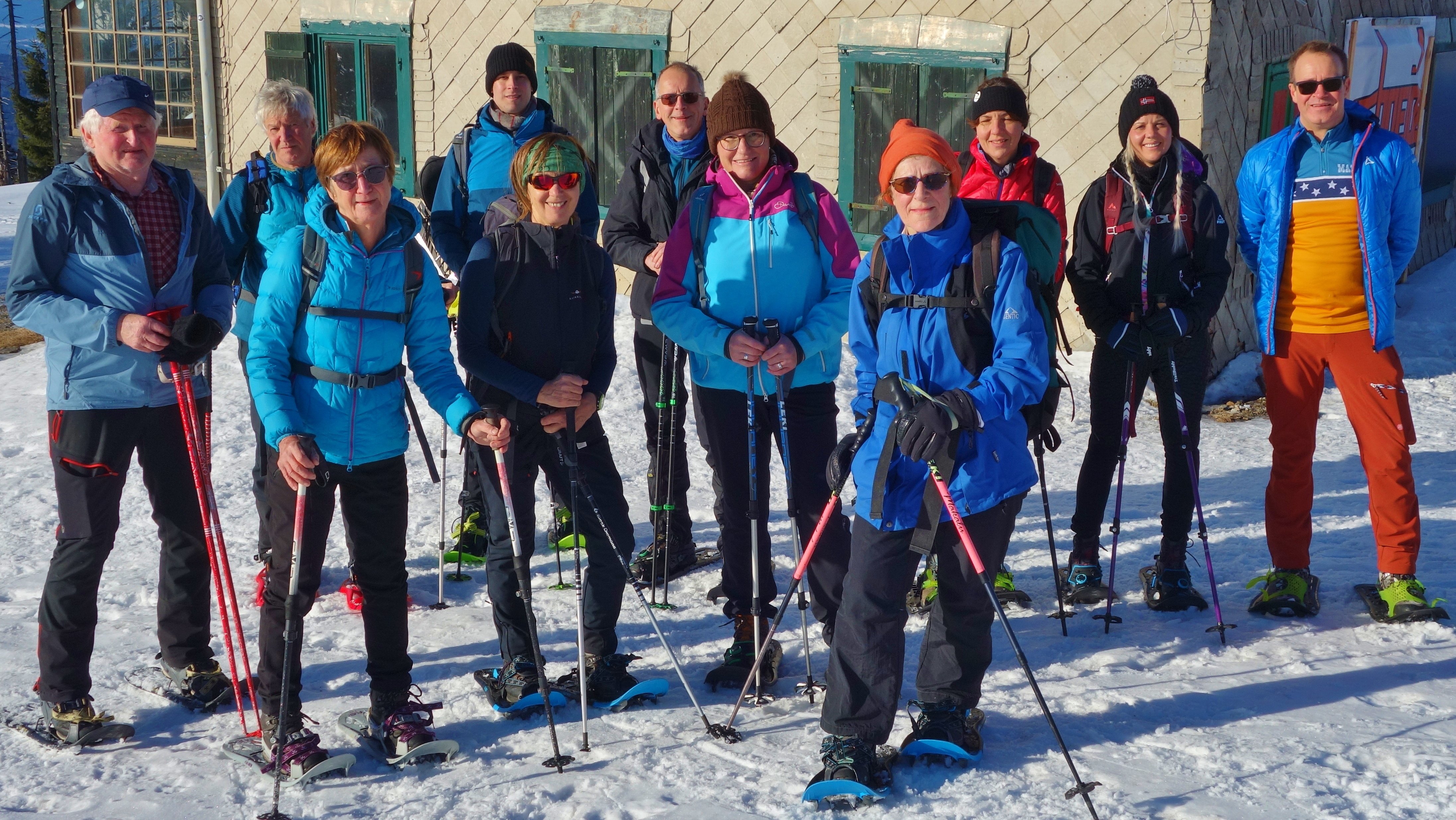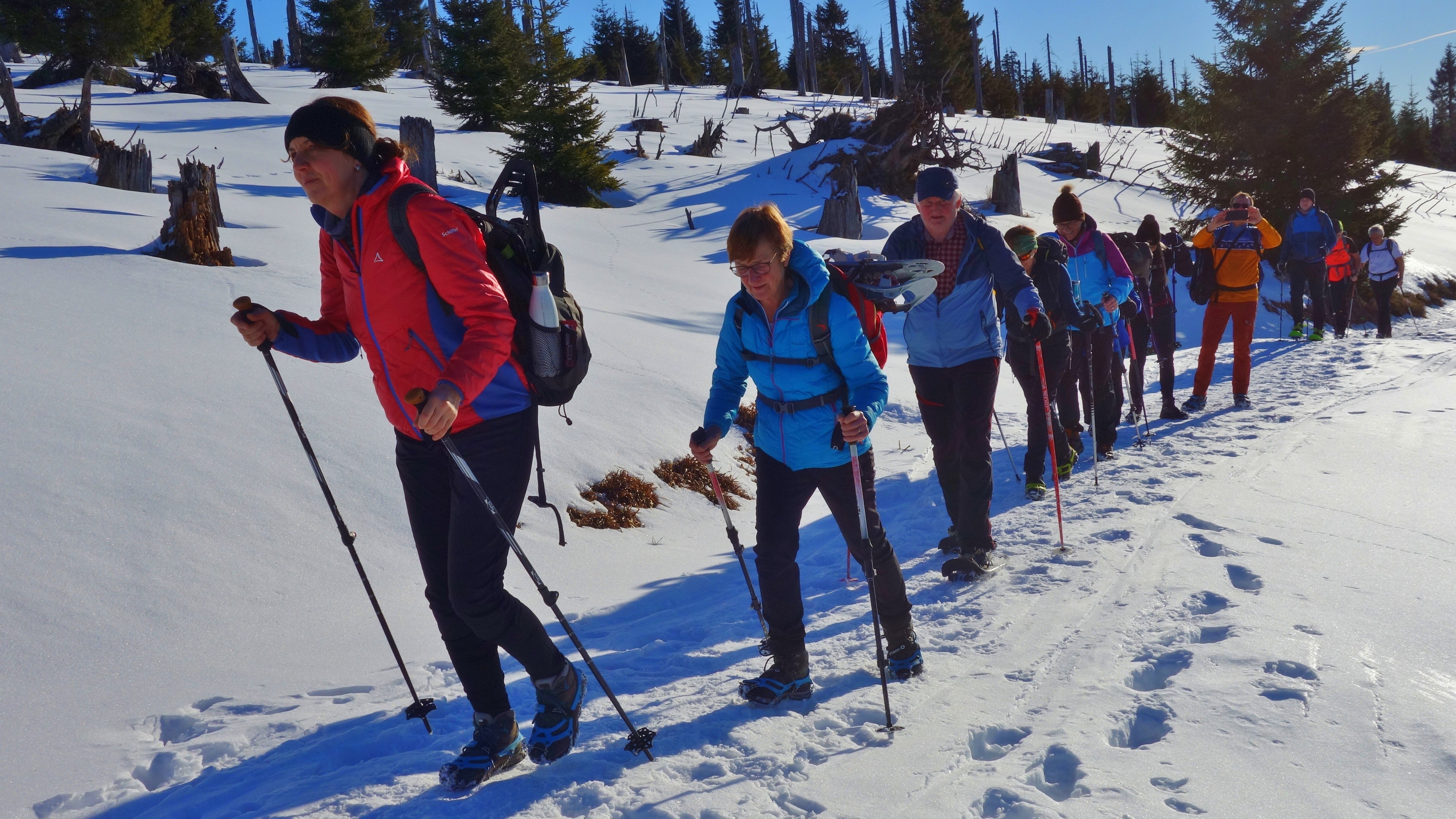 12 Mitglieder der DAV Sektion Pfarrkirchen stiegen unter der Leitung von Karl-Heinz Hager auf den Großen Rachel (1452m). Der zweithöchste Gipfel im Bayerwald ist zwar nicht so bekannt wie der Große Arber, hat aber gerade deswegen seine eigenen Reize: Unberührte Natur und kilometerlange Wege im Kerngebiet des Nationalparks Bayerischer Wald. Ausgangspunkt für diese herrliche Wintertour war der Parkplatz Gfäll (950m) bei Spiegelau. Von hier aus zieht der sonnigste Aufstiegsweg hinauf zum Waldschmidthaus. Von hier ging es dann mit den Schneeschuhen weiter hinauf auf den immer steiler ansteigenden Weg zum Gipfel. Die verdiente Gipfelpause wurde im Windschatten an der Bergwachthütte unterhalb des Gipfelkreuzes genossen. Beim Abstieg zum Waldschmidthaus konnten die Schneeschuhwanderer die grandiose Aussicht zum Dachstein, zu den Berchtesgadener Alpen und weiter bis zum Großen Arber dem höchsten Berg im Bayerwald genießen. Um den sonnigen Tag so richtig zu auszuleben, ging es ab dem Waldschmidthaus auf dem Goldsteig in nordwestlicher Richtung vorbei an der Rachelwiese bis zum Aussichtspunkt zum Frauenauer Trinkwasserspeichersee. Zurück beim Waldschmidthaus stieg die Gruppe dann über den Aufstiegsweg hinunter zum Parkplatz in Gfäll. Nach einer kurzen Kaffeepause in Spiegelau ging es wieder zurück nach Pfarrkirchen.