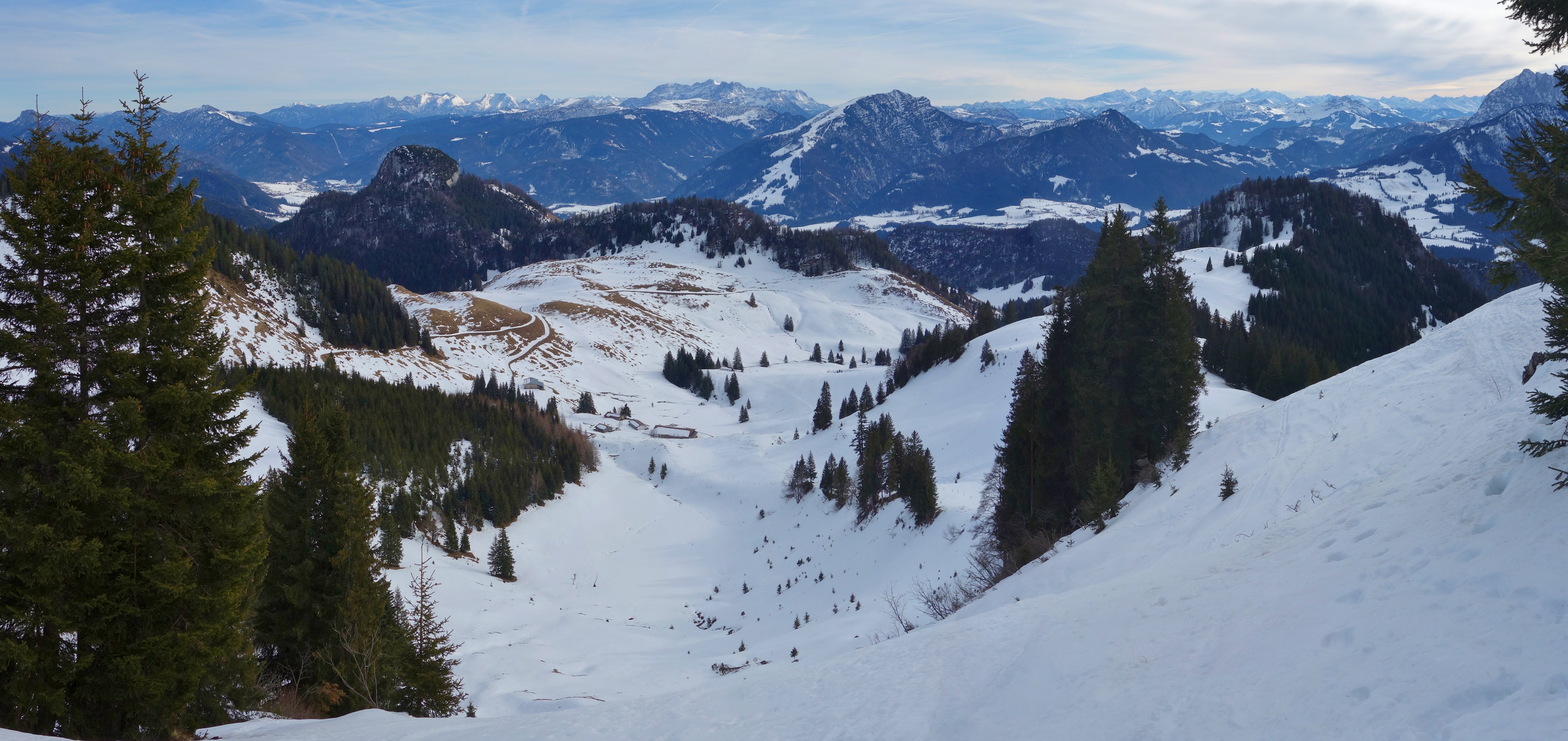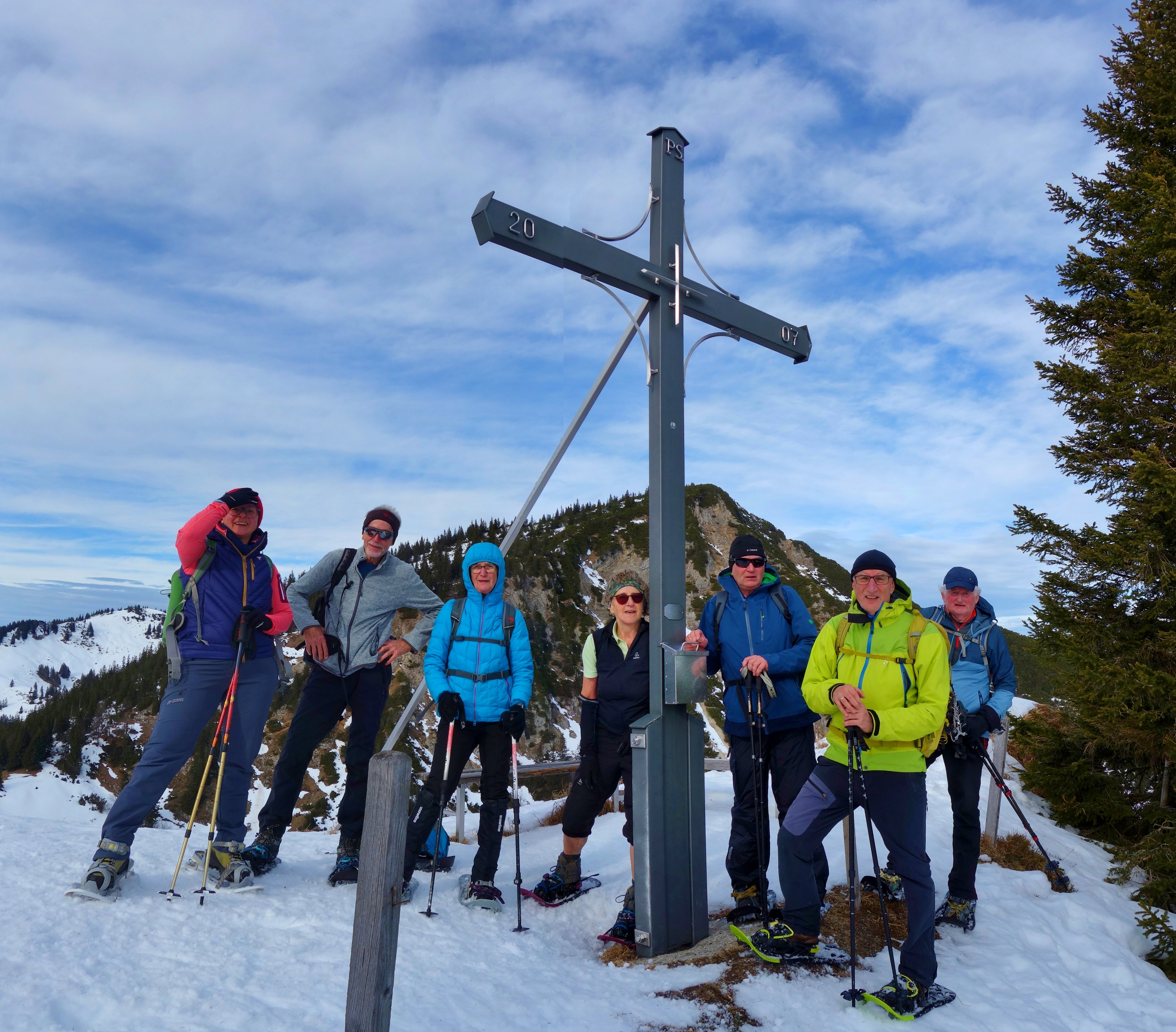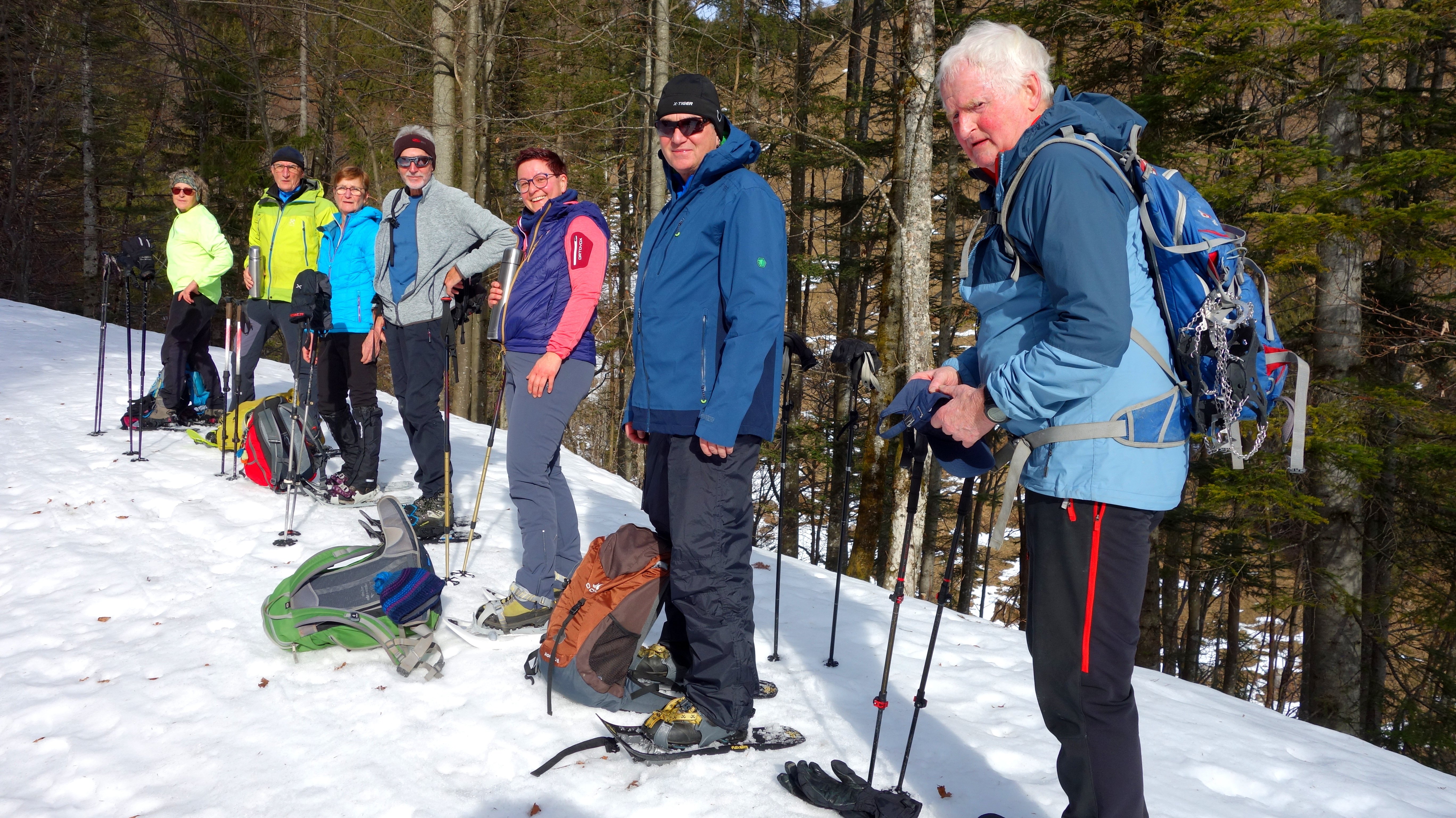 Acht Alpenvereinsmitglieder der DAV-Sektion Pfarrkirchen fuhren unter der Leitung von Karl-Heinz Hager nach Kössen in Tirol. Das Ziel war der Karkopf 1510m, ein kleiner Gipfel der Chiemgauer Alpen, mit den Schneeschuhen zu besteigen. Vom gebührenpflichtigen Parkplatz am Gasthof Staffnerhof führt ein geräumter, aber eisiger Weg in westlicher Rchtung hinauf zur Edernalm. Ab hier ging es dann mit den Schneeschuhen hinauf am Sommerweg entlang bis zur Kössener Karalm. Ab hier steigt der Weg immer steiler werdend hinauf bis zum Gipfel des Karkopfes. Die Mittagspause wurde etwas unterhalb des Gipfels verbracht, da ein kalter Wind am Gipfel schnell ungemütlich wurde. Hier konnte man bei sonnigem Wetter die Aussicht auf das Kaisergebirge bis zu den Berchtesgadener Alpen so richtig genießen. Die Abstiegsroute führte über die Almen der Kössener Karalm hinunter, dann am Aufstiegsweg entlang bis zum Parkplatz des Staffnerhofes. Nach einer Einkehr hier im Gasthof, ging es wieder zurück nach Pfarrkirchen.