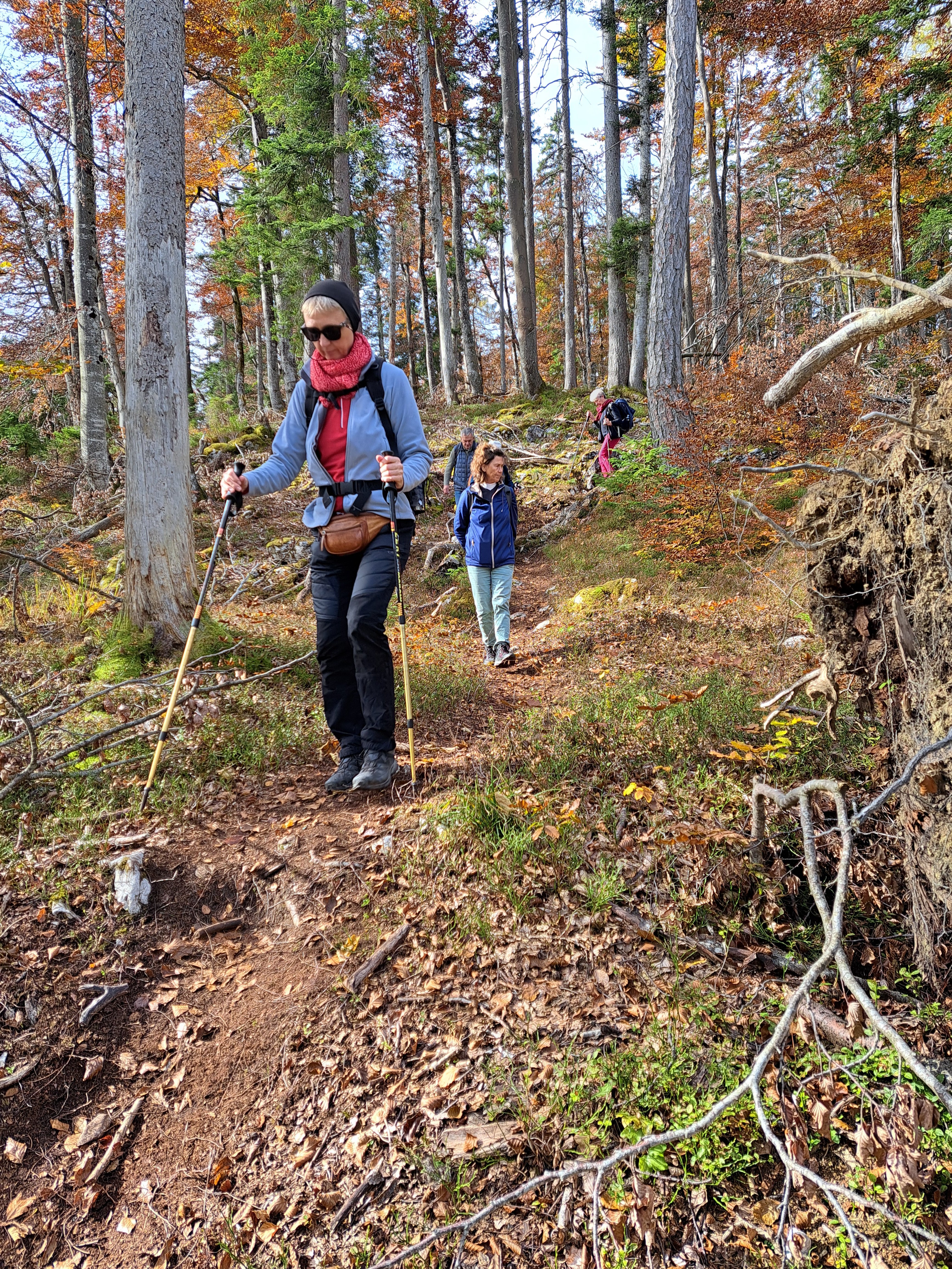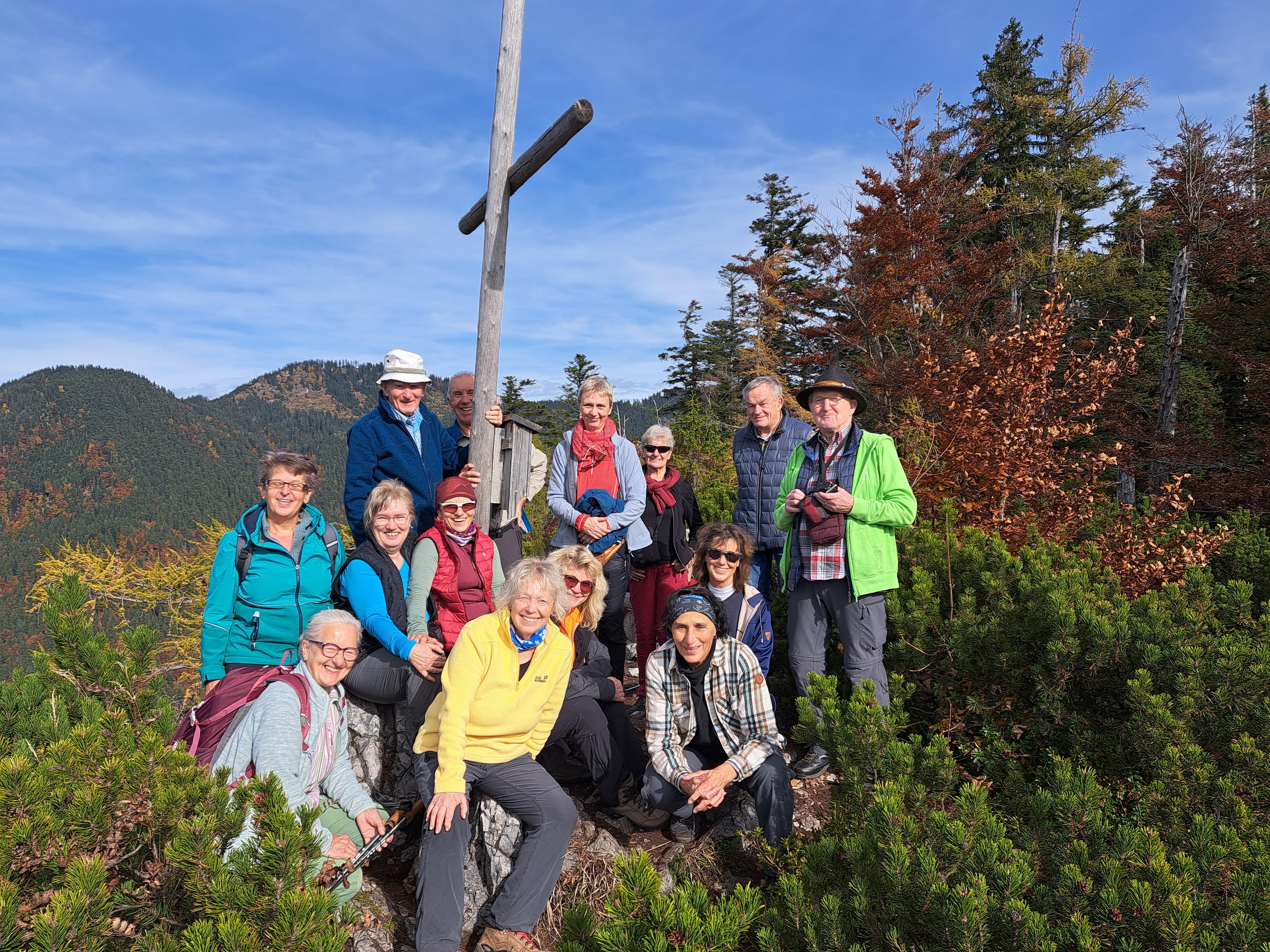 Die 15 Bergwanderer hatten enormes Wetterglück. Entgegen der Wettervorhersage schien den ganzen Tag bei föhnigem, warmem Wind die Sonne und verwandelte das herbstliche Laub der Bäume in eine farbenfrohe Berglandschaft.