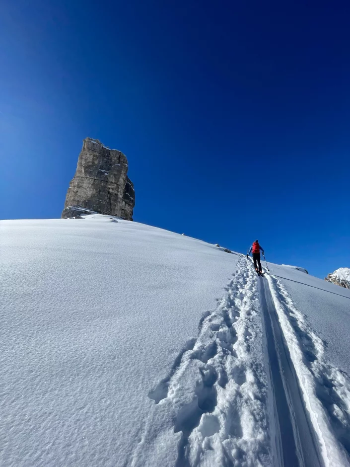 Tag 3: Überschreitung des Piz de Lavarella (3055 Meter): Aufstieg über die Südseite, Abfahrt über die Nordseite ins Val Parom