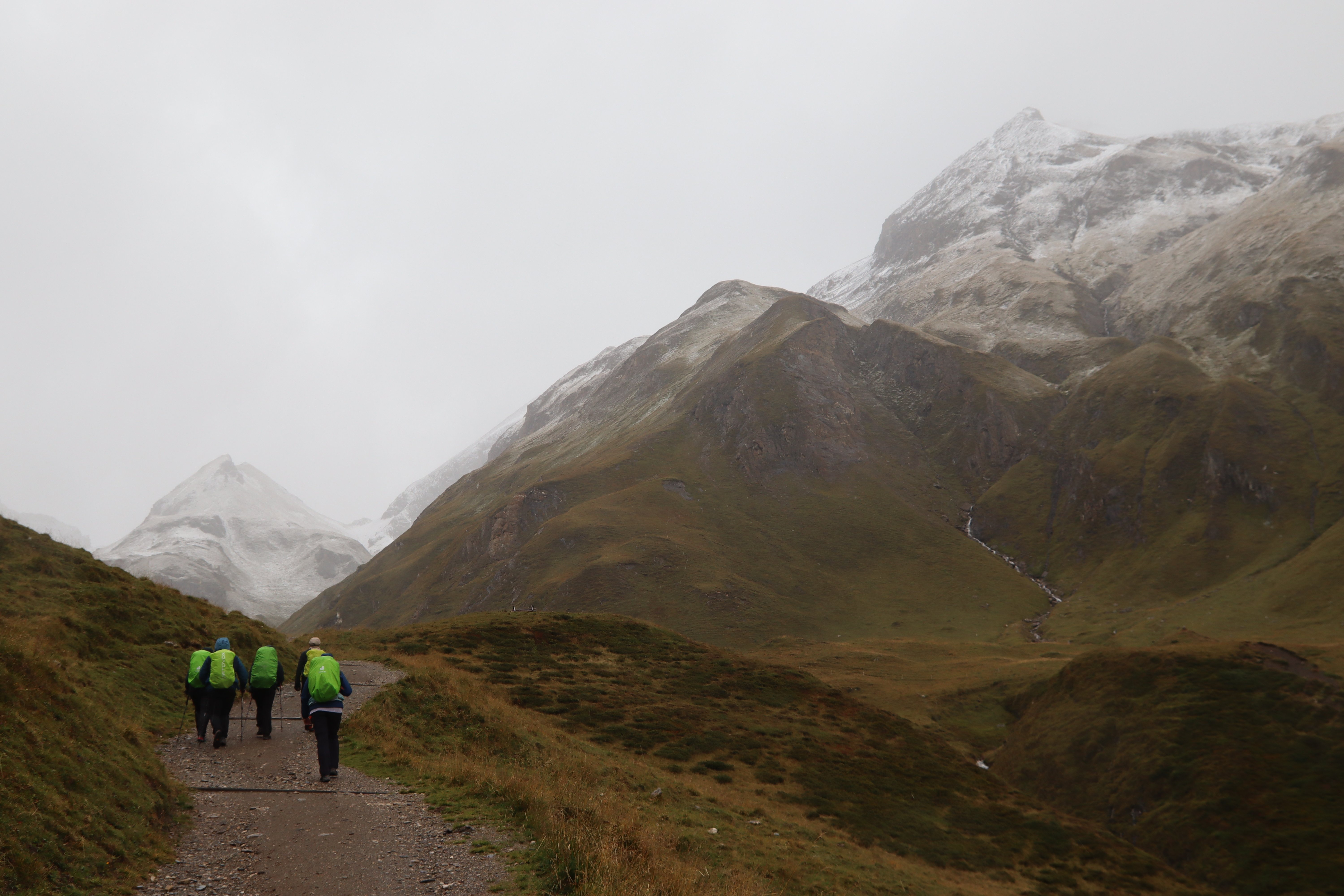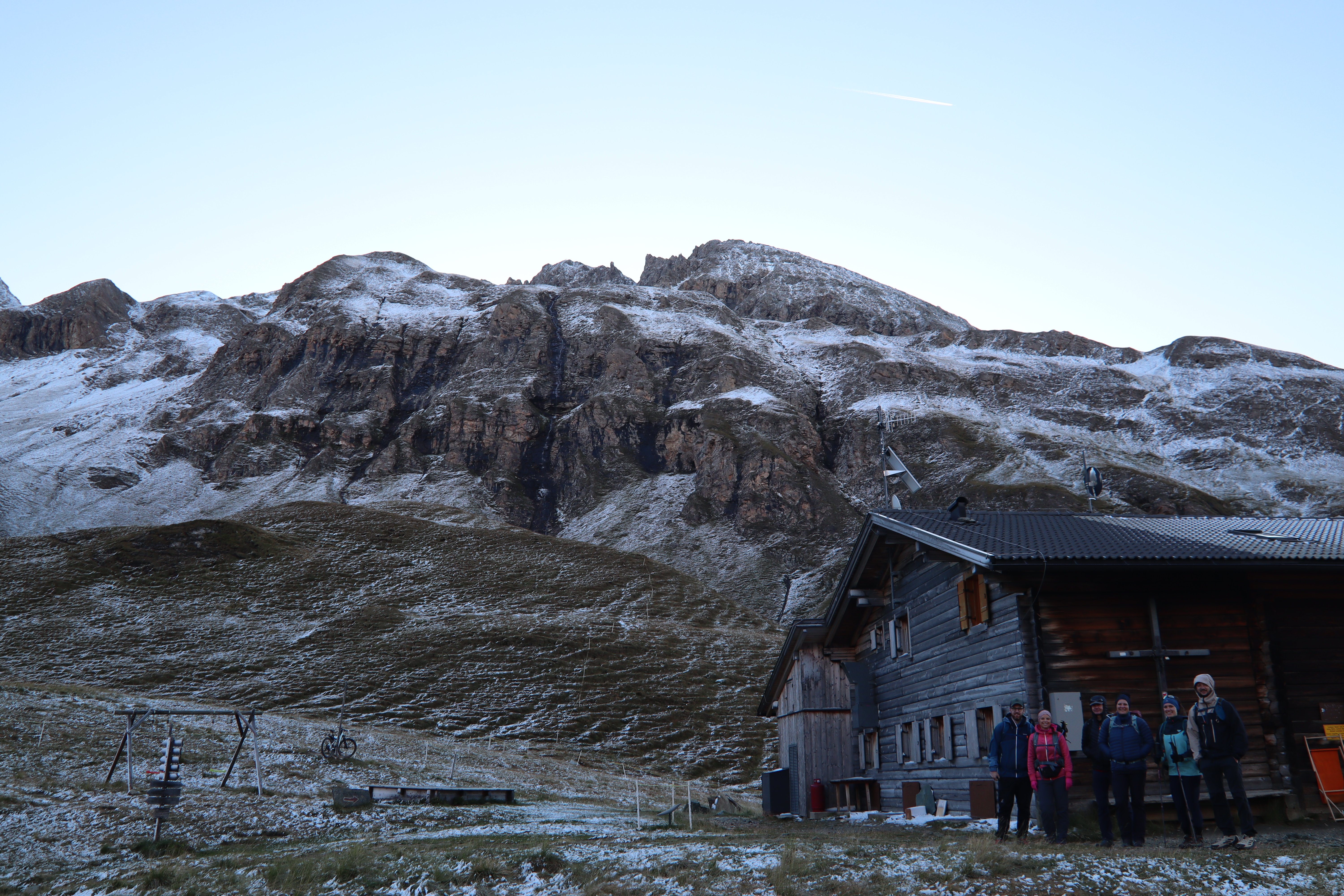 Nach einer knappen Stunde setzten wir unseren Marsch zum ersten Etappenziel, der Brixner Hütte fort. Auf ca. 1900 Metern wurde aus dem Regen, Schnee, welcher die hohen Gipfel der Bergregion in spätsommerliches weiß überzog. Etwas durchnäßt kamen wir auf der Brixner Hütte (2282m) an. Mit guten Südtiroler Schmakerln, Spinatknödel und Gemüselasagne, stärkten wir uns für die morgige Tour.