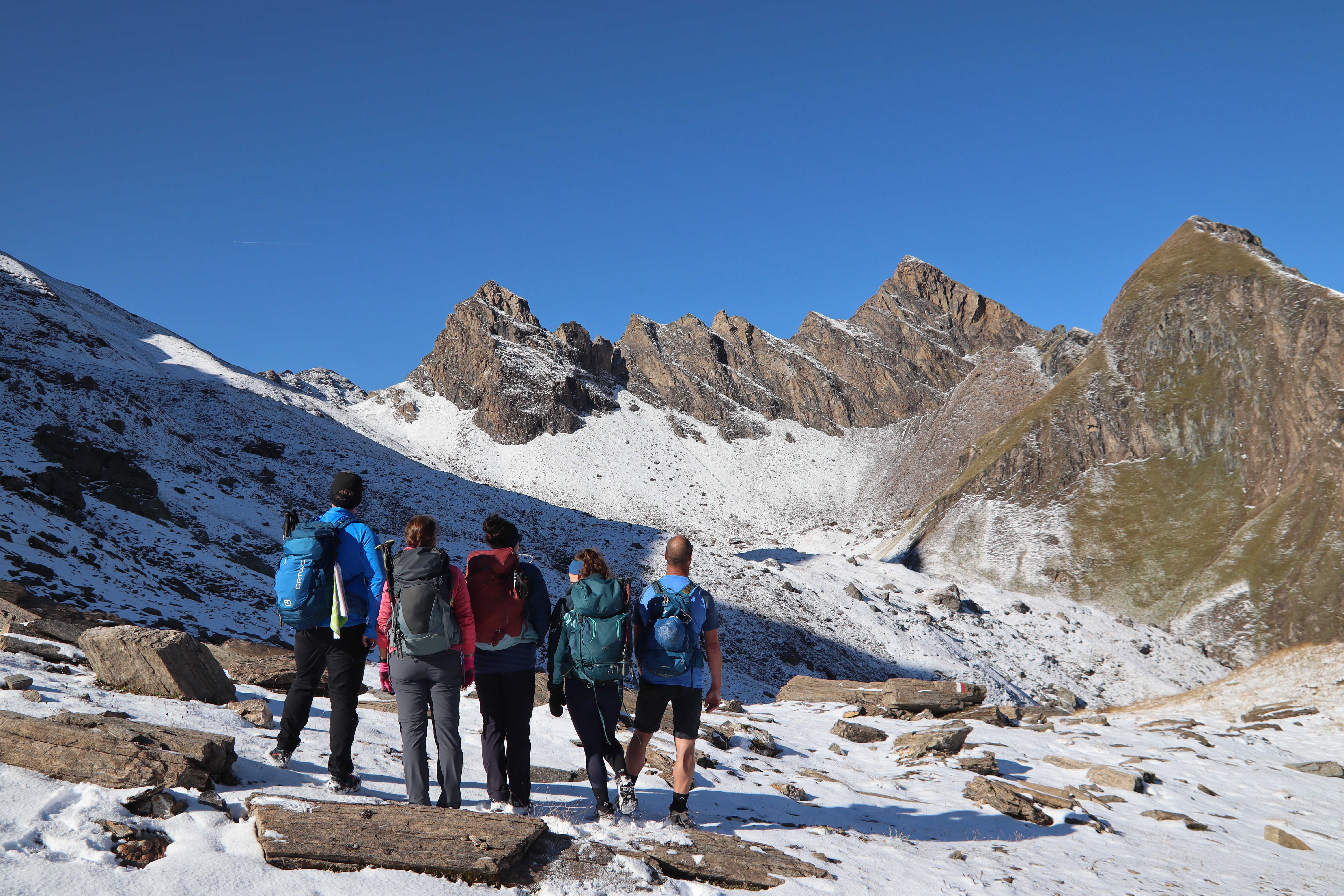 Am Freitag den 05.09.2025 ist unsere siebenköpfige Gruppe des DAV Pfarrkirchen vom Parkplatz der Liftstation in Vals (Südtirol), Richtung Brixner Hütte zu unserer mehrtätigen Wanderung durch die Pfunderer Berge gestartet. Bereits nach wenigen Metern hatte sich das Wetter deutlich verschlechtert. Es fing an zu regnen und über uns grummelten die dunklen Gewitterwolken. Kurz bevor wir die Fane Alm erreichten, gerieten wir in einen deftigen Hagelschauer und wir suchten schleunigst eine der bewirteten Almen auf. Bei prasselnden Kaminfeuer und einer Tasse Kaffee und Tee ließen wir das Unwetter draußen toben.